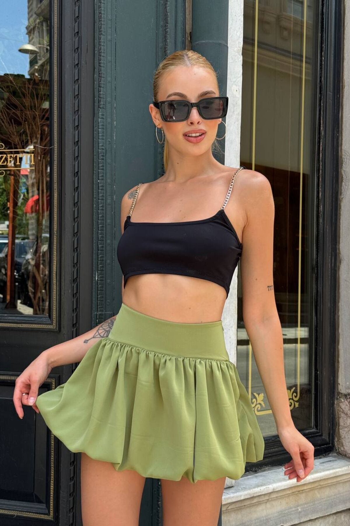 Mini Balloon Skirt with Shorts - Pine Green