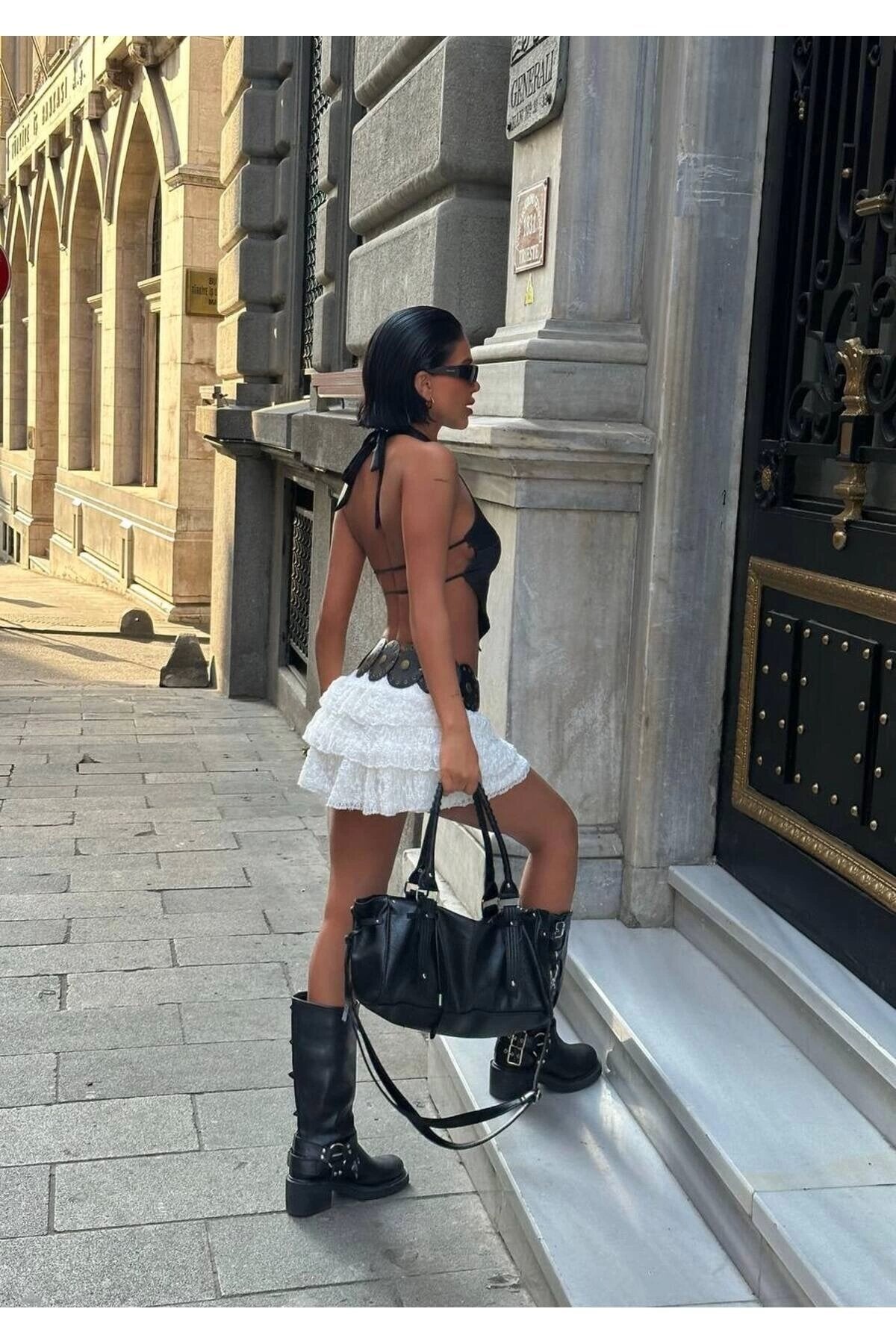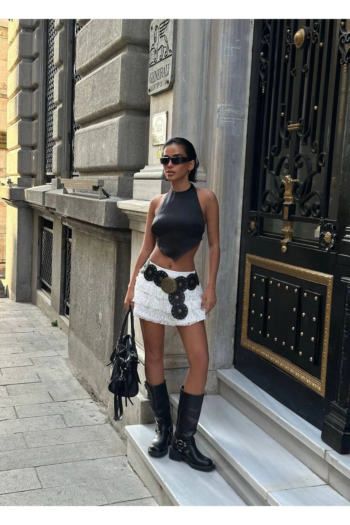 Material: 100% Cotton; Packaging Condition: No Box; Fabric Type: Lace; Pattern: Textured; Color: White; Product Type: Plain; Product Detail: Lace Detailed; Pocket: No Pockets; Collection: Design; Thickness: Medium; Lining Status: Lined; Length: Mini; Silhouette: Skater; Occasion: Party; Fit: Skater; Additional Feature: Elasticated Waist; Weave Type: Lace; Persona: Sexy; Sustainability Detail: No; Belt/Sash Status: No Belt; Waist: Regular Waist; Season: All Seasons; Origin: TR