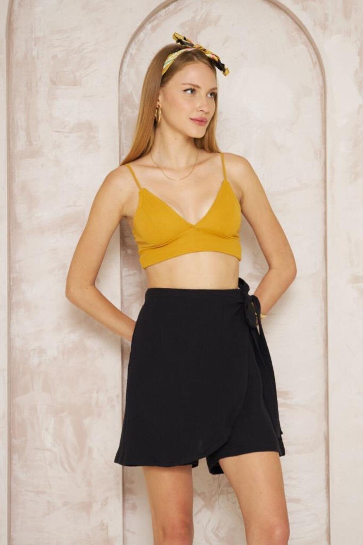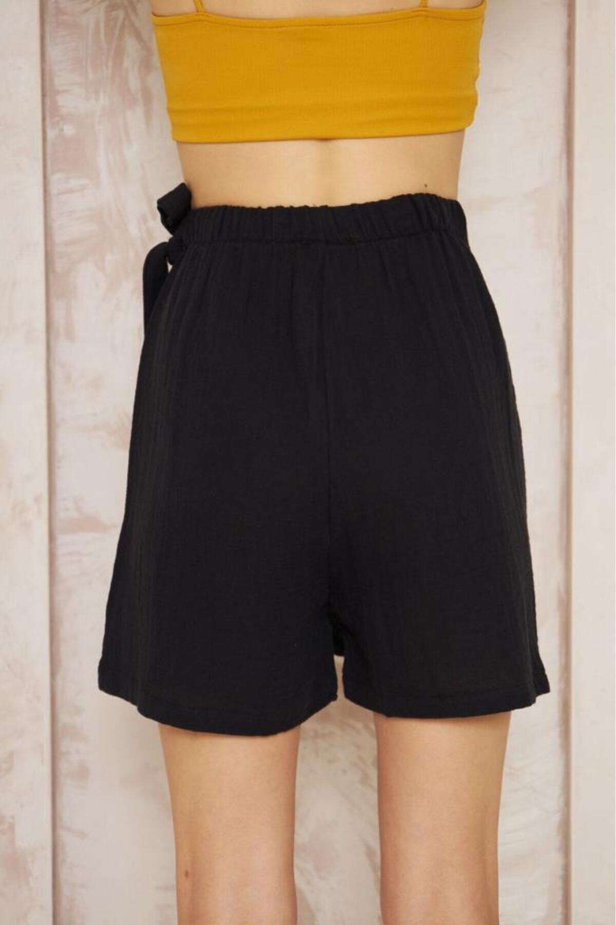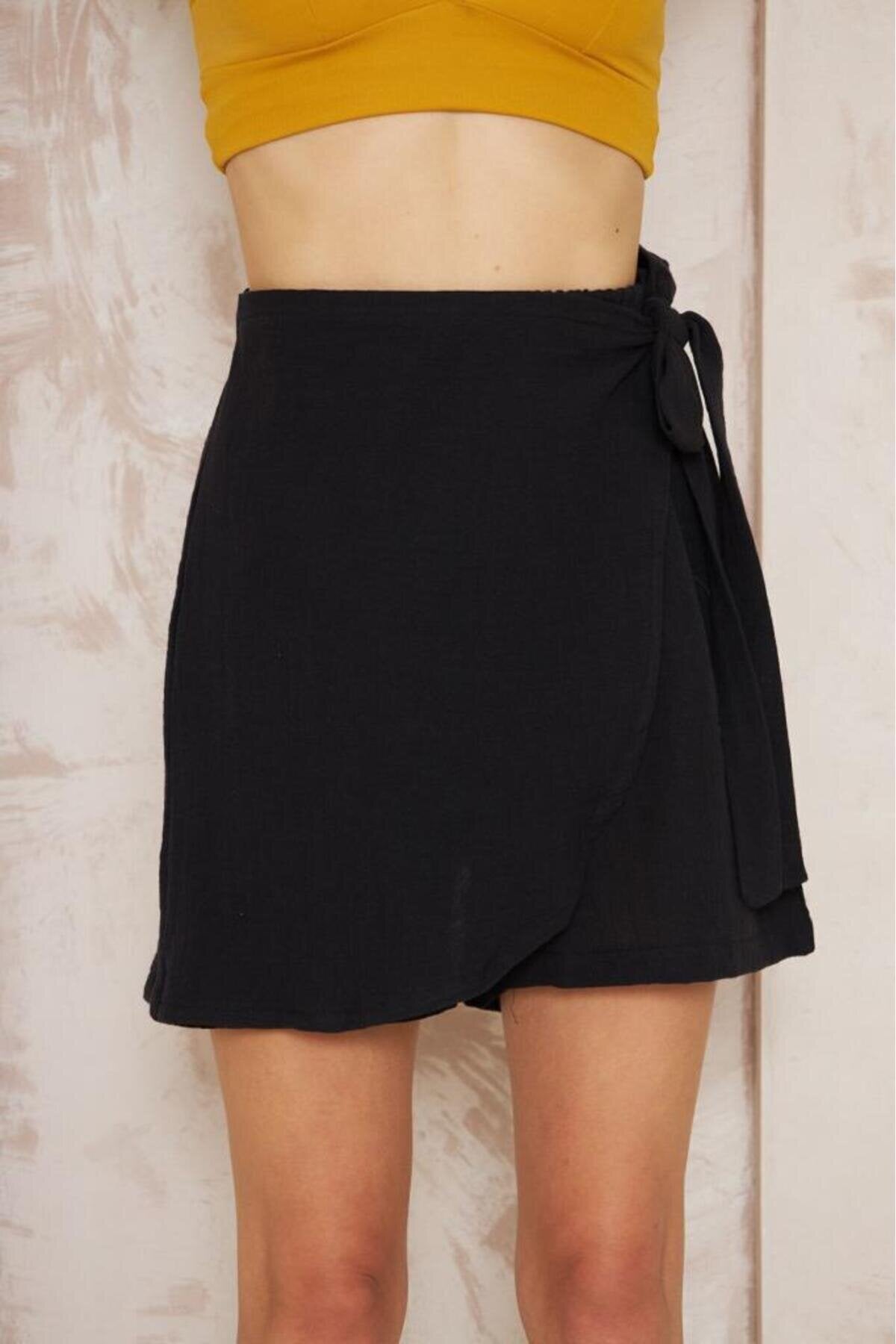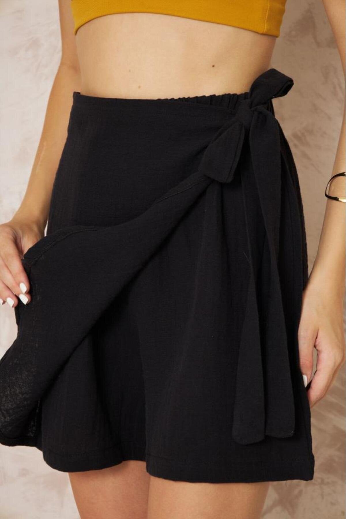 Mini Soft Textured Muslin Cotton Side Tie Skort - Black