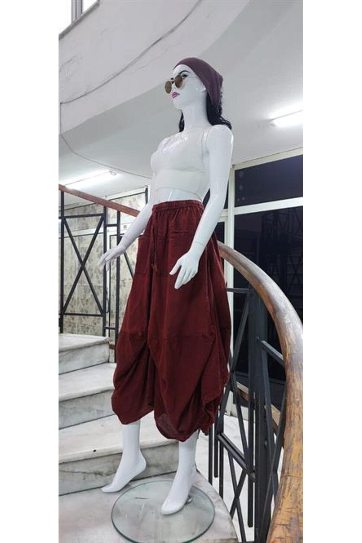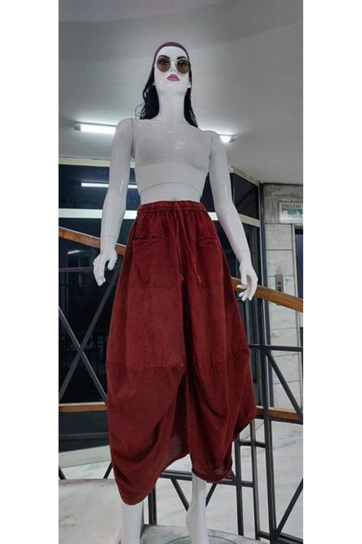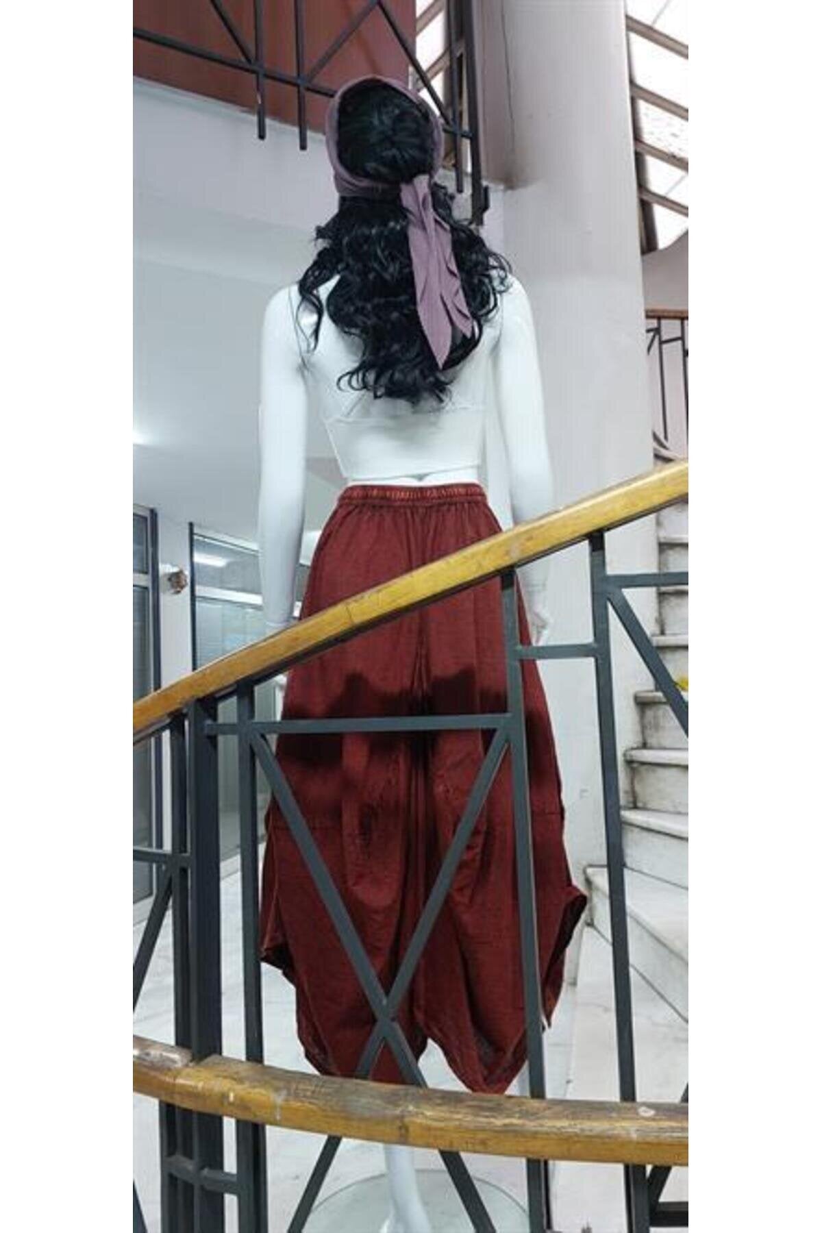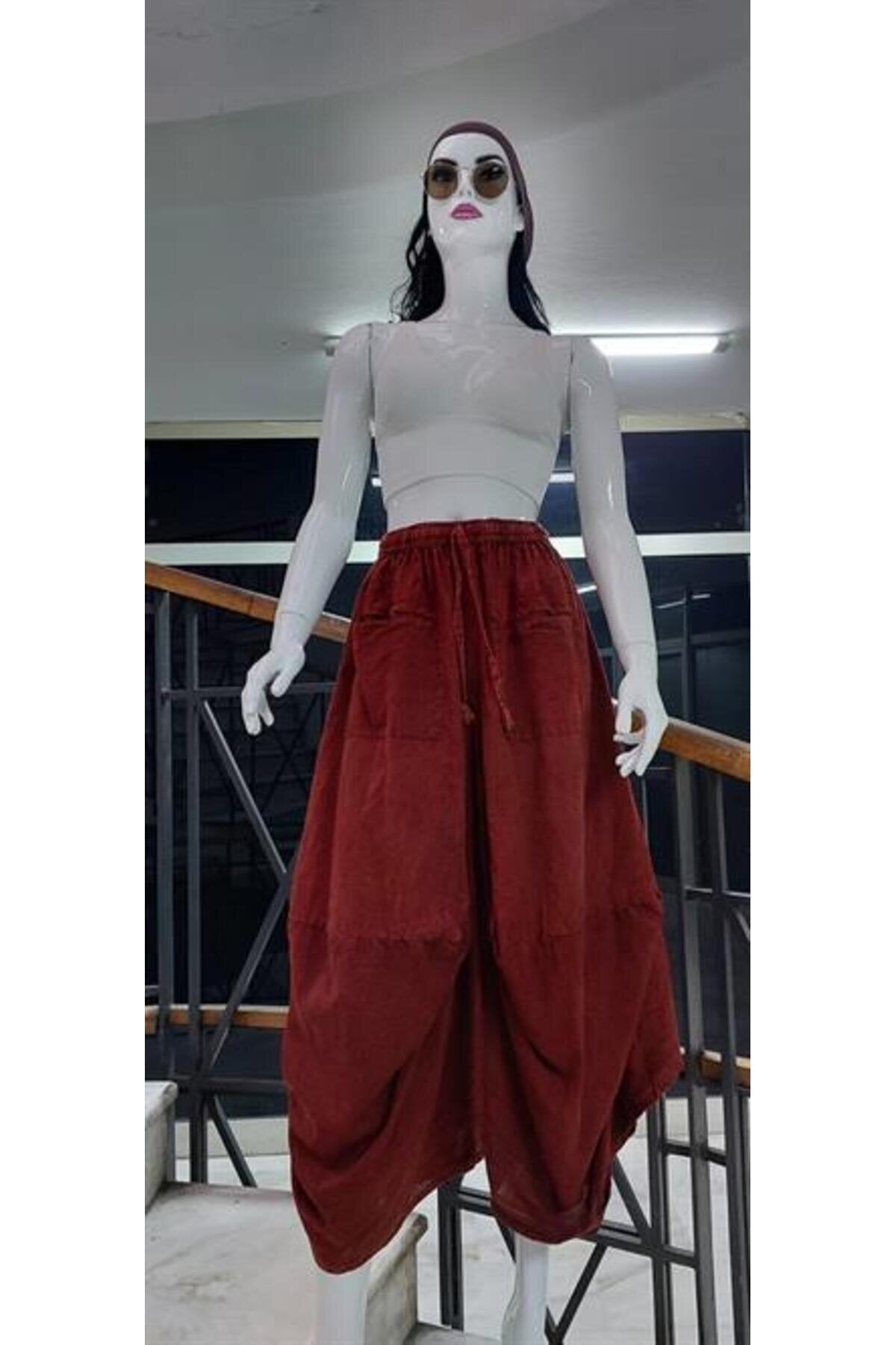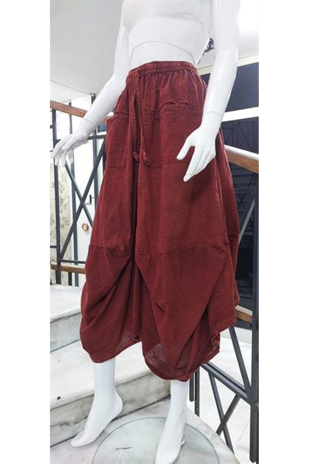 Stone-Washed Long Harem Skirt with Pockets - Colorful Ethnic