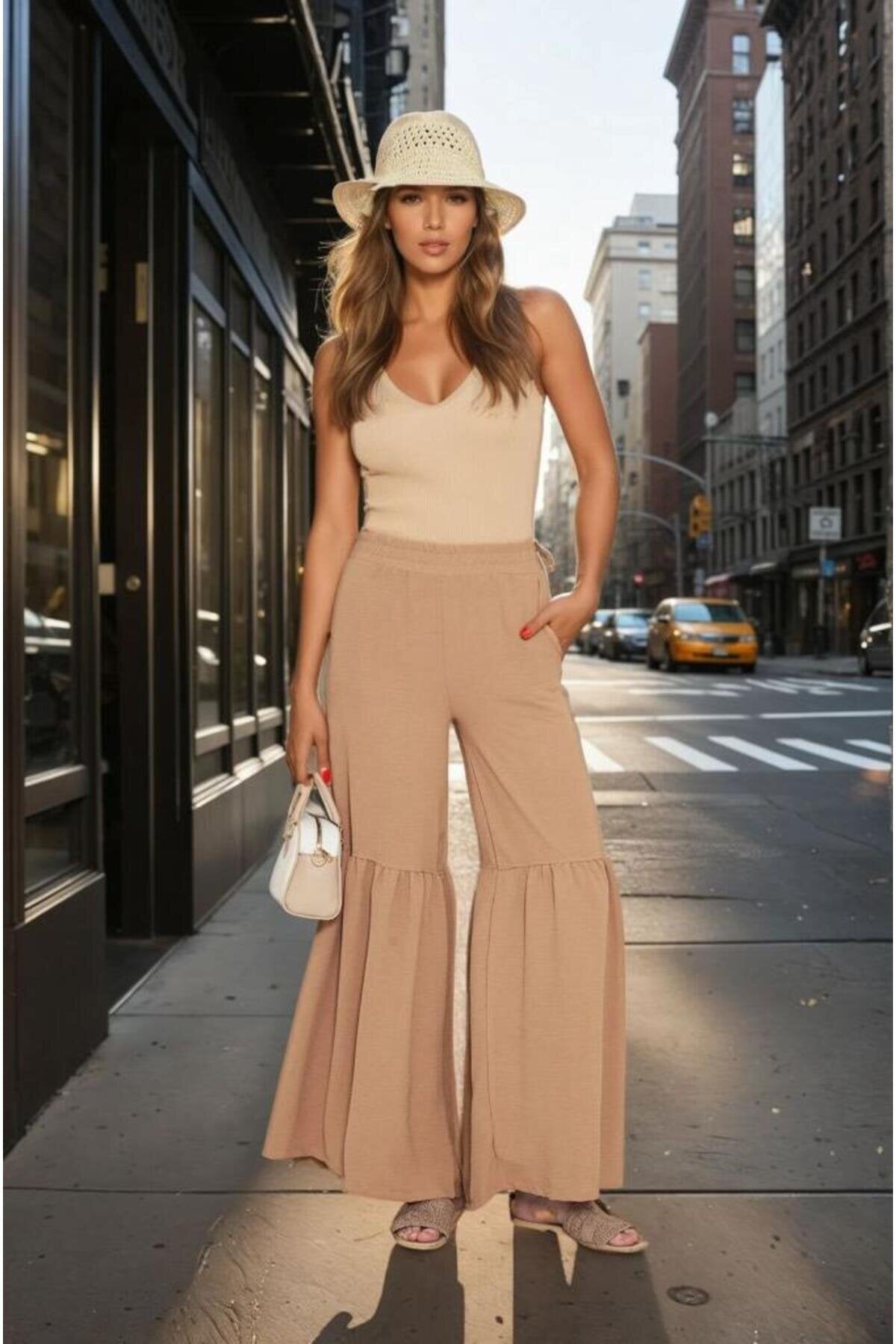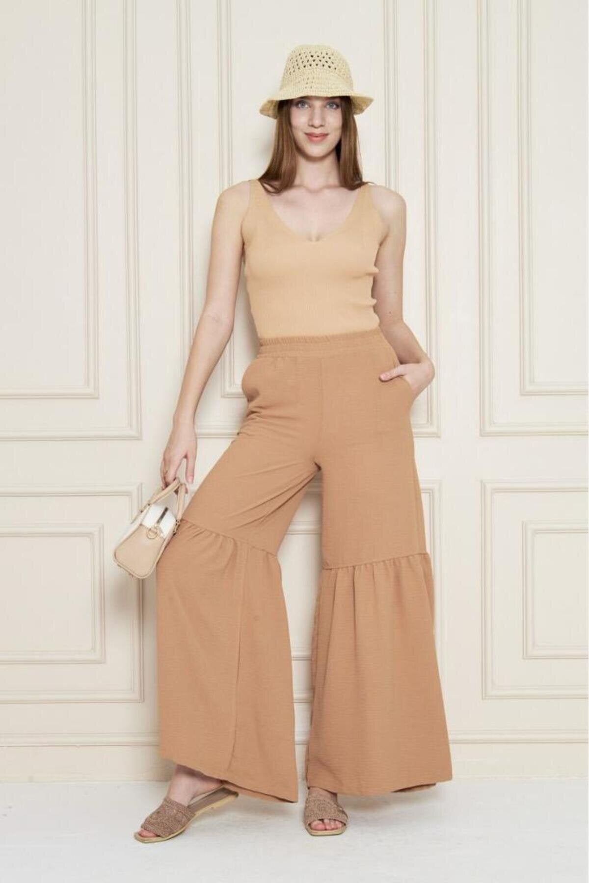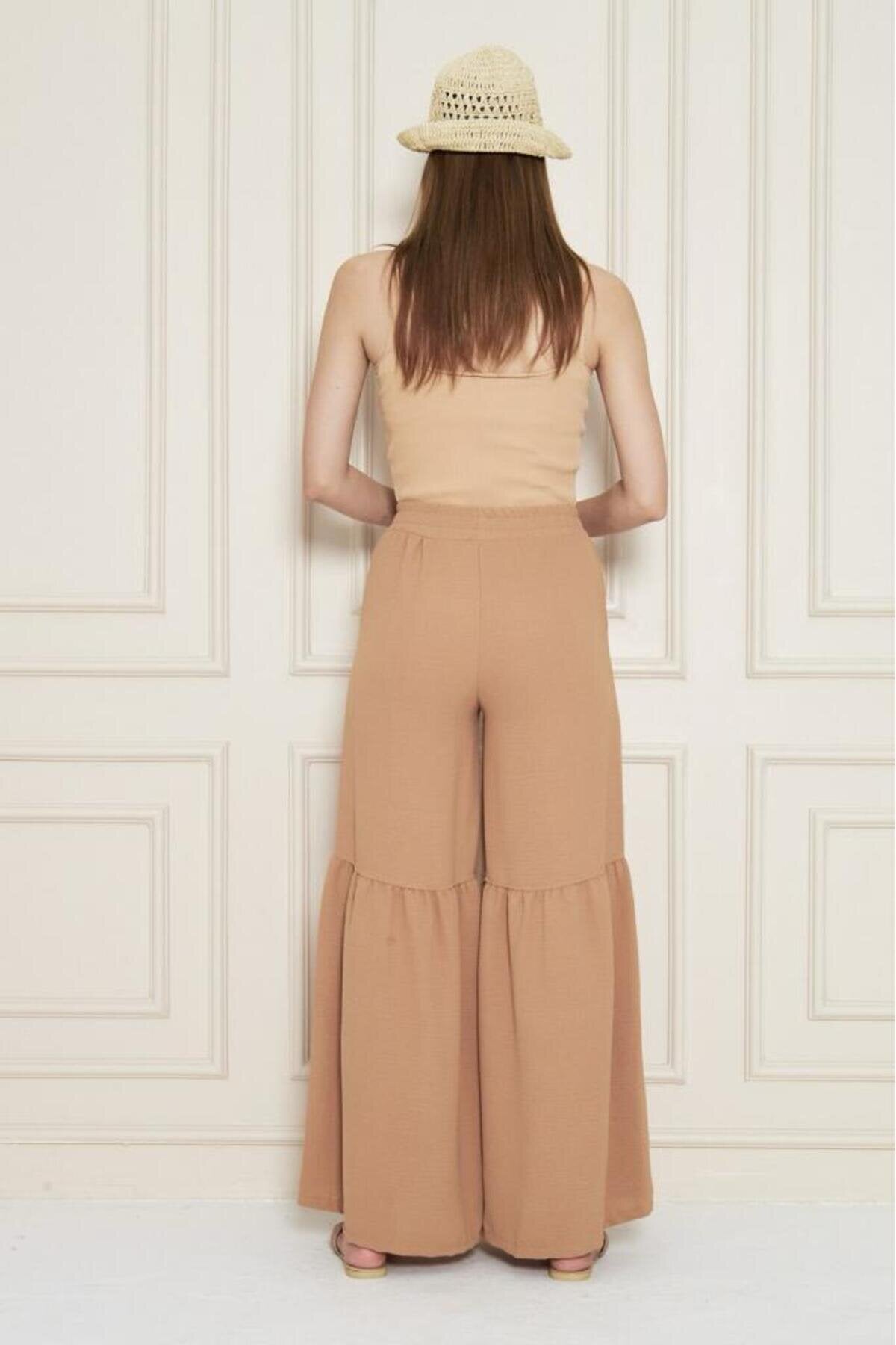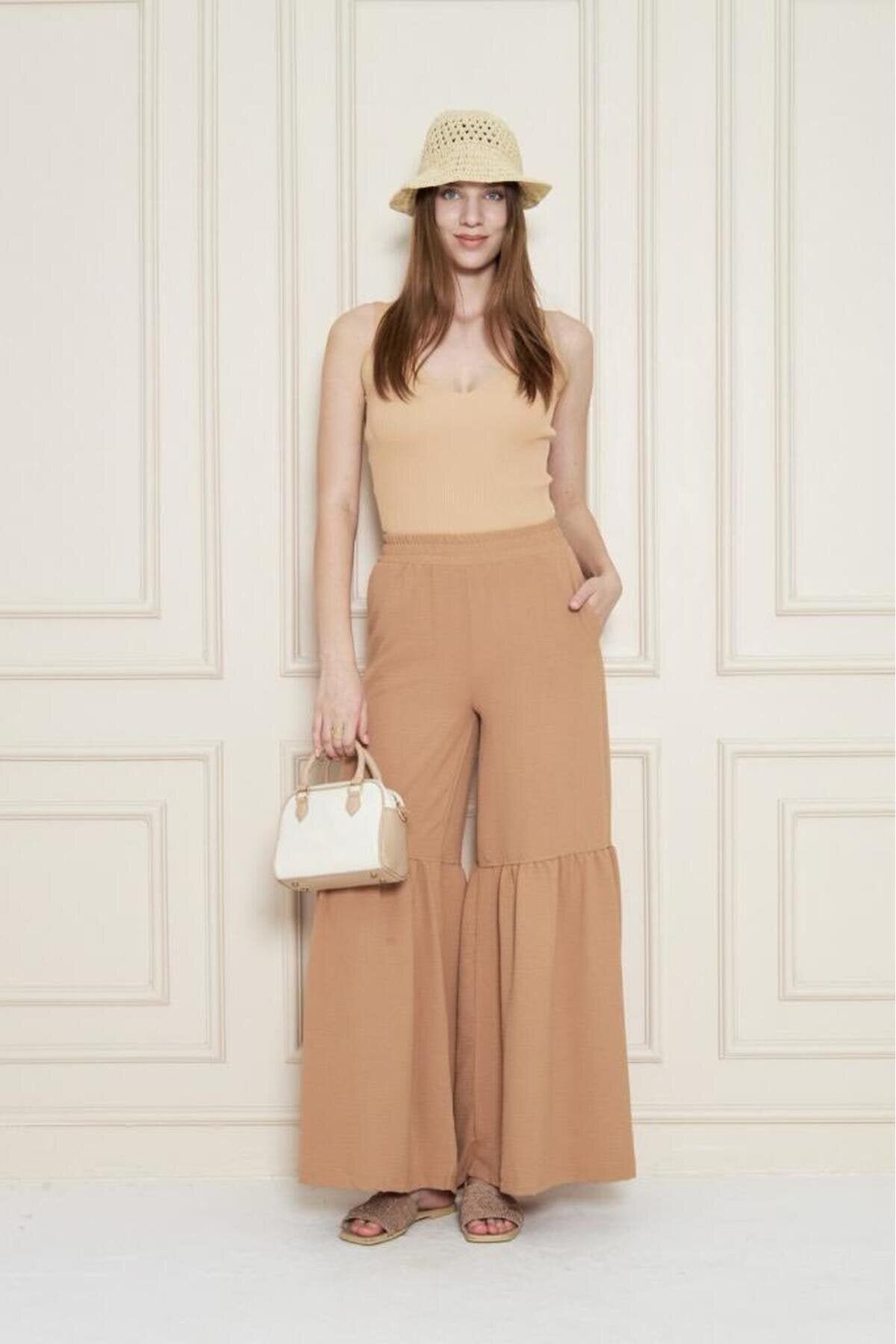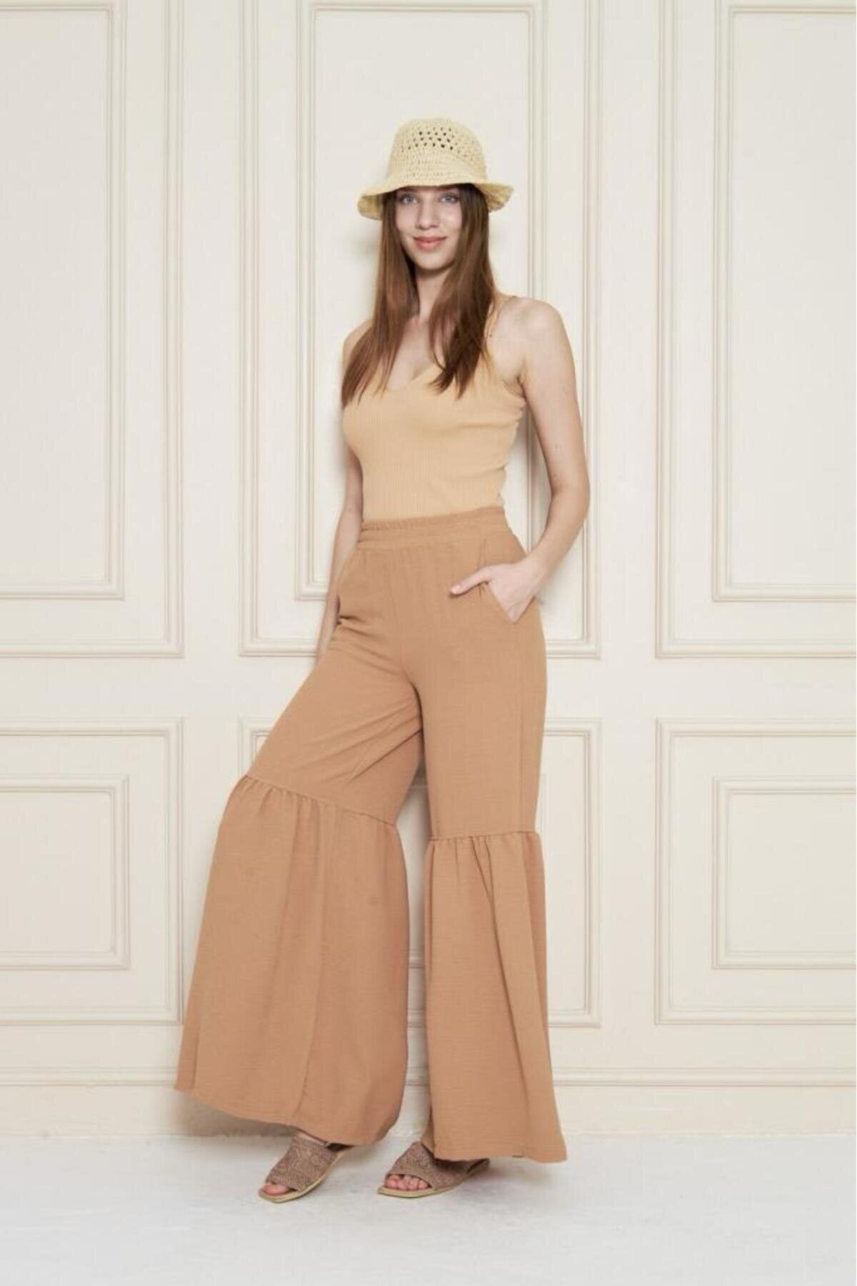 Aerobin Elastic Waist Gathered Hem Pants - Caramel