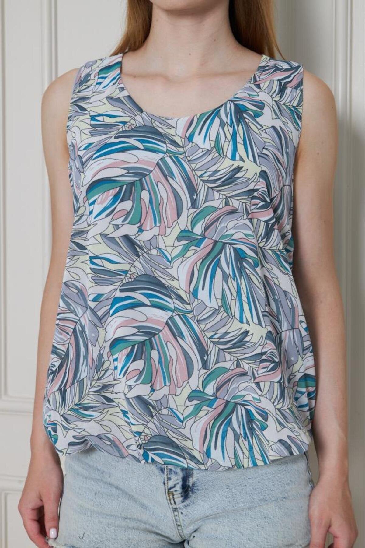 Balloon Chiffon Elasticated Waist Blouse - Grey Green