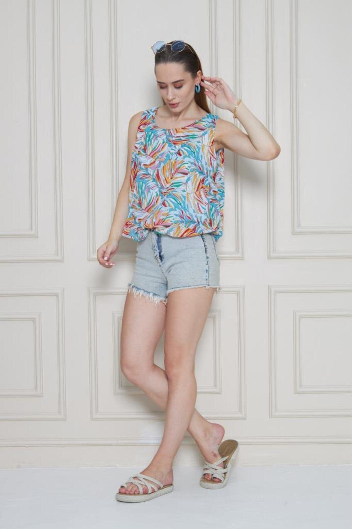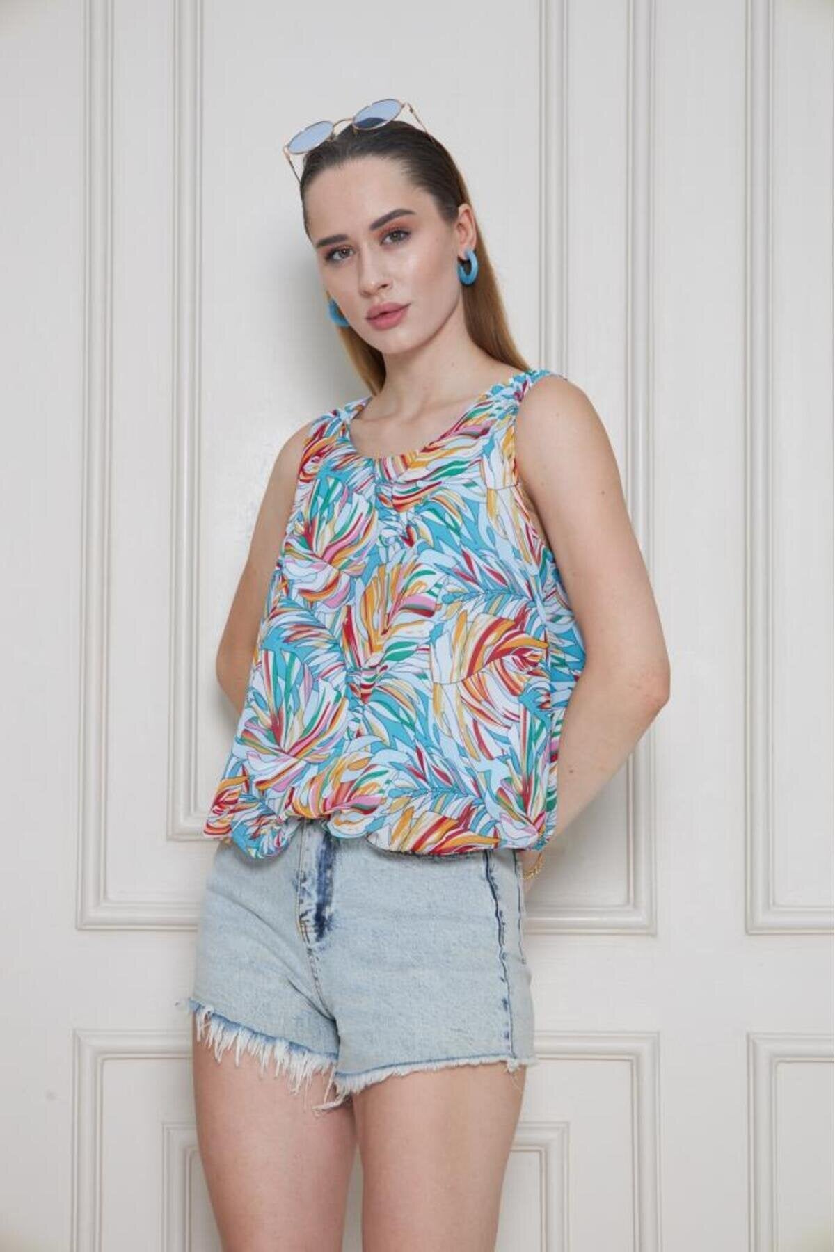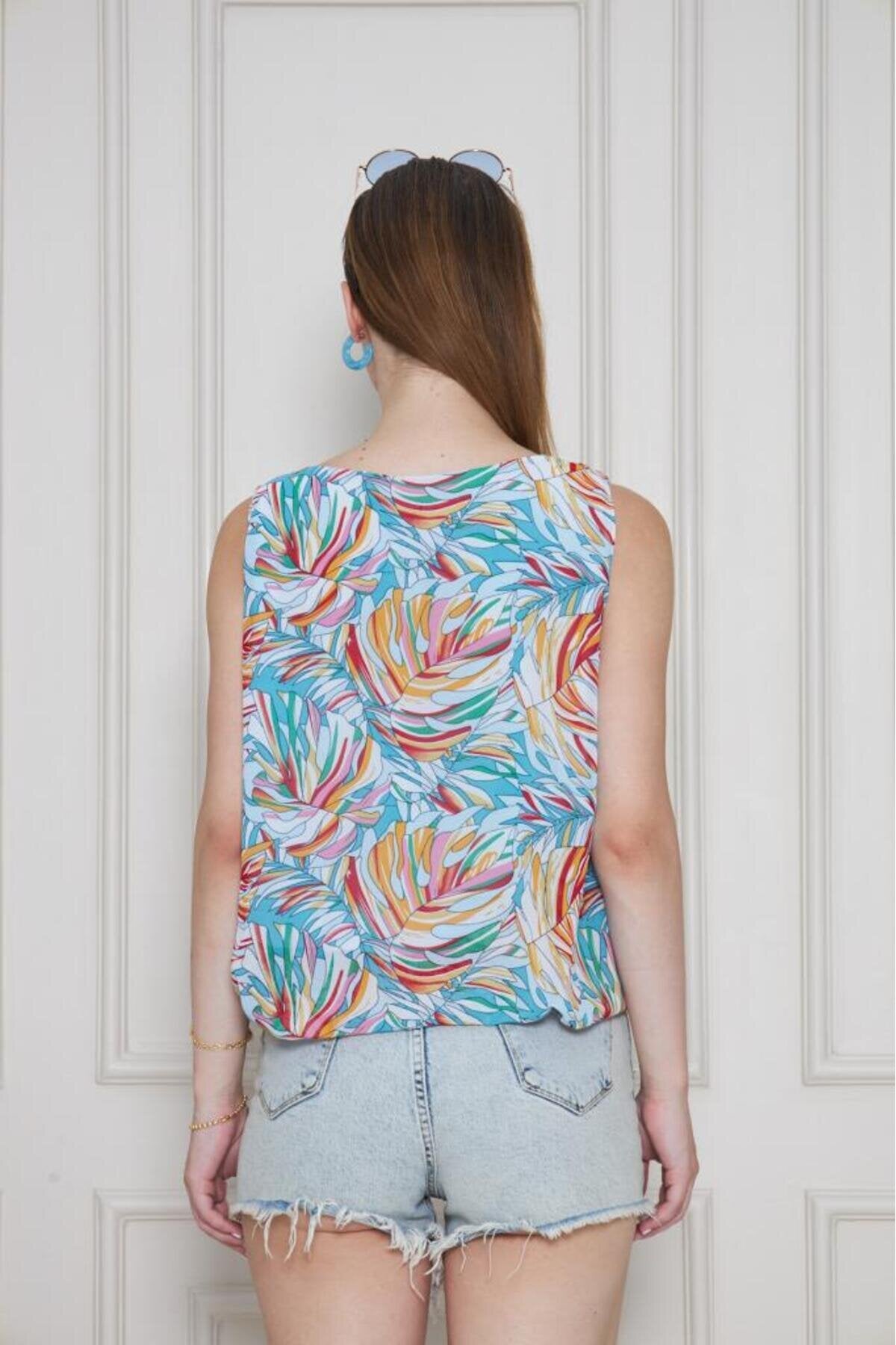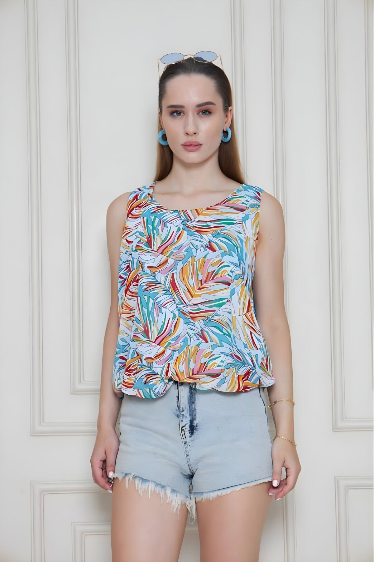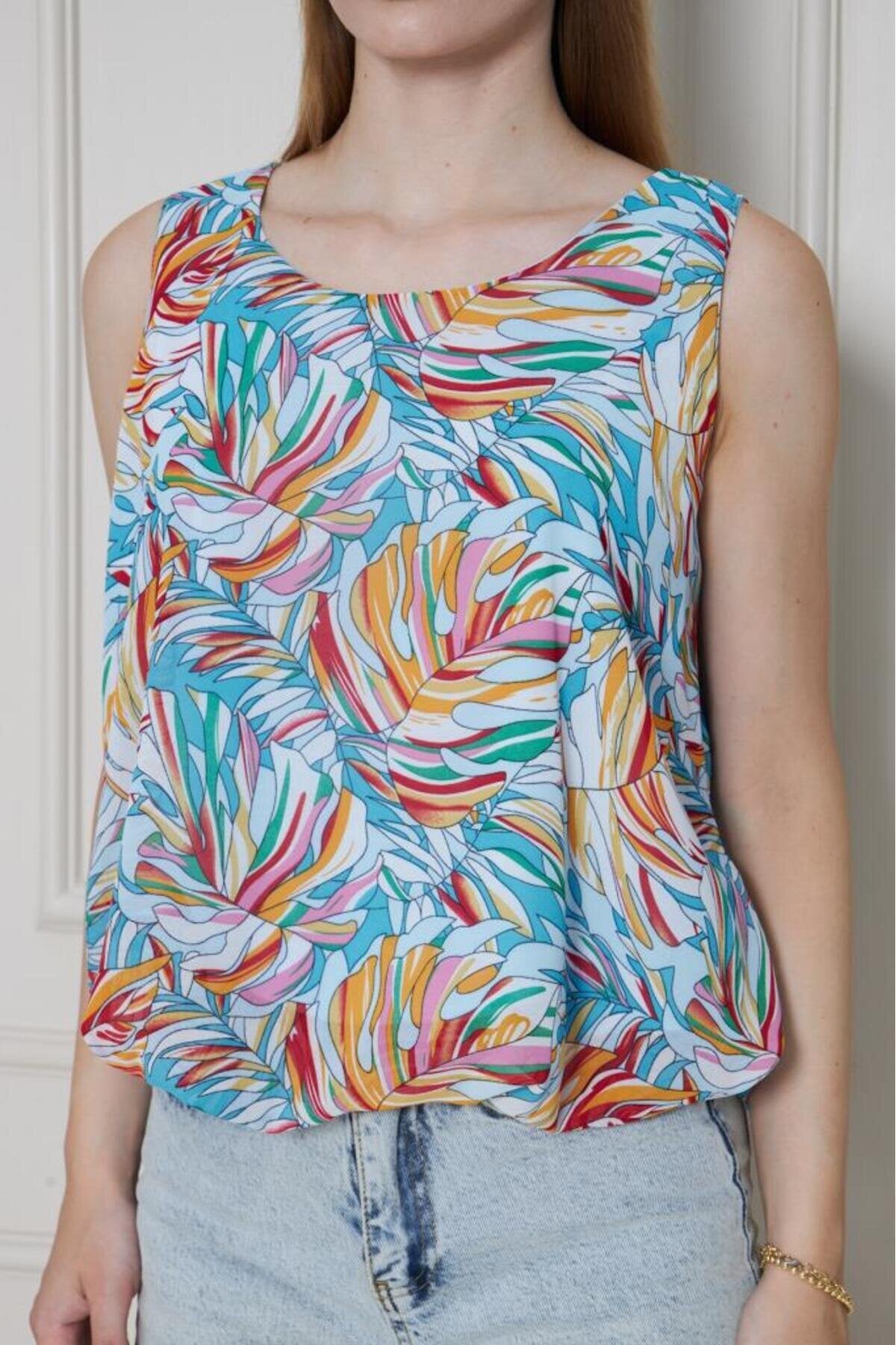 Balloon Chiffon Elasticated Waist Blouse - Orange Blue