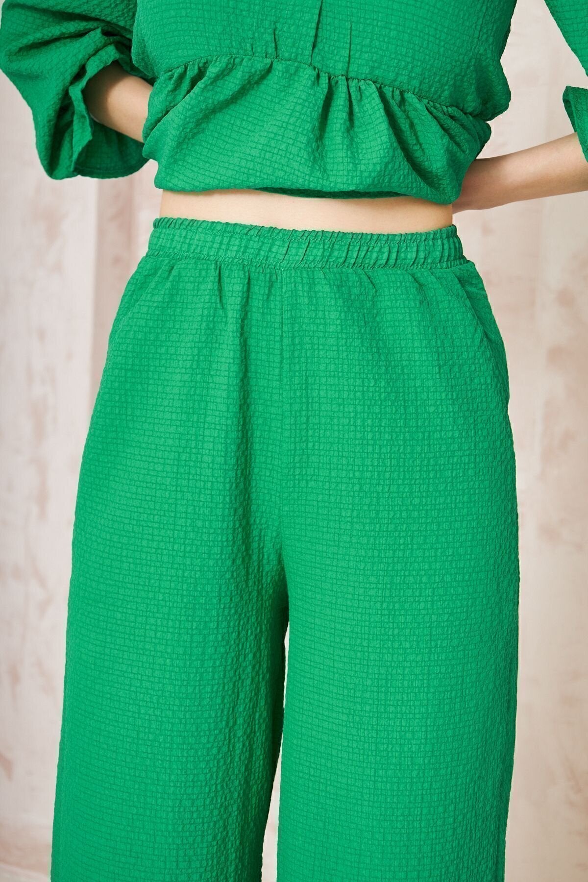 Weave Type: Textured, Silhouette: Balloon, Pattern: Plain, Fit: Relaxed, Collar Type: Button-up Collar, Fabric Type: Woven, Material: Polyester, Color: Blue, Pocket: Twin Pockets, Product Detail: Ruched, Sleeve Length: Long, Collection: Basic, Two-Piece Set: Tunic and Pants, Additional Feature: Elasticated Waist, Sleeve Type: Balloon Sleeve, Sustainability Detail: No, Closure Type: Elasticated, Length: Long, Belt/Sash Status: Beltless, Persona: Feminine, Occasion: Casual, Waist: Elasticated, Lining Status: Unlined, Thickness: Medium, Leg Type: Wide Leg, Package Content: 2-piece, Number of Pieces: 2