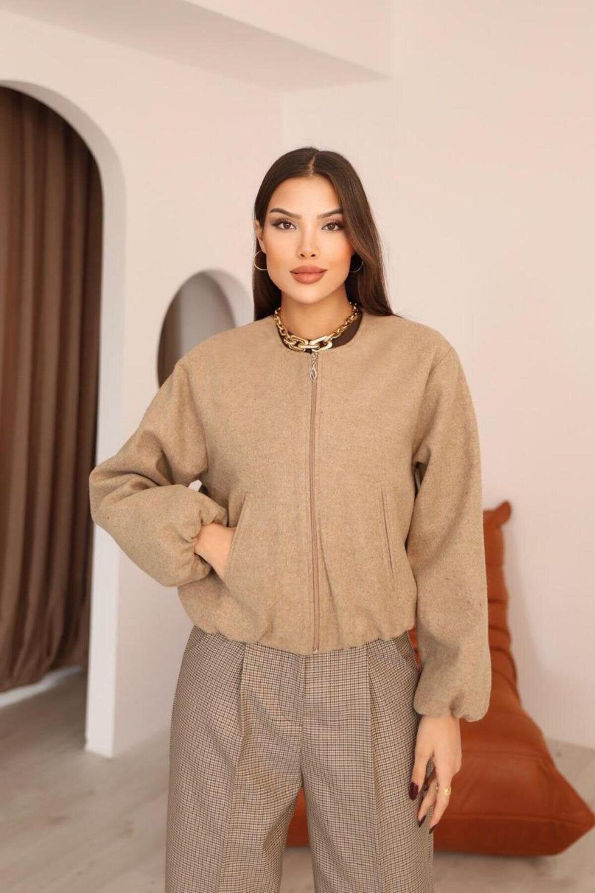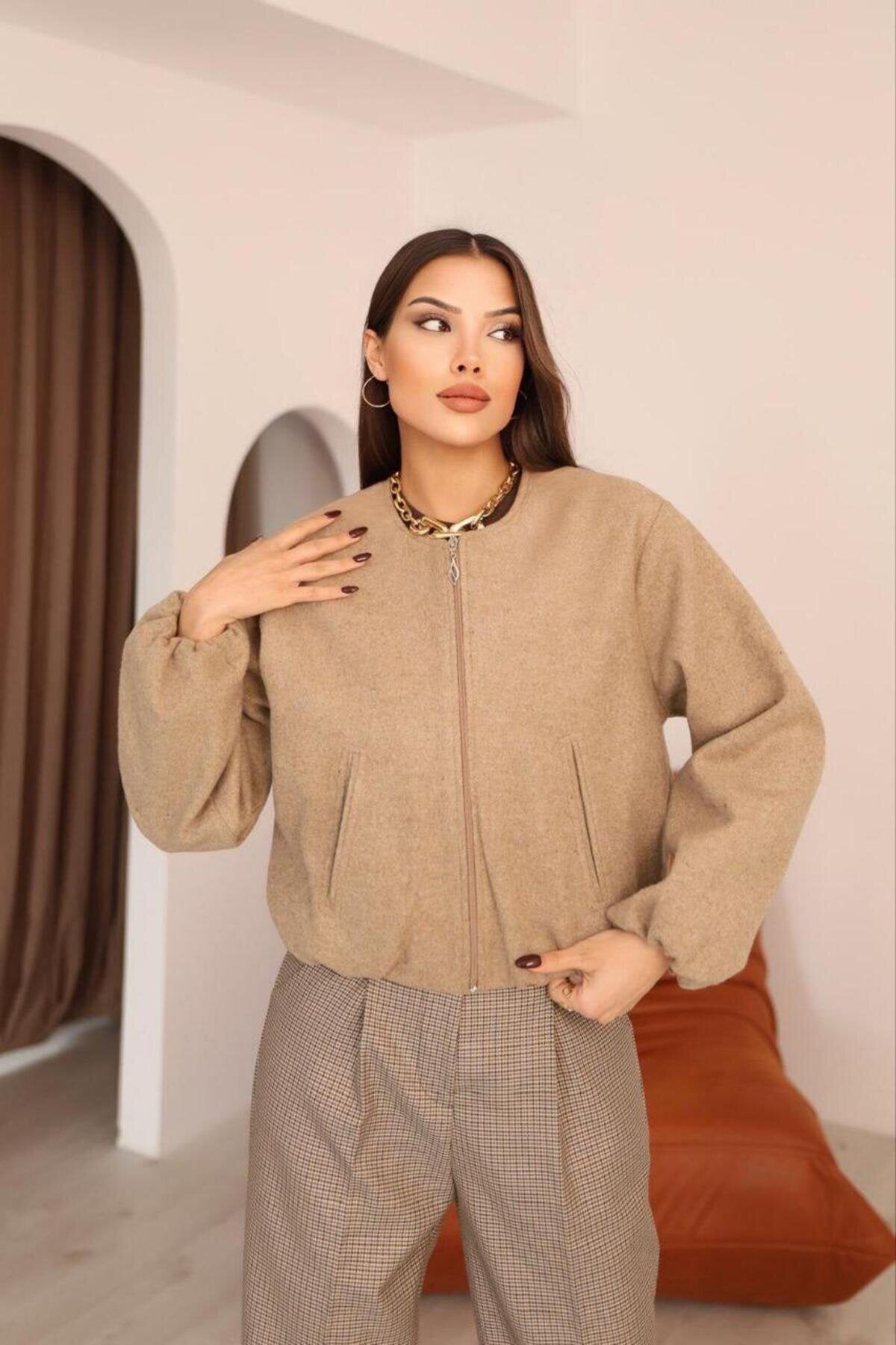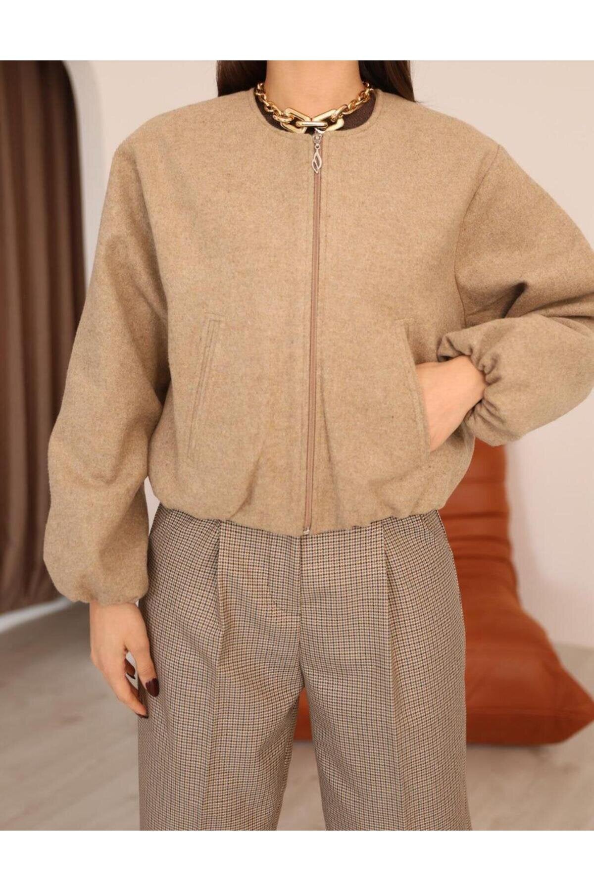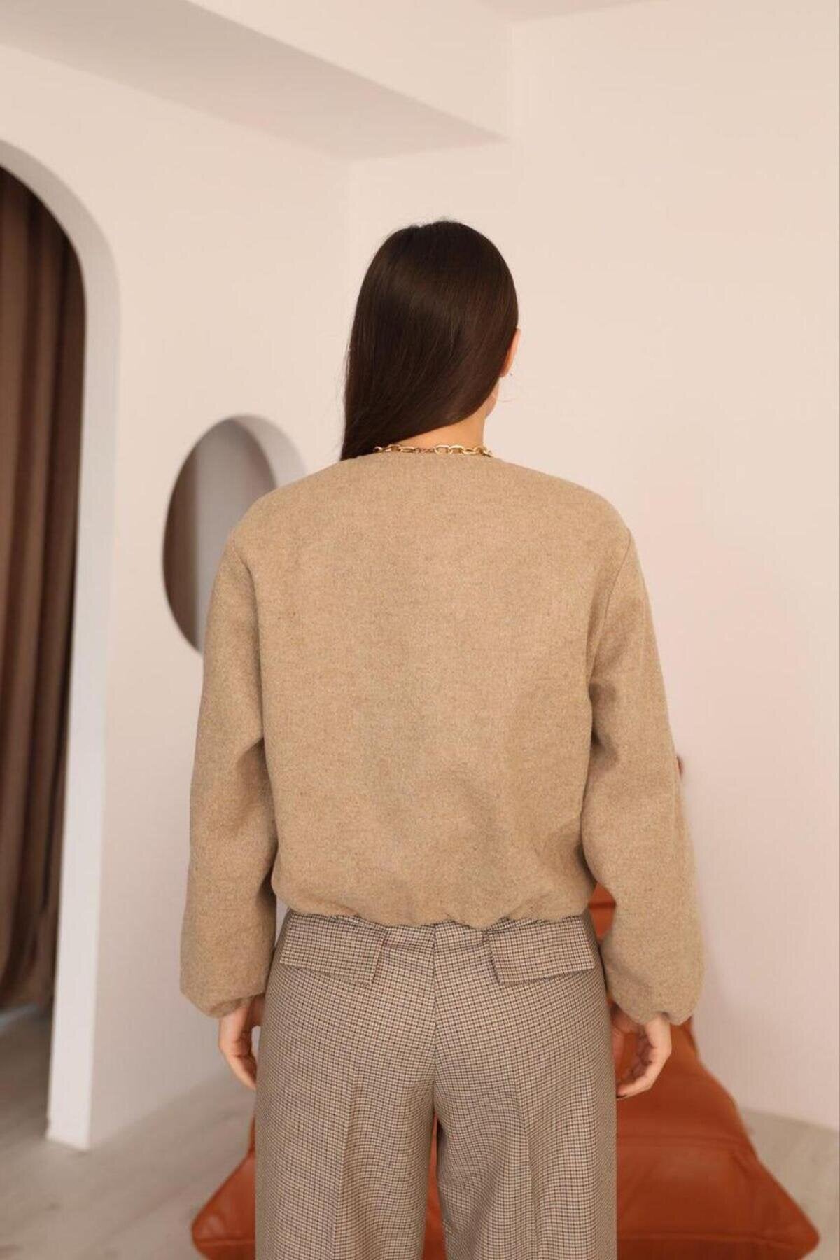 This felted wool bomber jacket, offering elegance and comfort with its beige color, is ideal for daily wear. While creating an eye-catching look with its multi-colored details, it establishes a cool and comfortable style. Thanks to its washing instructions that allow for easy care, it is suitable for long-term use. It offers practicality with its double-pocket design and provides sufficient space for your belongings. While its straight cut achieves a simple and timeless look, it appeals to the younger age group. As part of the Basic collection, it deserves to be a fundamental piece in every wardrobe. With its beltless design, it offers a modern and minimalist style. Its 100% cotton material composition provides a comfortable experience while allowing your skin to breathe. Its medium-weight fabric offers ideal protection during seasonal transitions while not causing sweating in extreme heat. Its oversized fit, while providing freedom of movement, offers a trendy