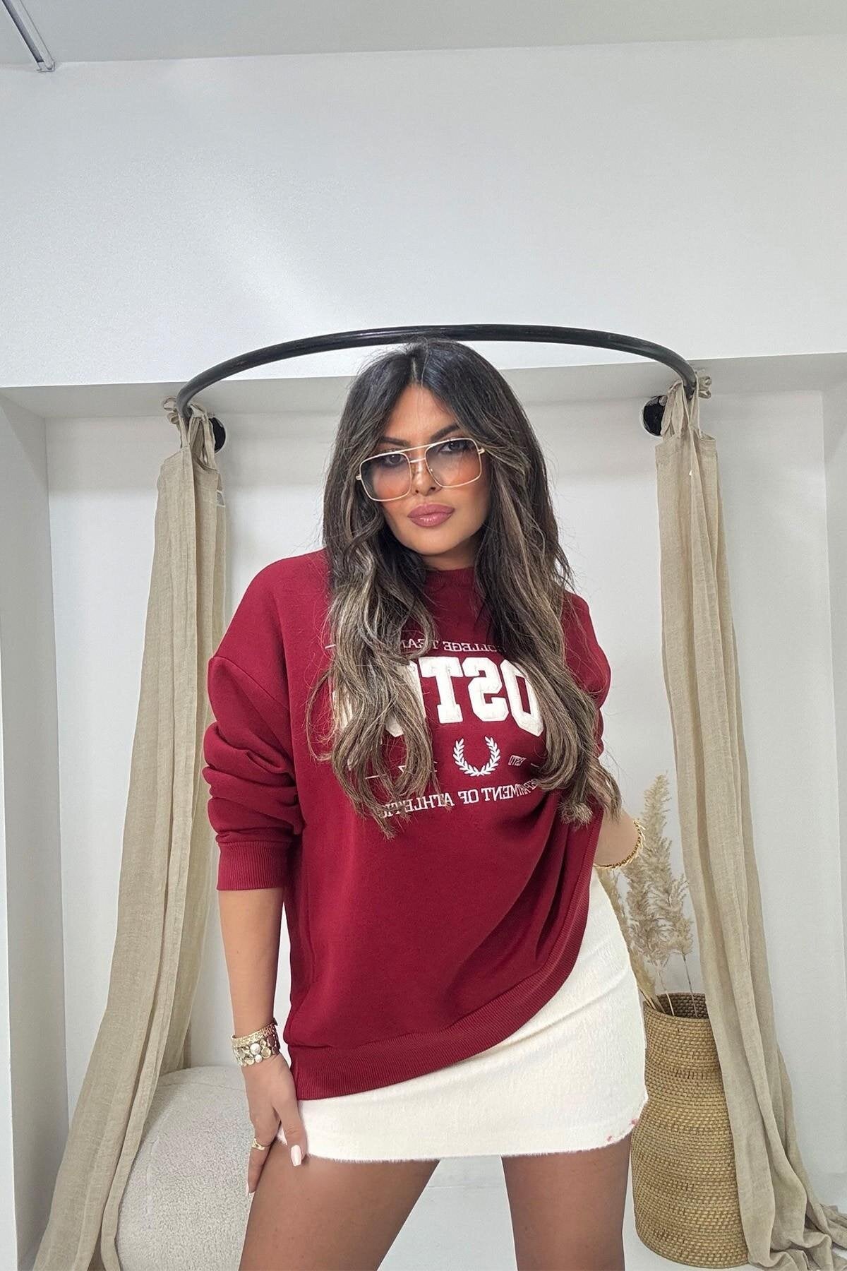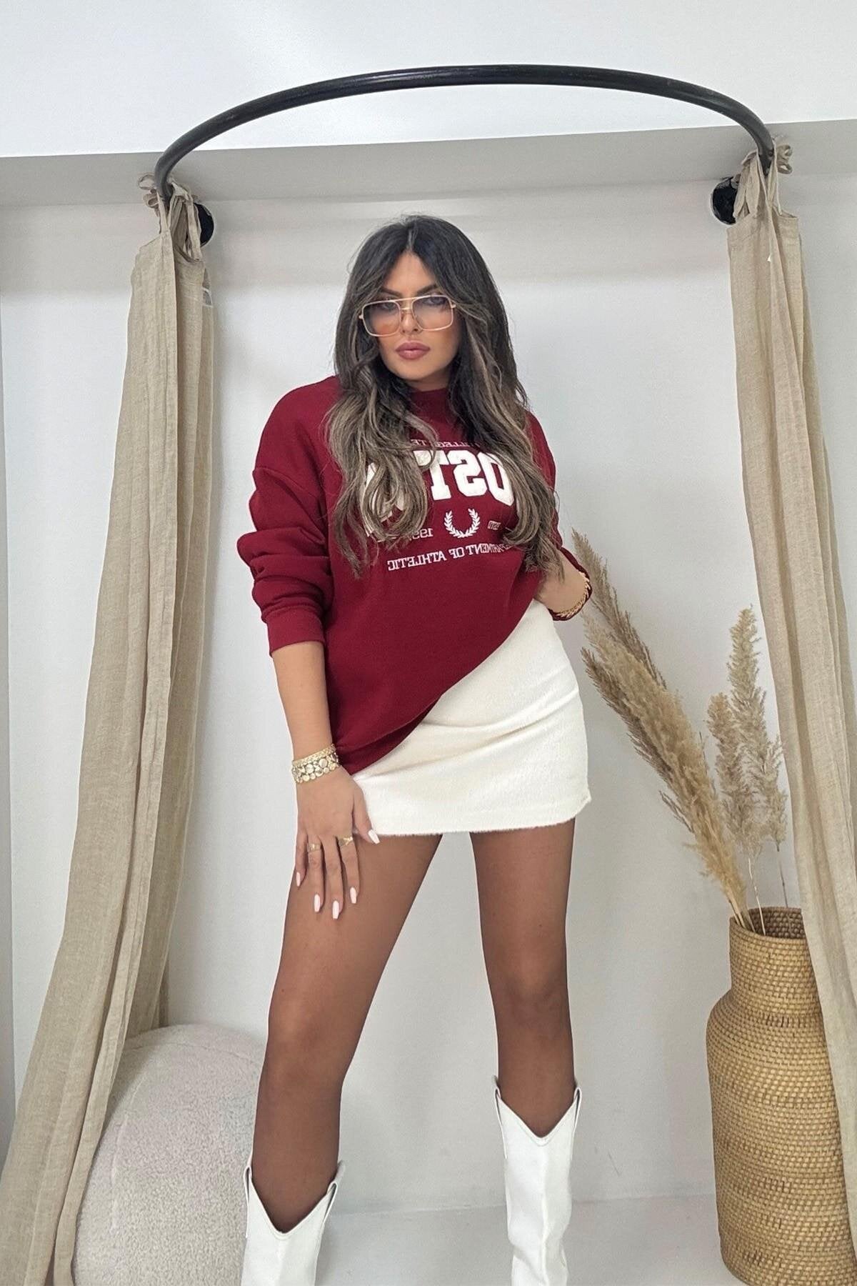 Boston Fur Lettering Detail Sweatshirt - Burgundy
