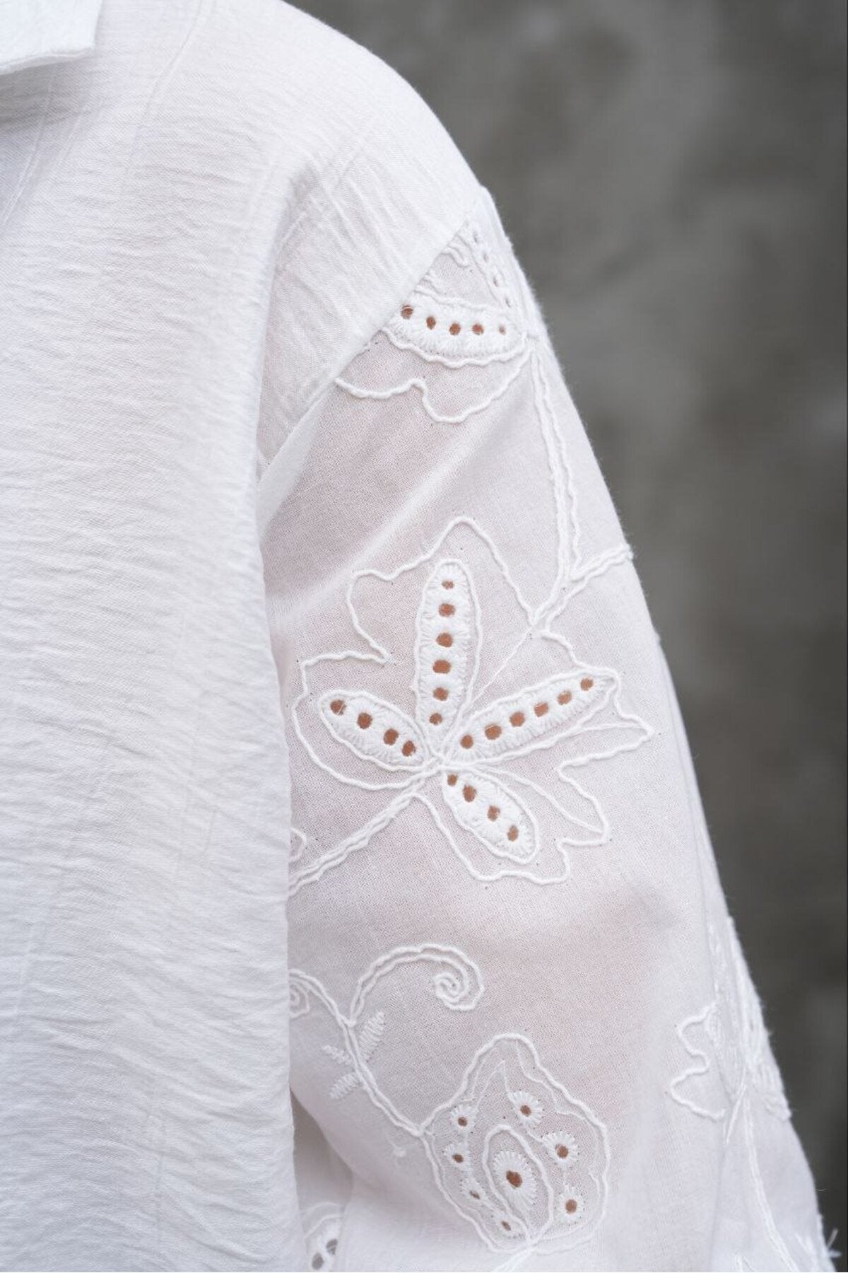 It provides a modern and elegant look with its broderie anglaise details, making it ideal for daily wear.