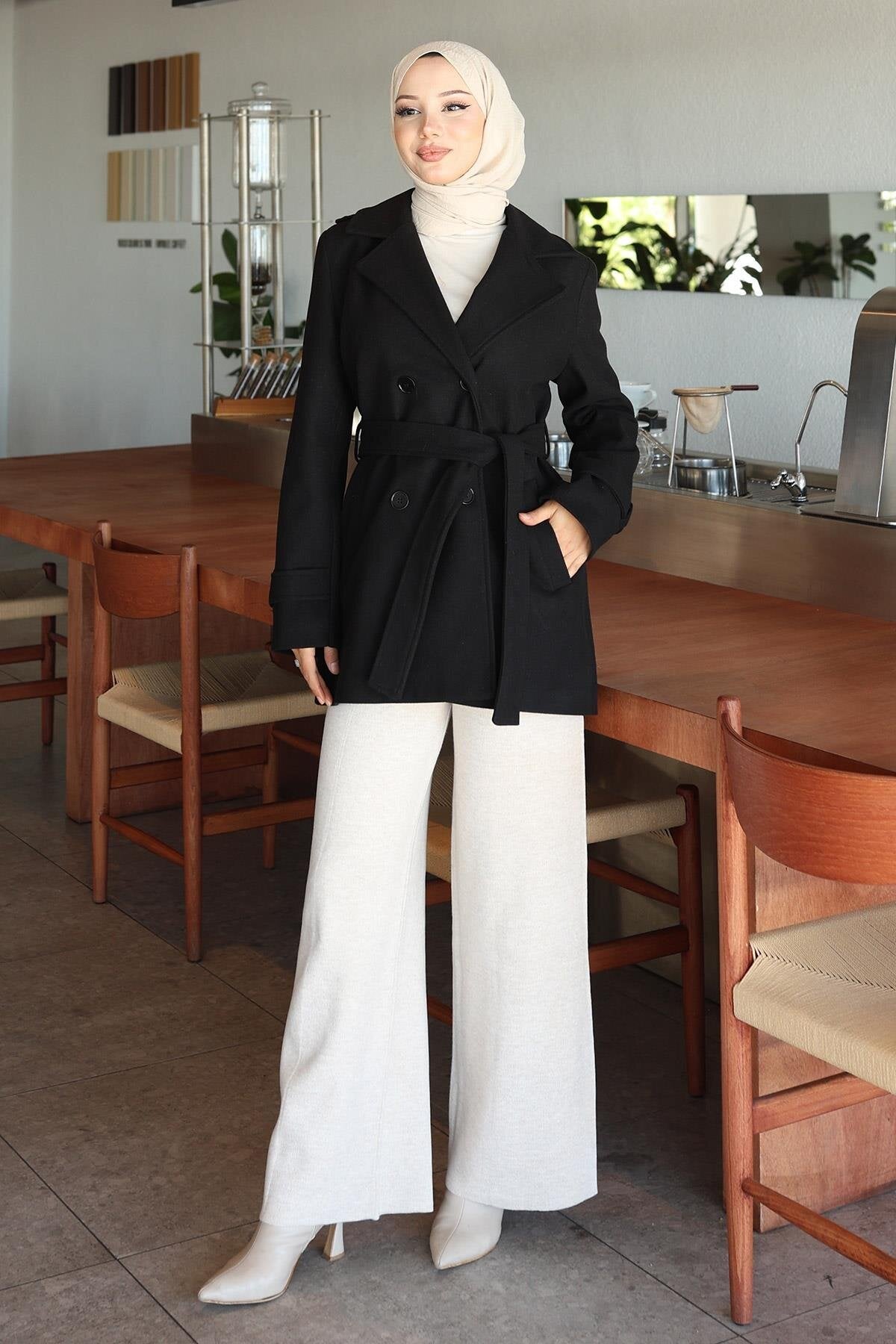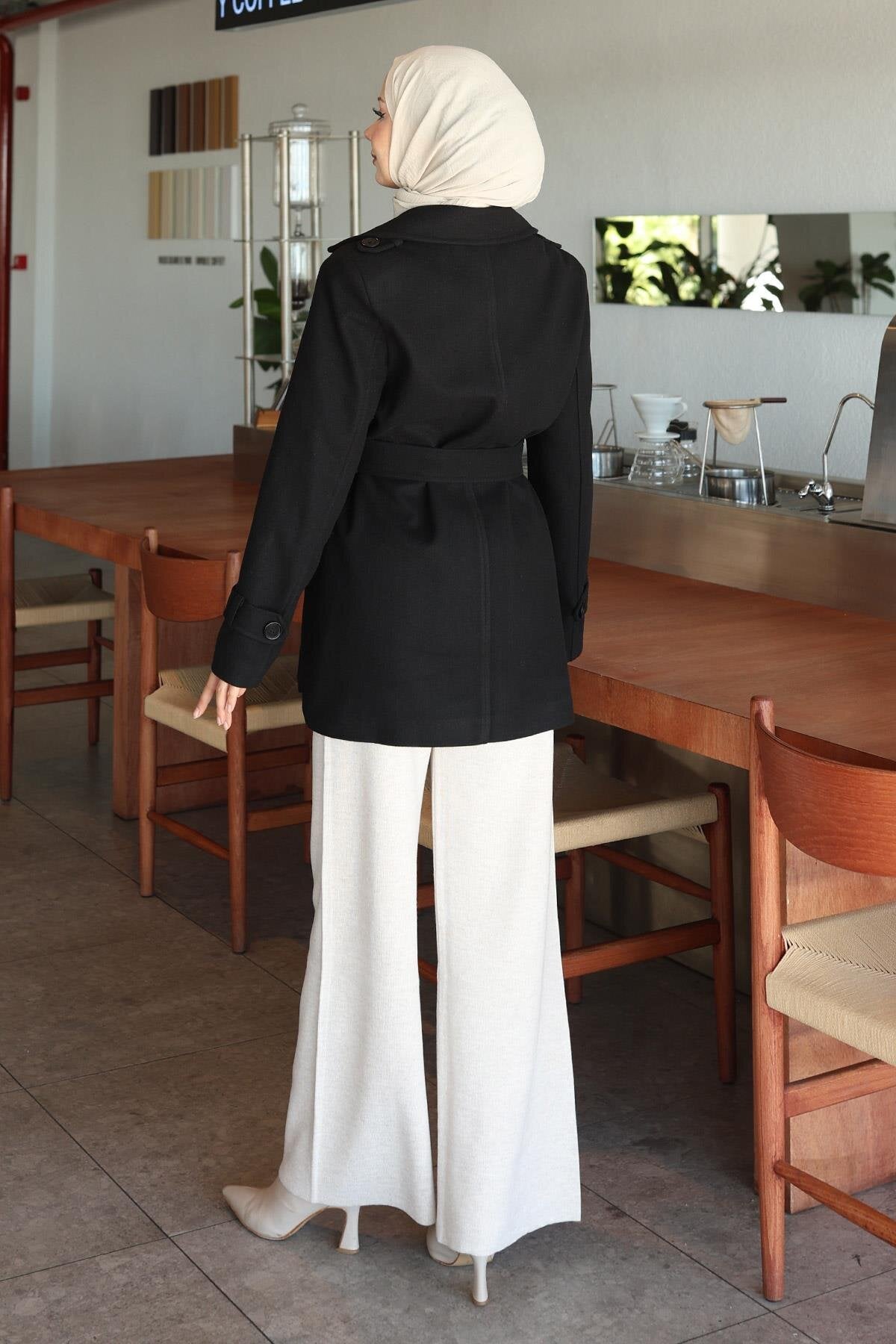 Button Detail Melton Wool Winter Coat - Black
