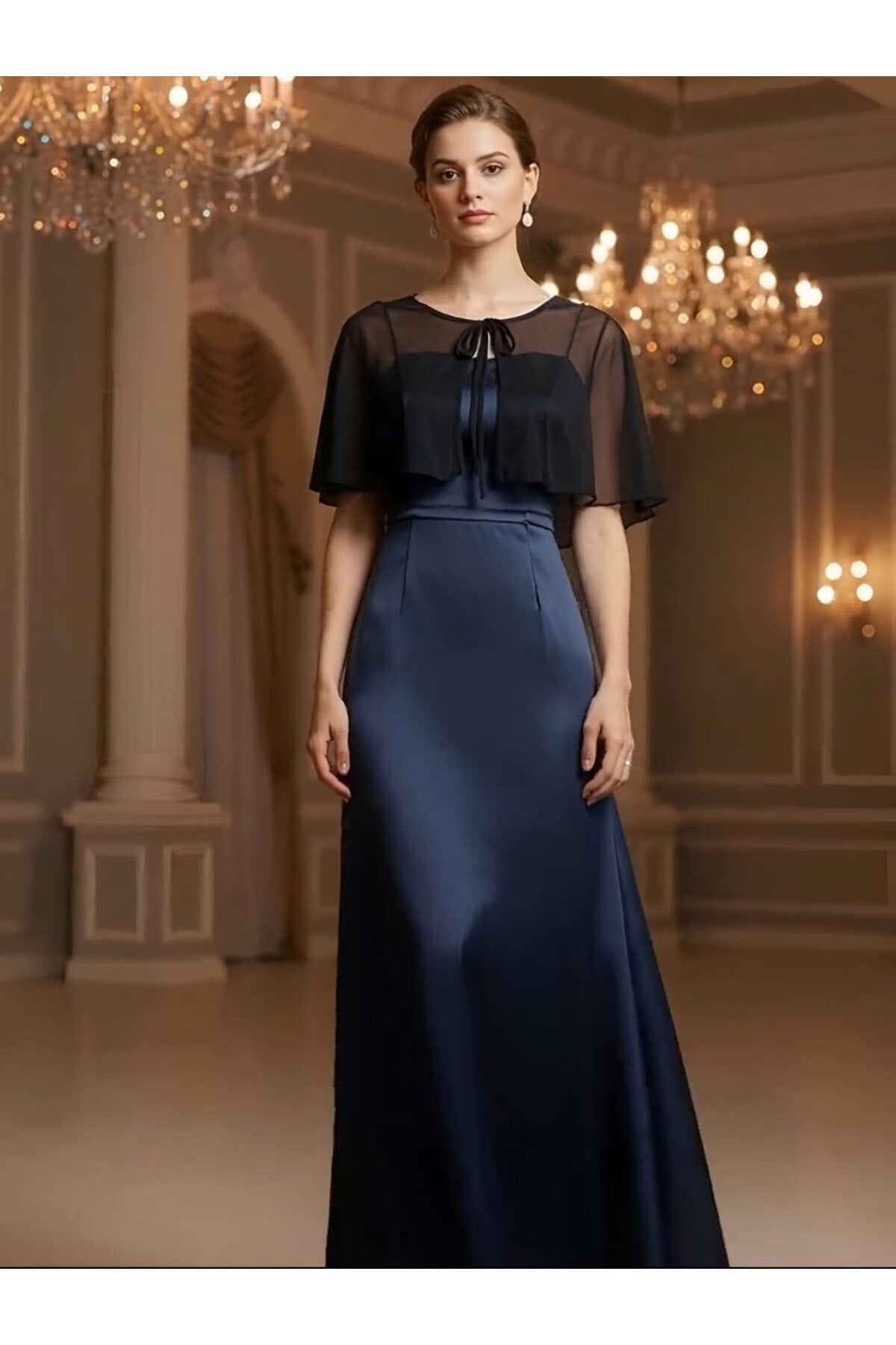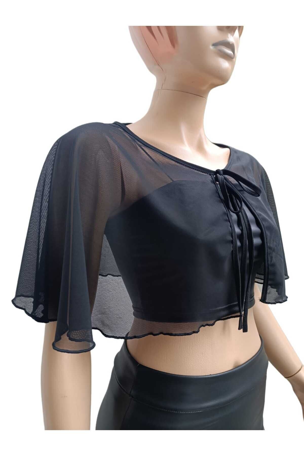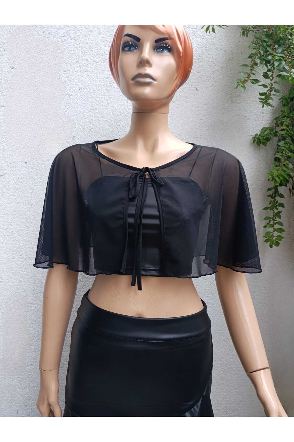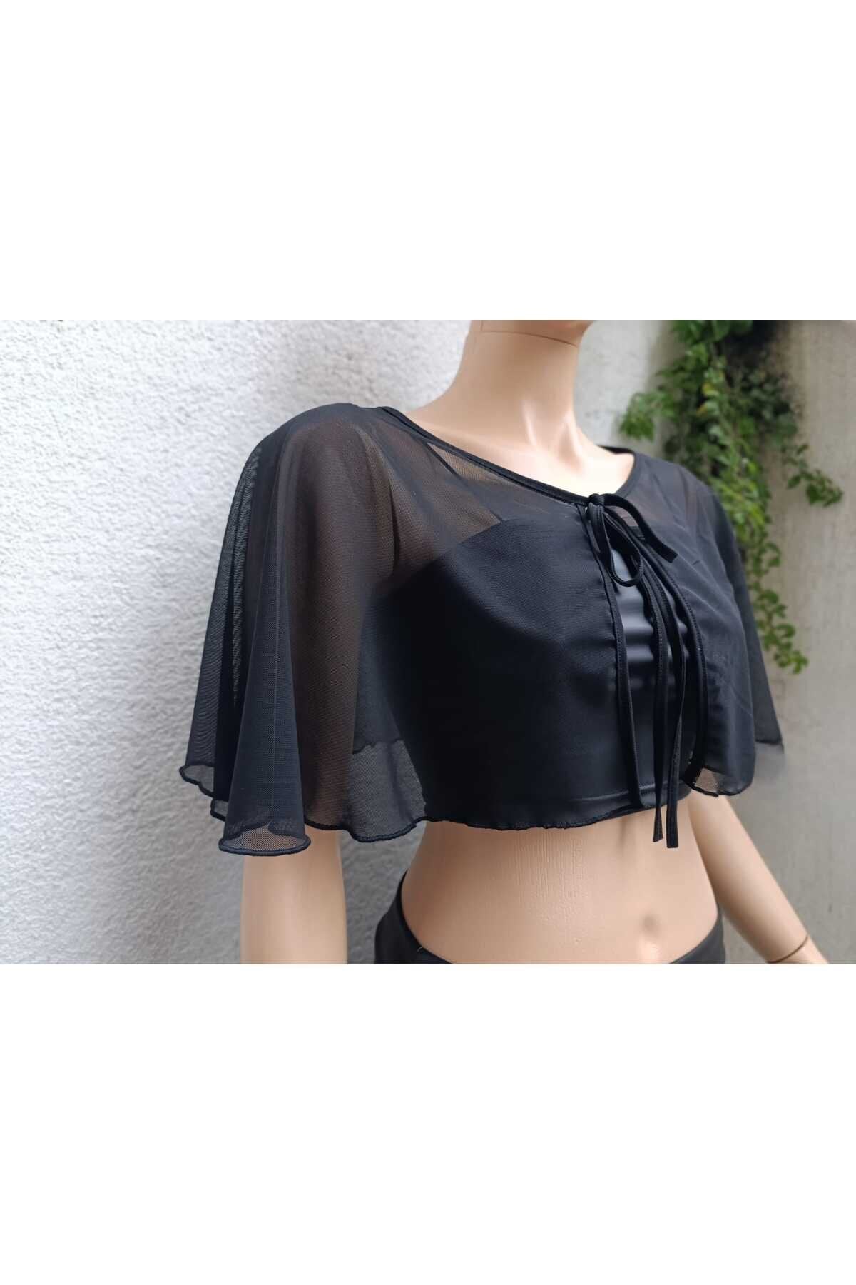 Cape Tulle Tie-Detail Blouse - Black