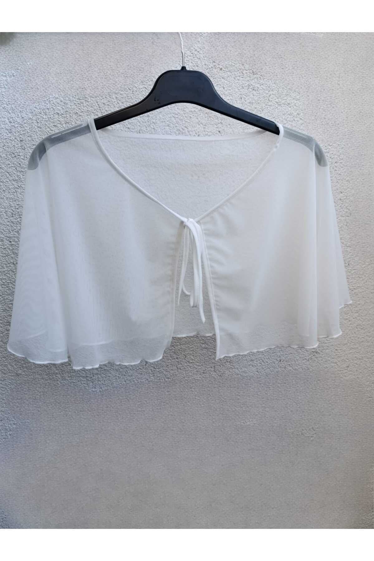 Cape Tulle Tie-Detail Bolero Blouse - White