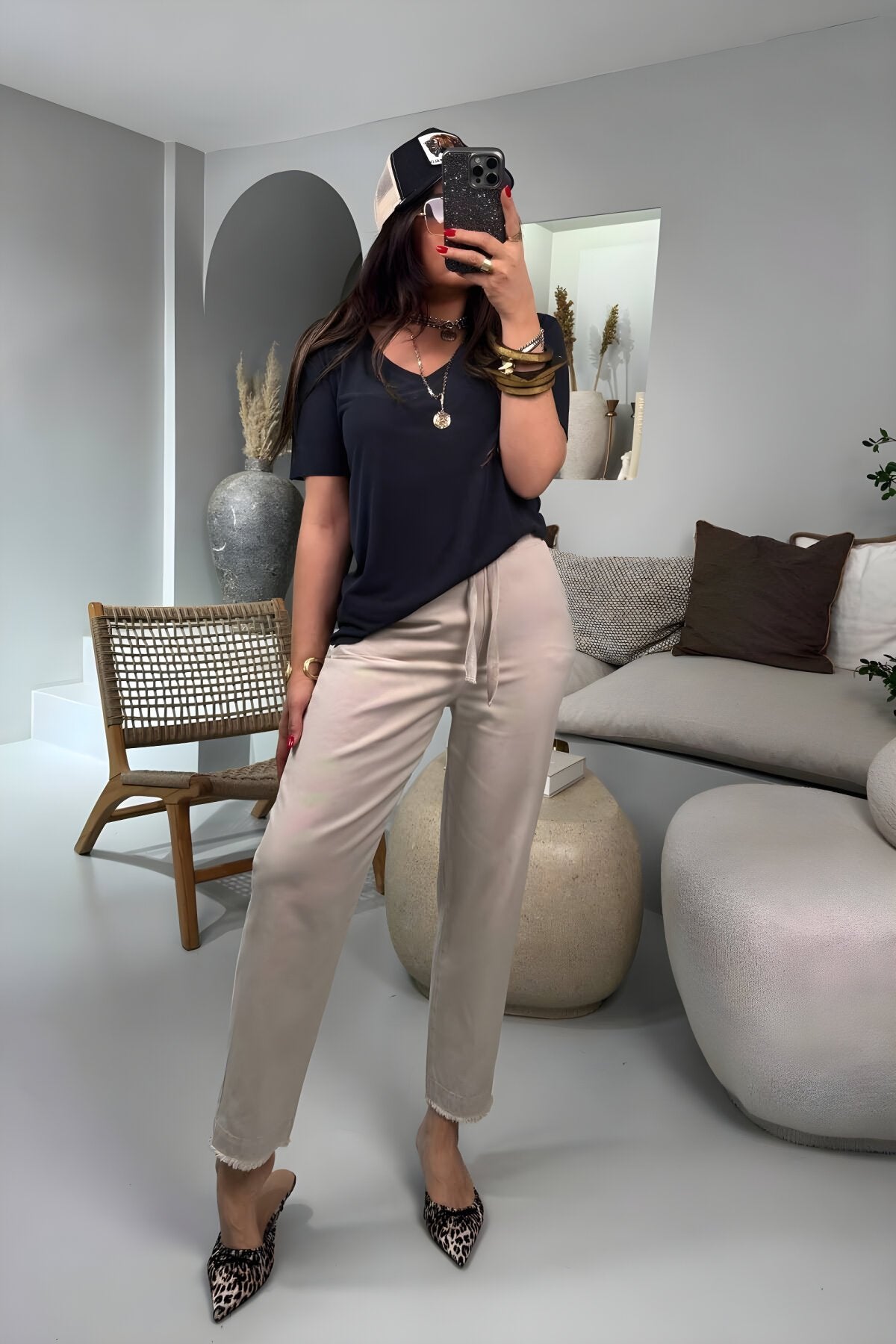 Carrot Fit Gabardine Elastic Waist Pants - Stone