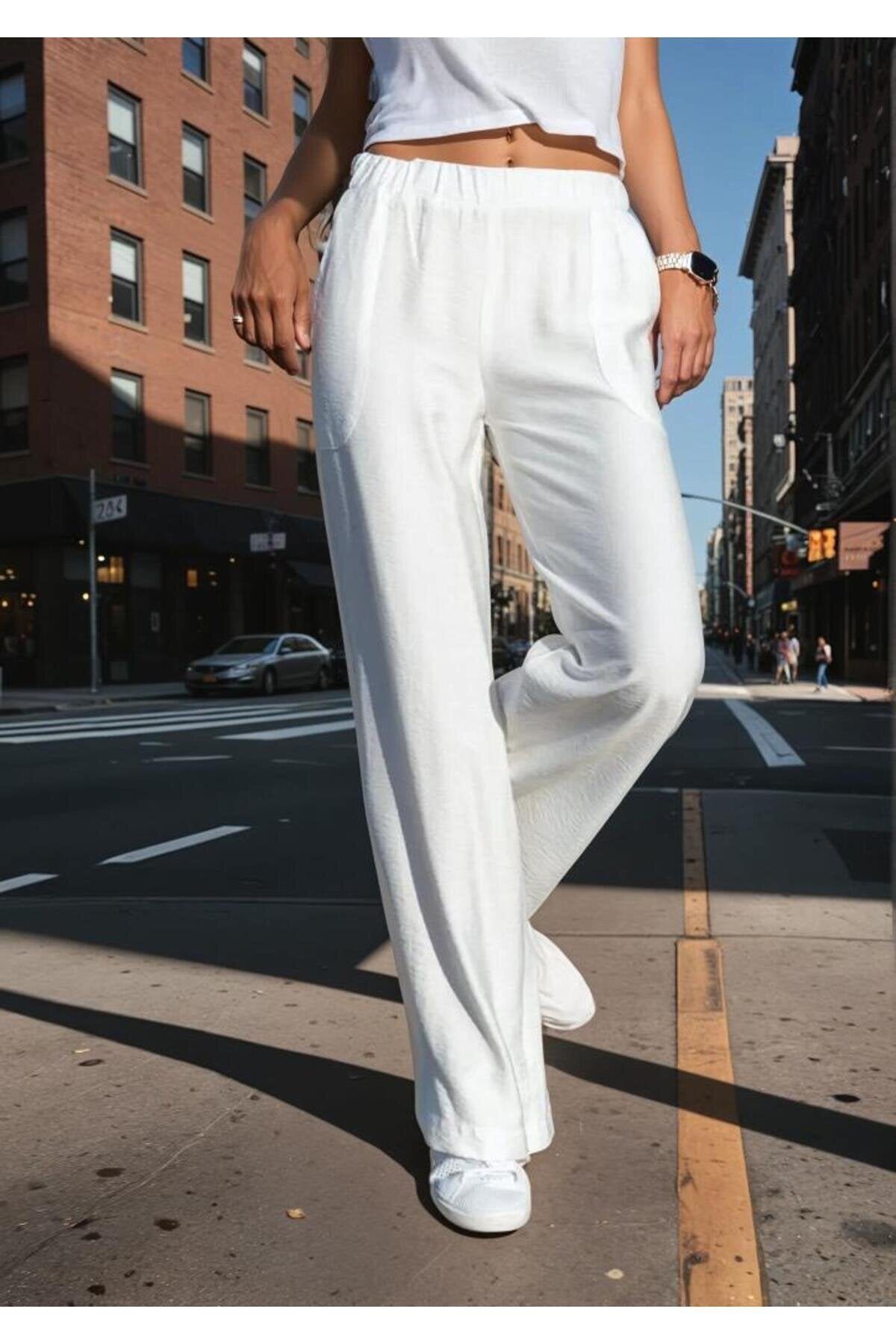 Comfortable Wide Leg Linen Textured Pants - White