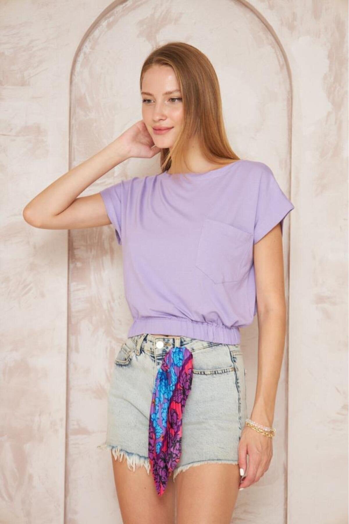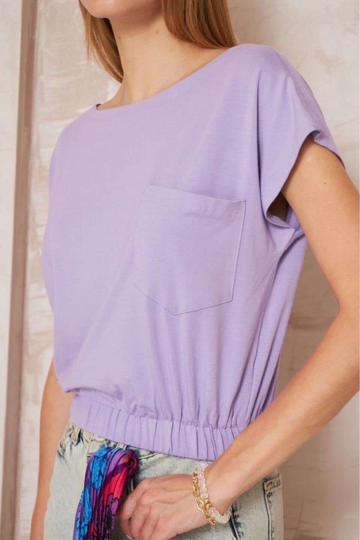 Crop Elasticated Hem Pocket Detail Blouse - Lilac
