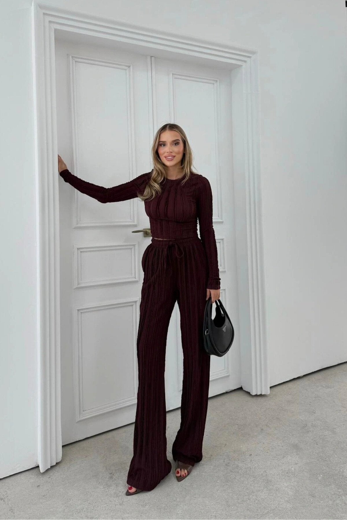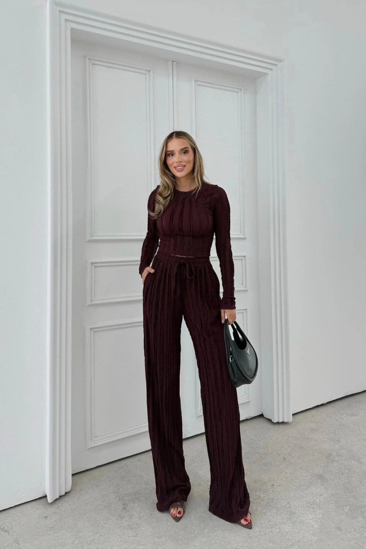 Cropped Reverse Stitch Thumbhole Two-Piece Set - Plum