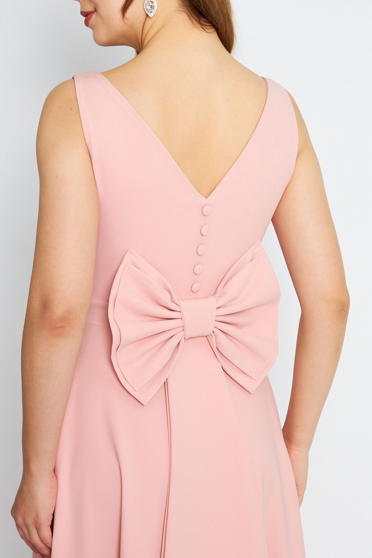 - Finished with a charming bow detail at the back, this gown ensures you make a memorable impression from every angle, blending playful charm with high-fashion sophistication.