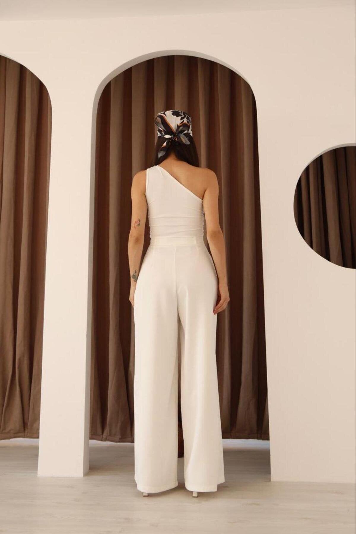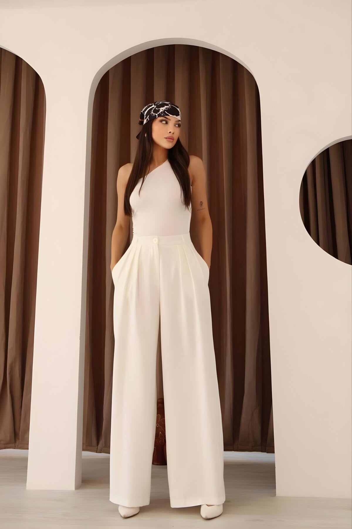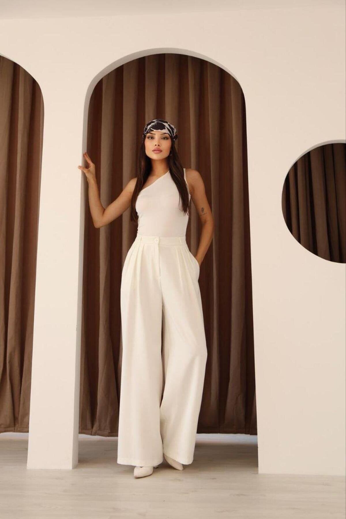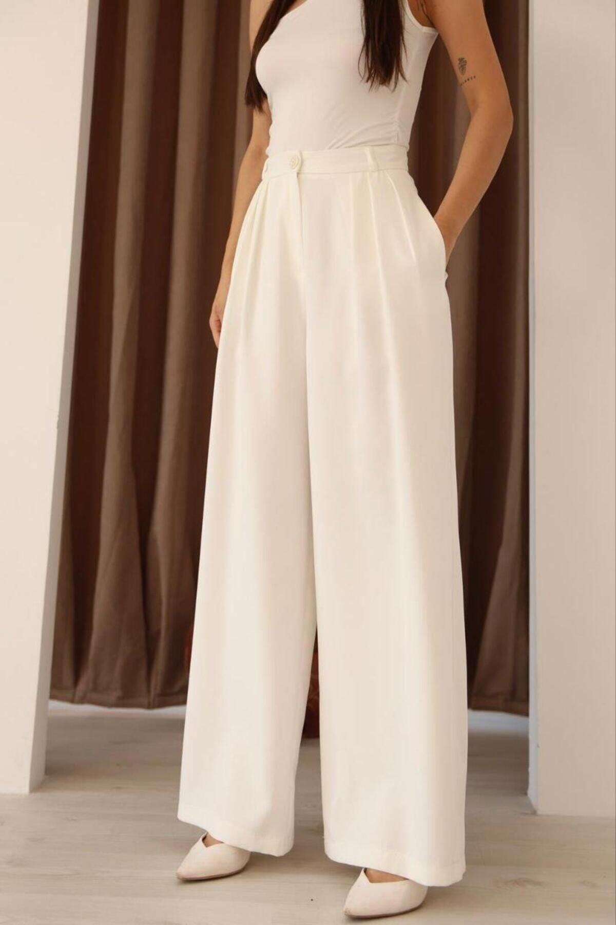 High Waist Wide Leg Palazzo Pleated Pants - White