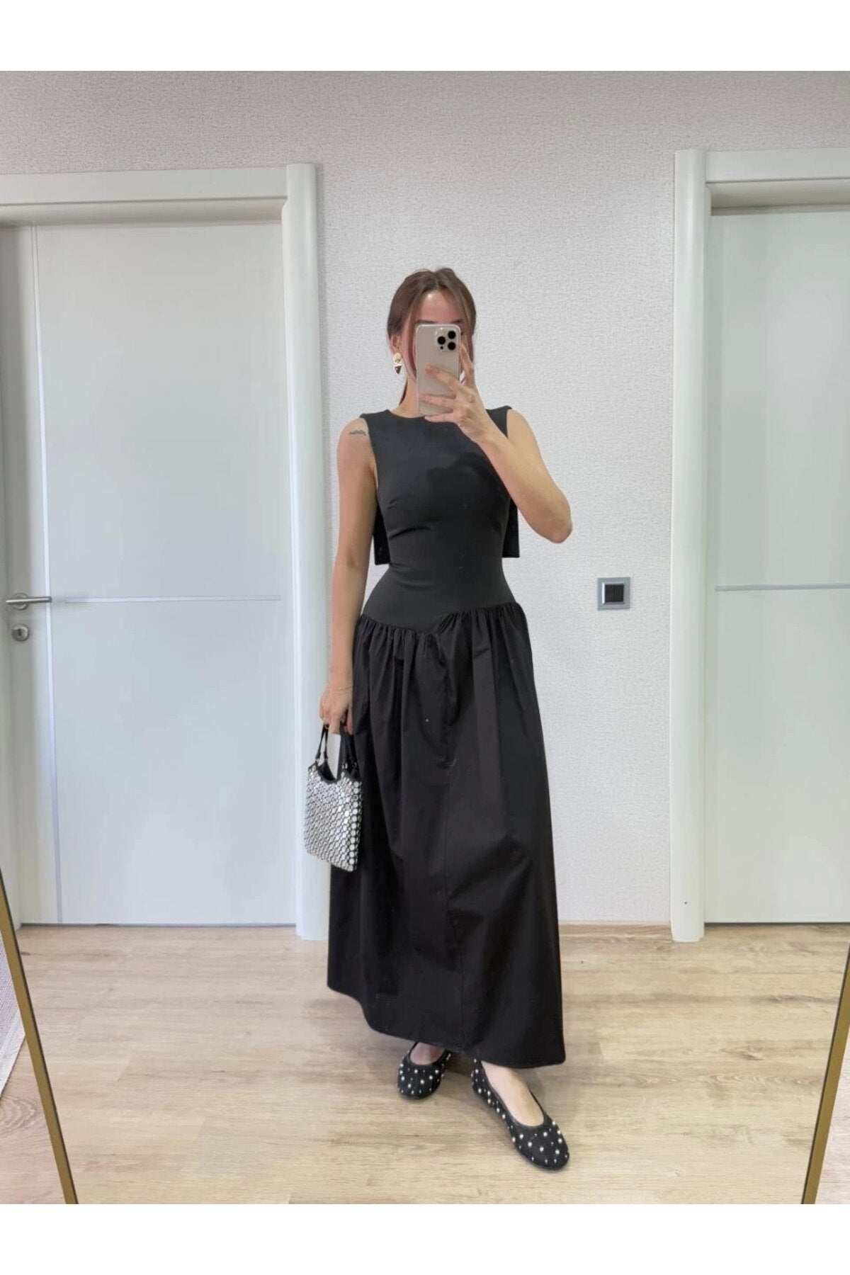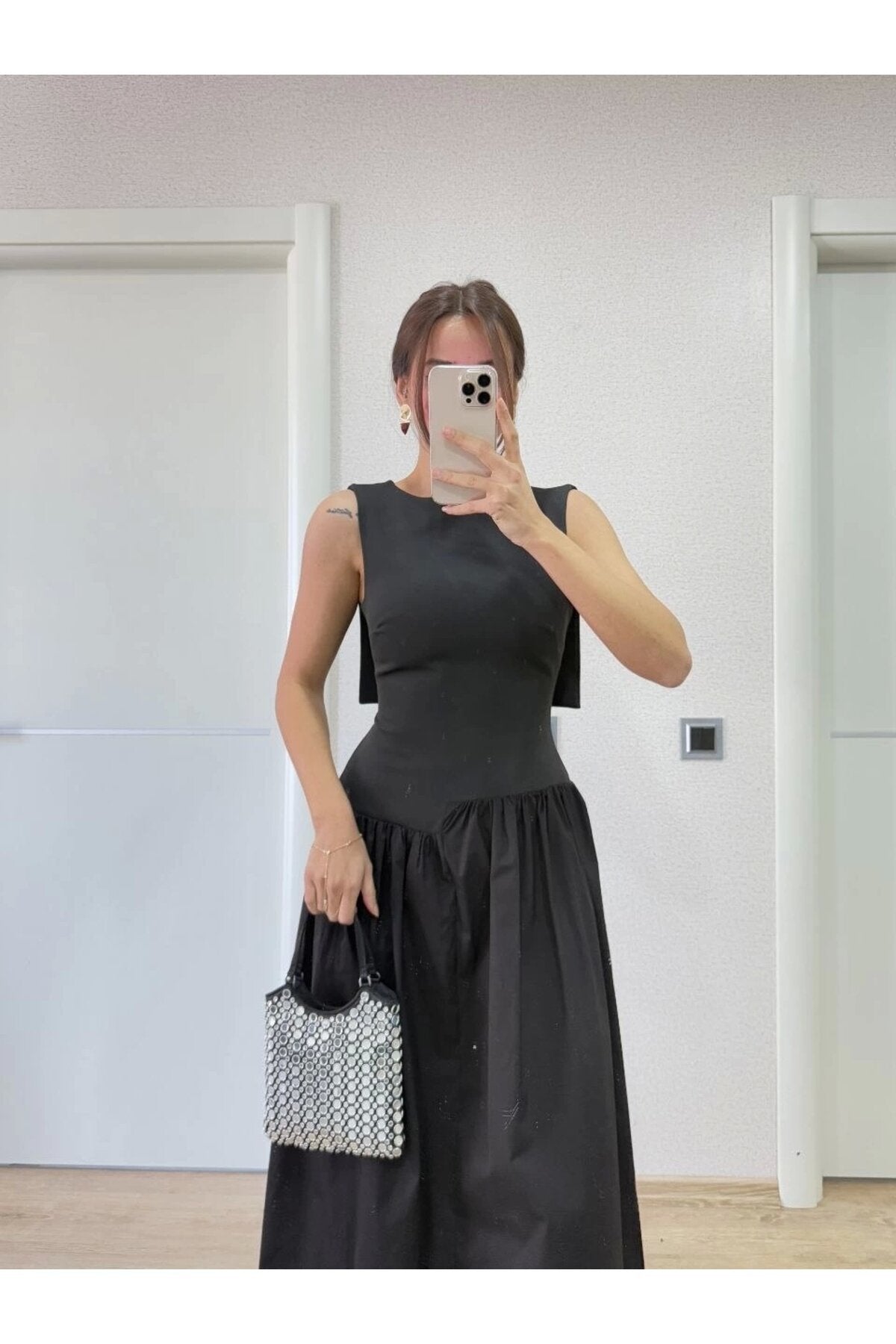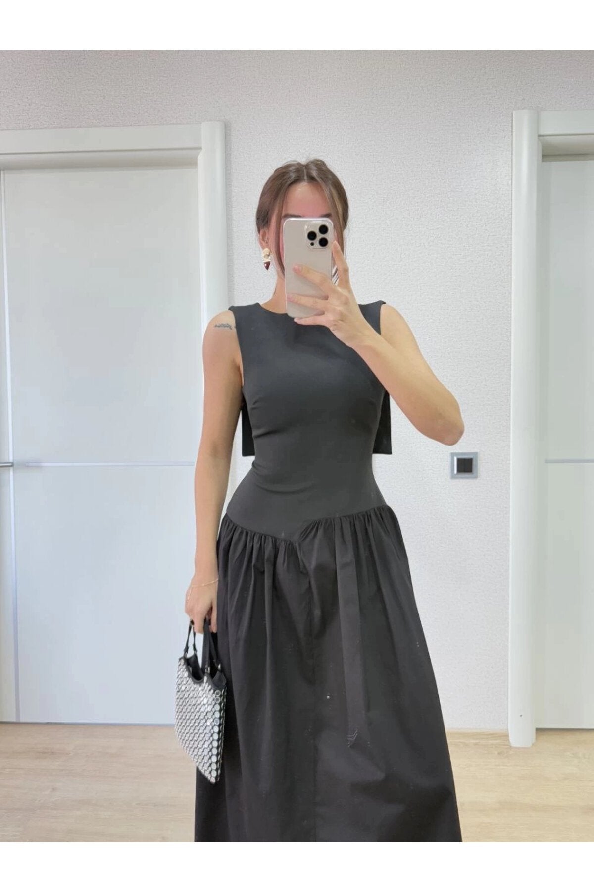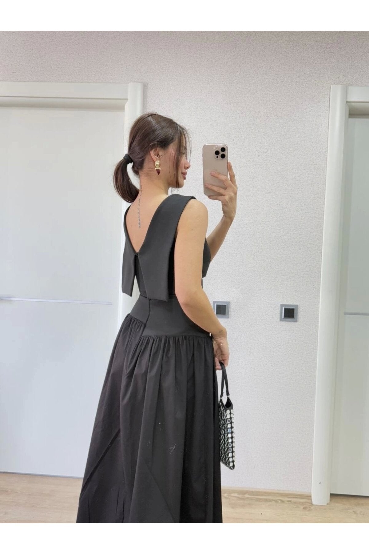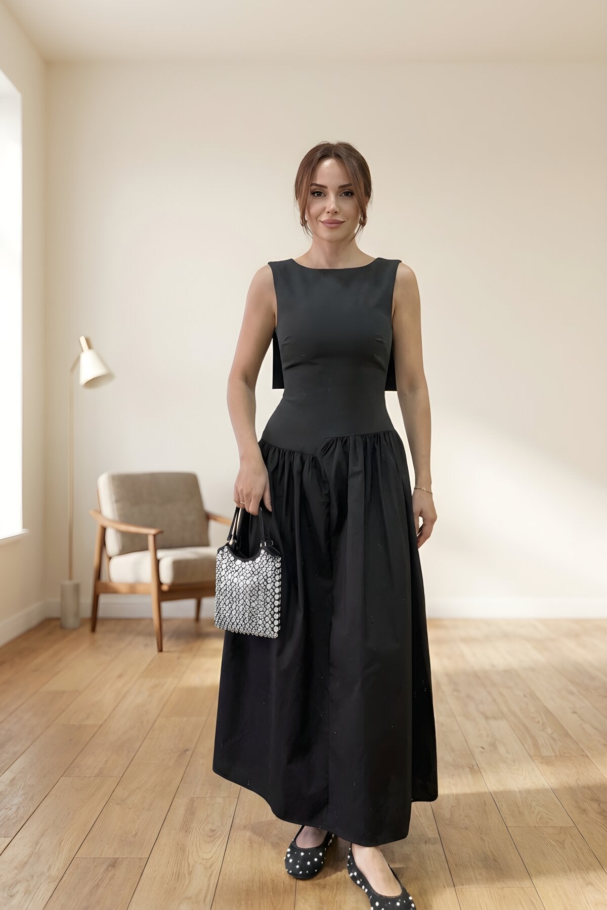 Long Back Wing Detail Dress - Black