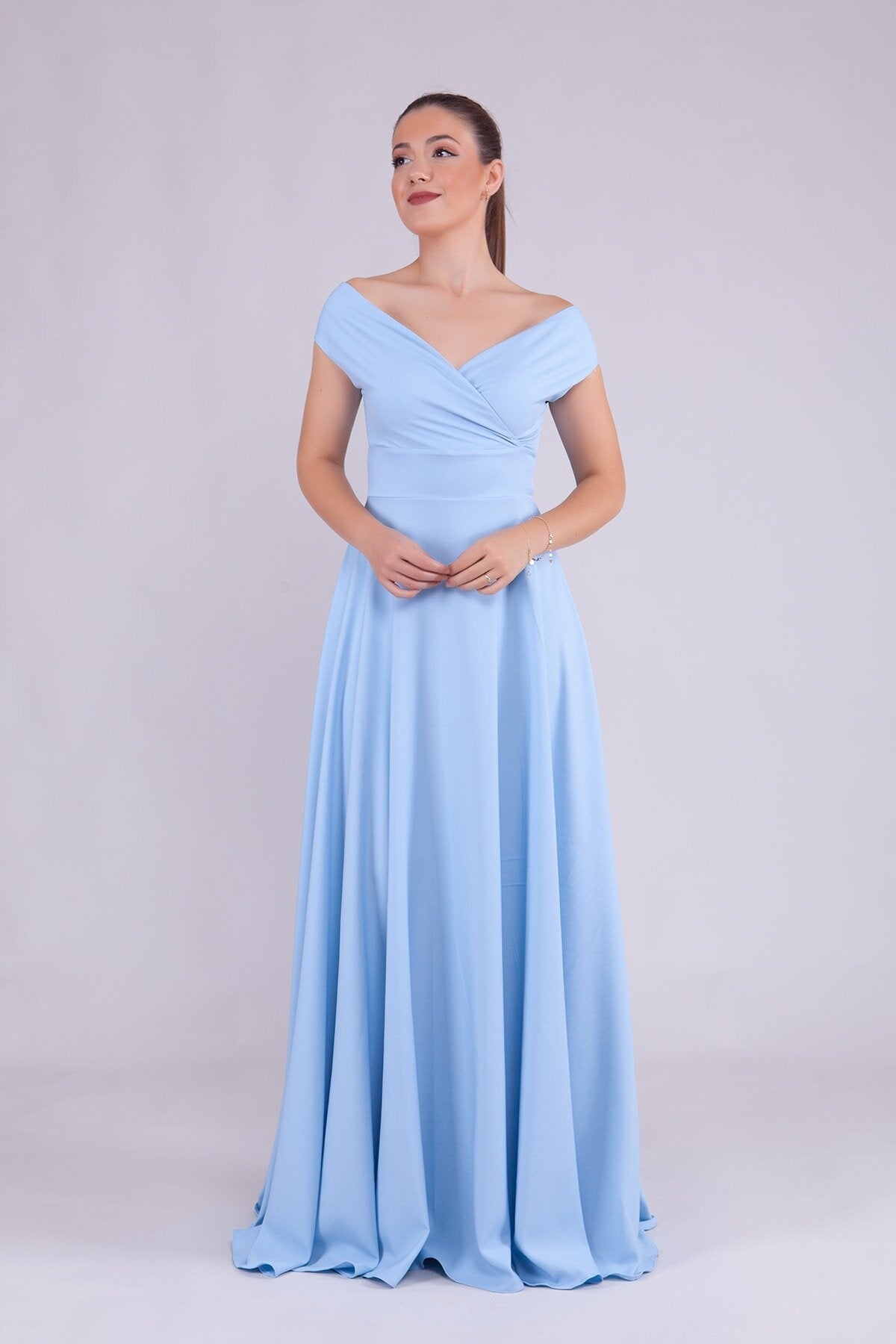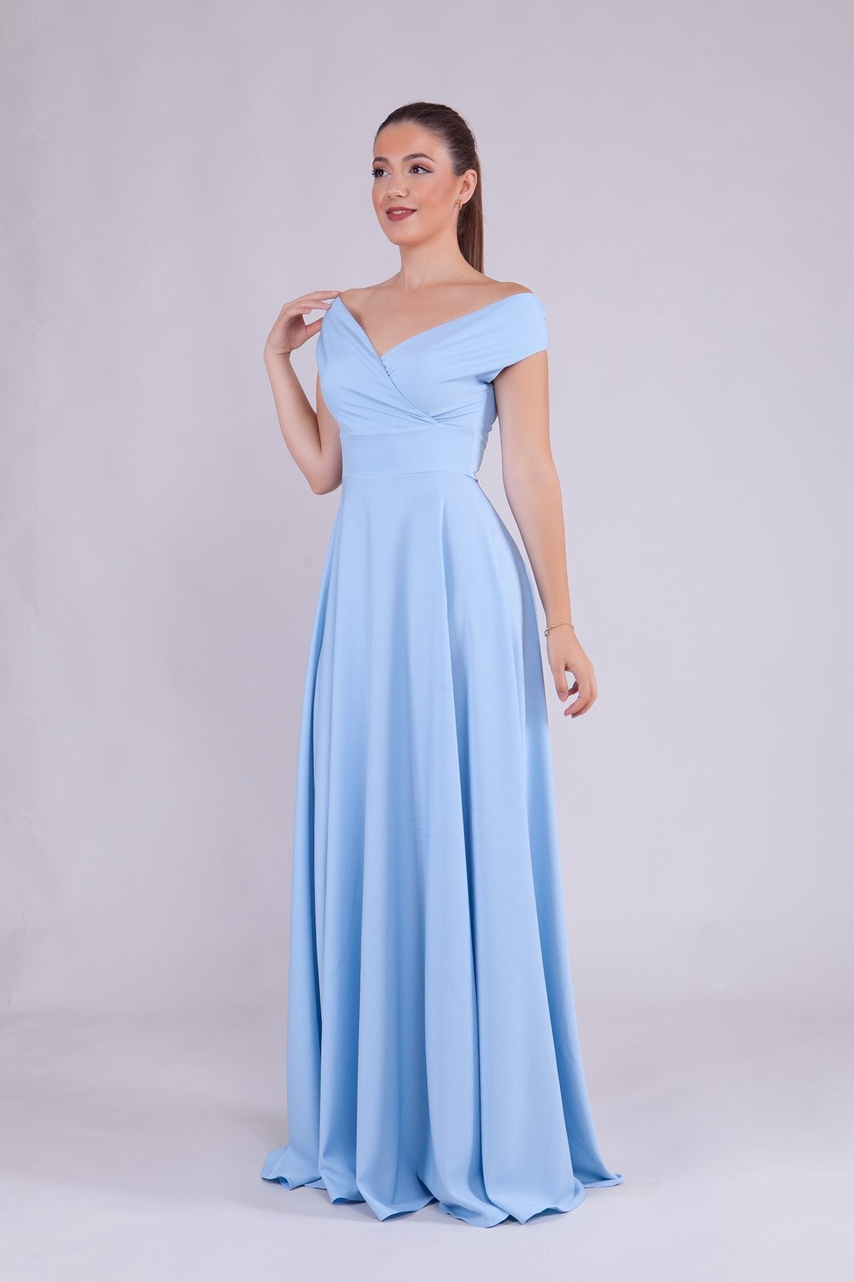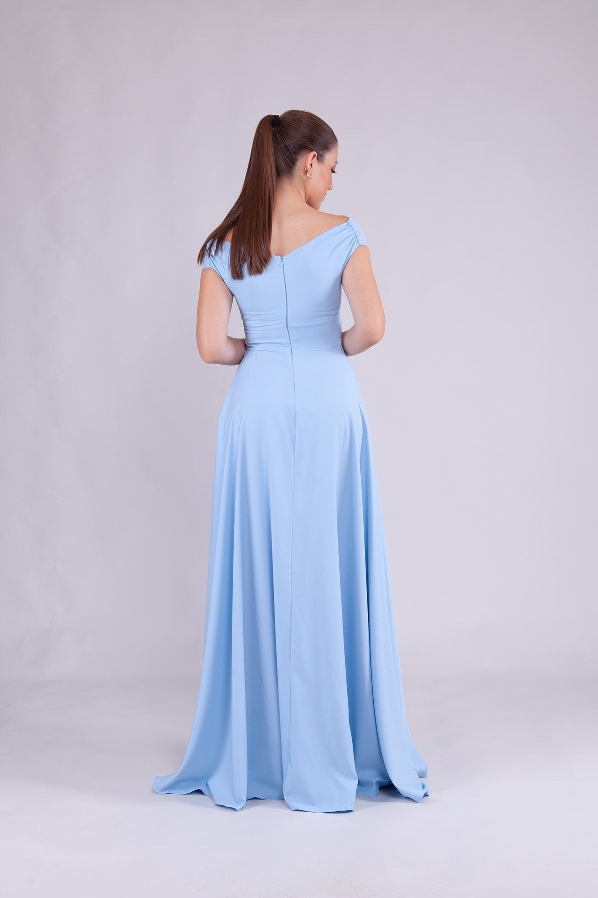 Long Boat Neck Evening Dress - Baby Blue