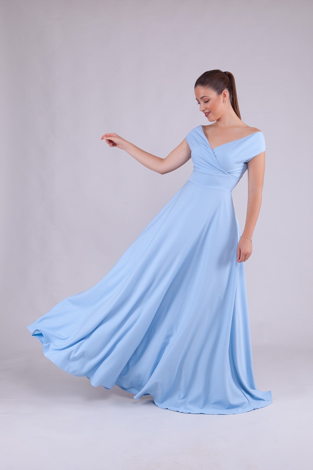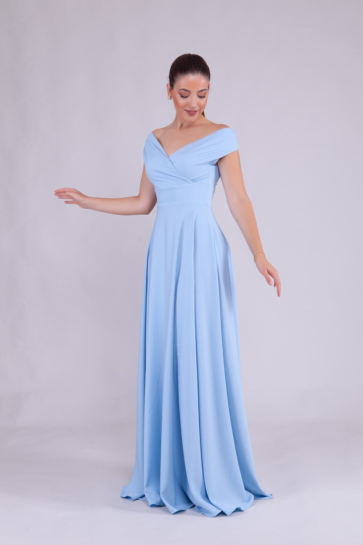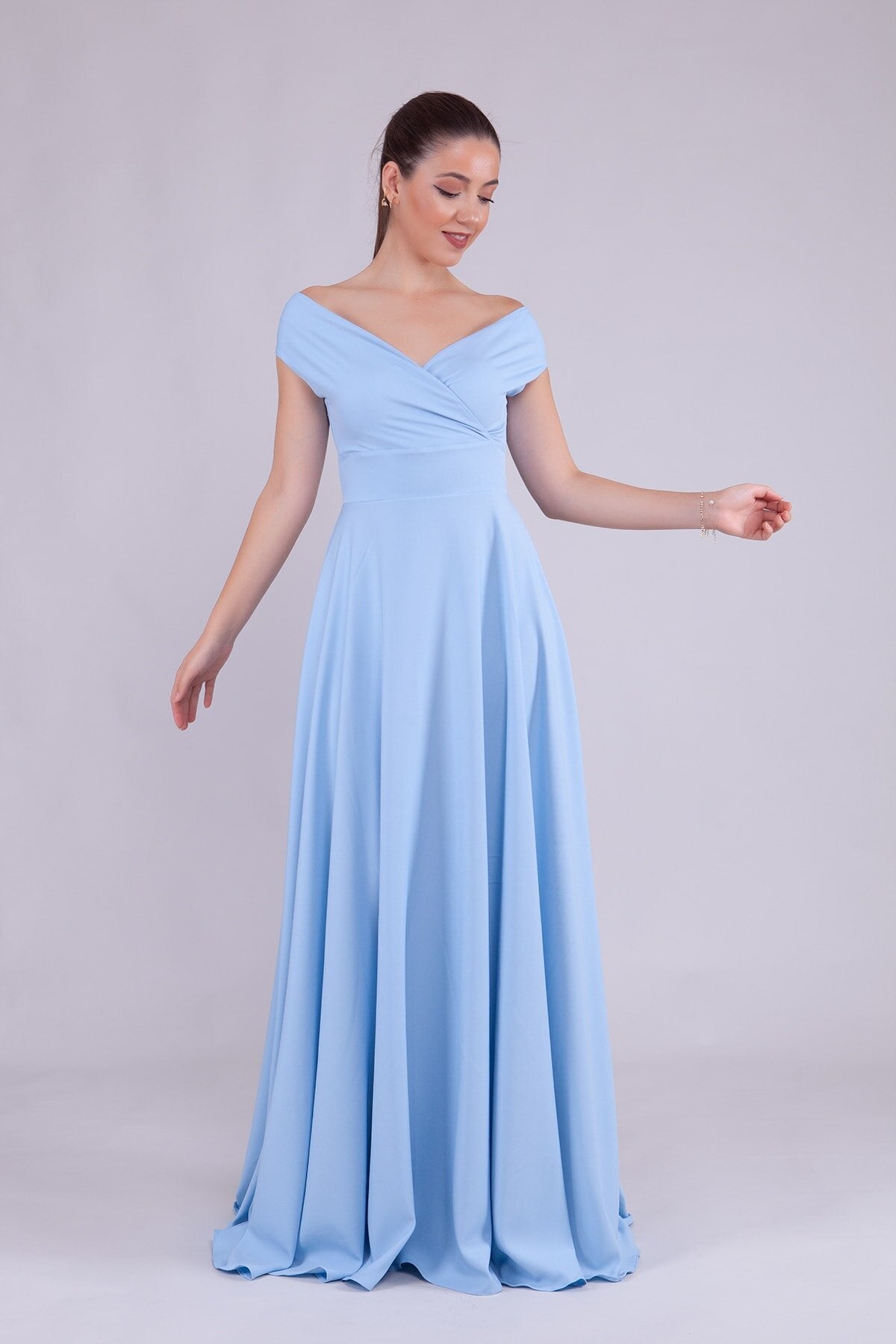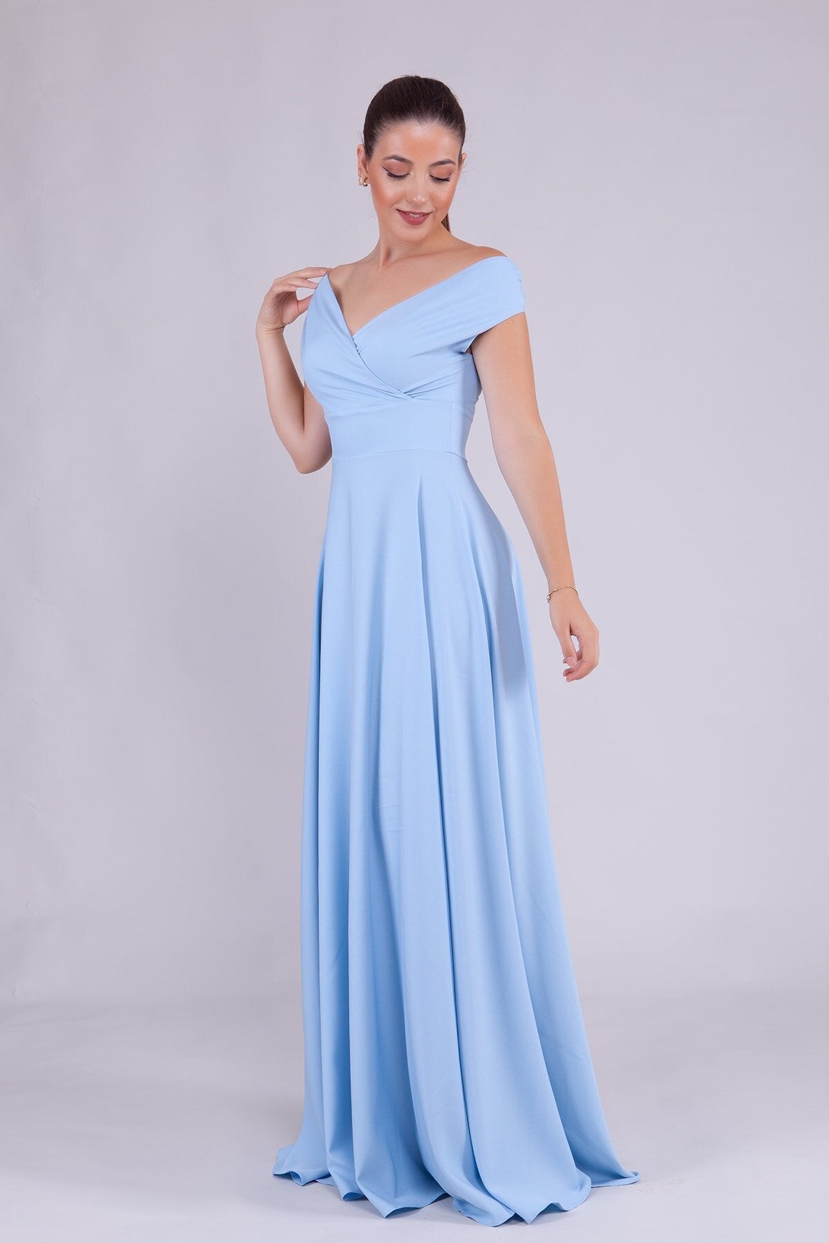 Long Boat Neck Evening Dress - Baby Blue