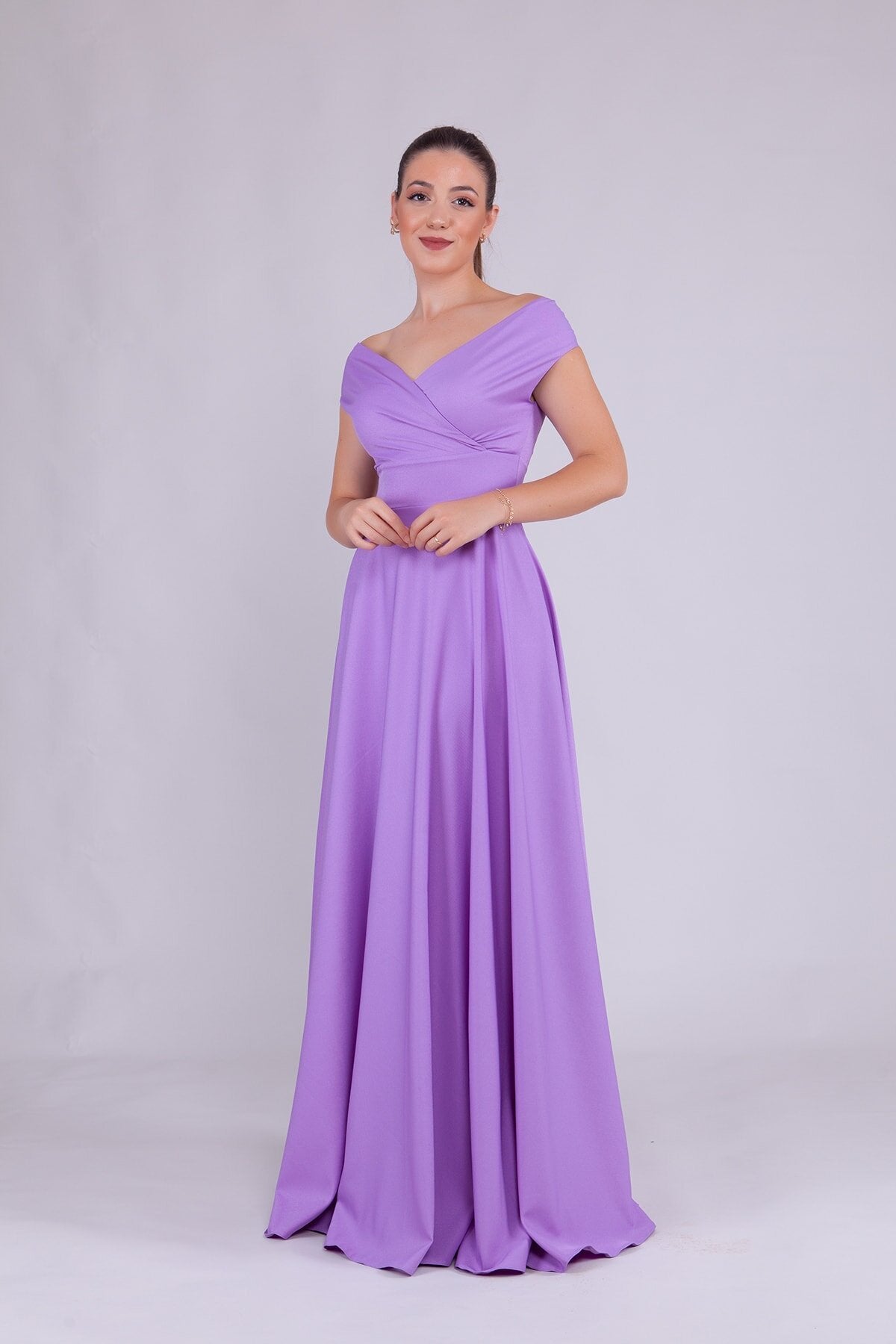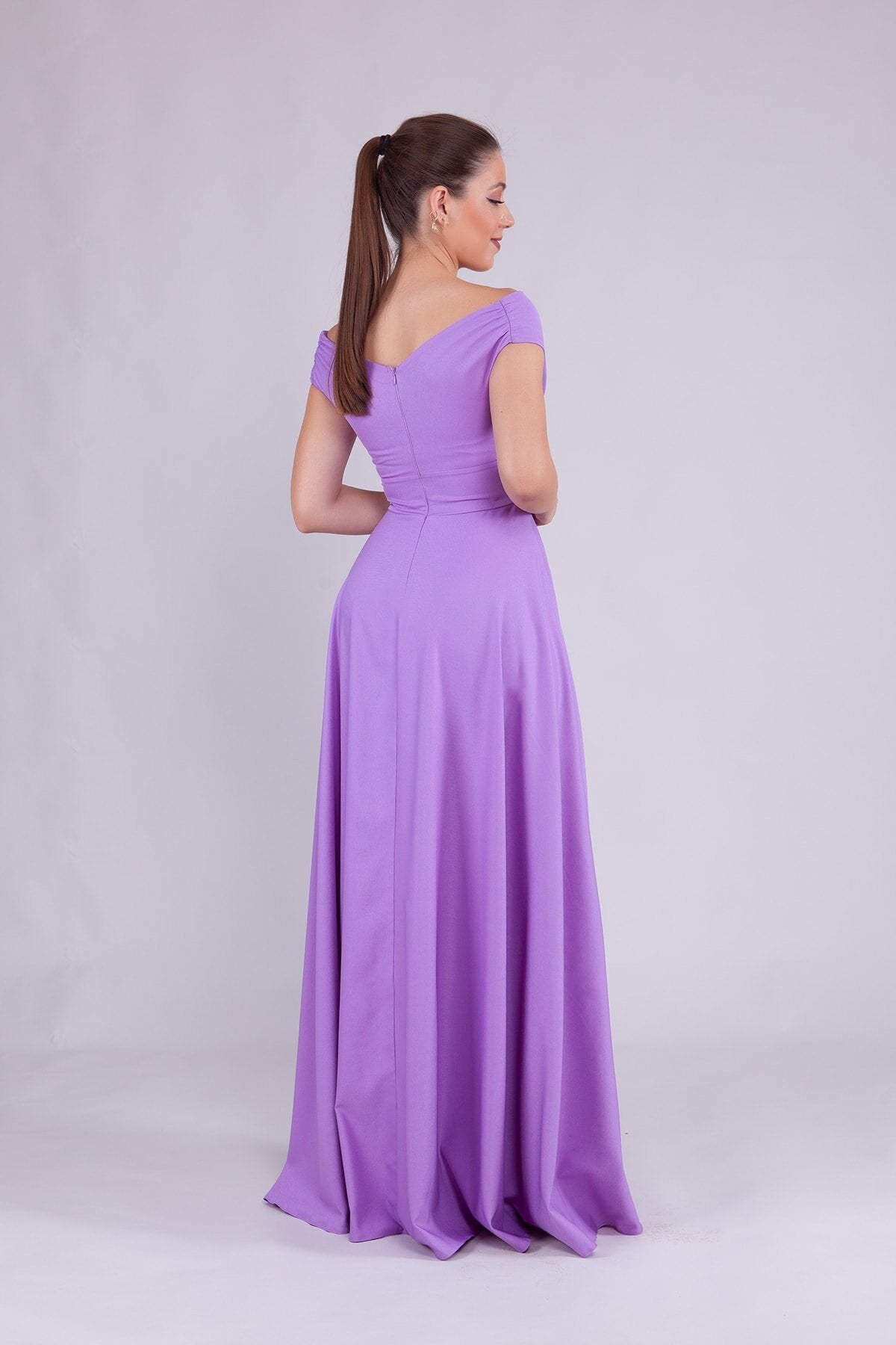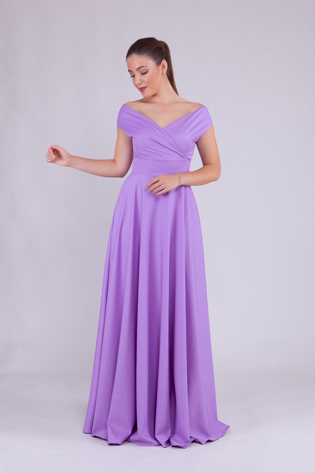 Long Boat Neck Evening Dress - Lilac
