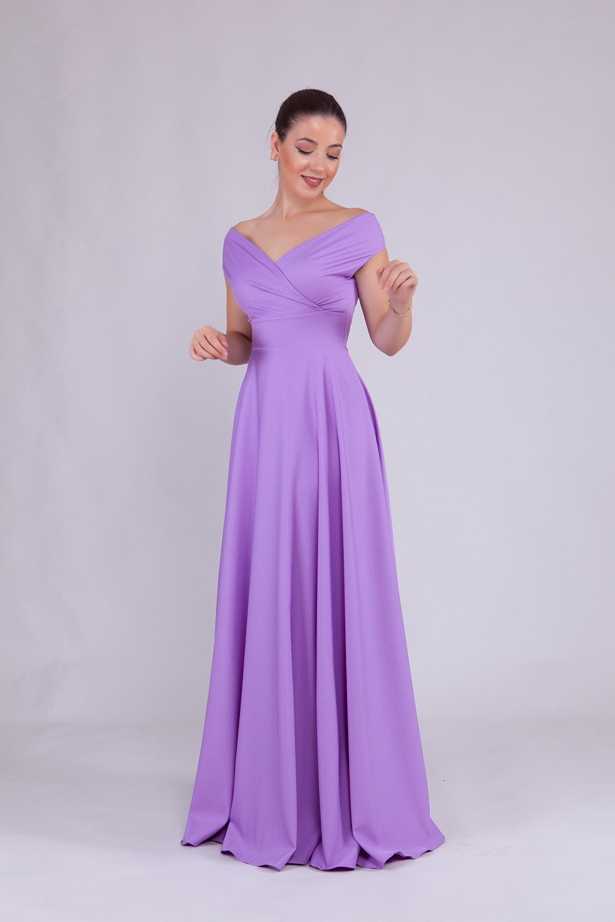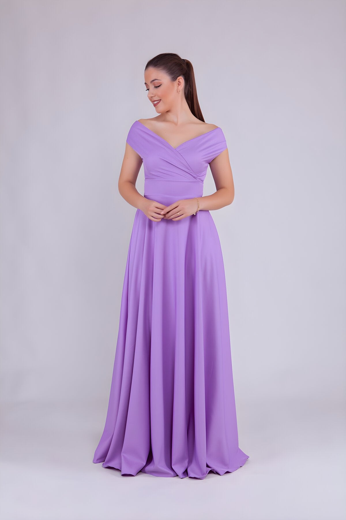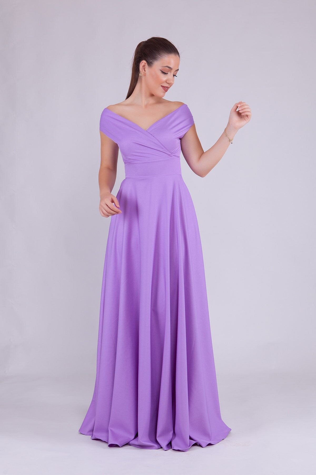 Long Boat Neck Evening Dress - Lilac