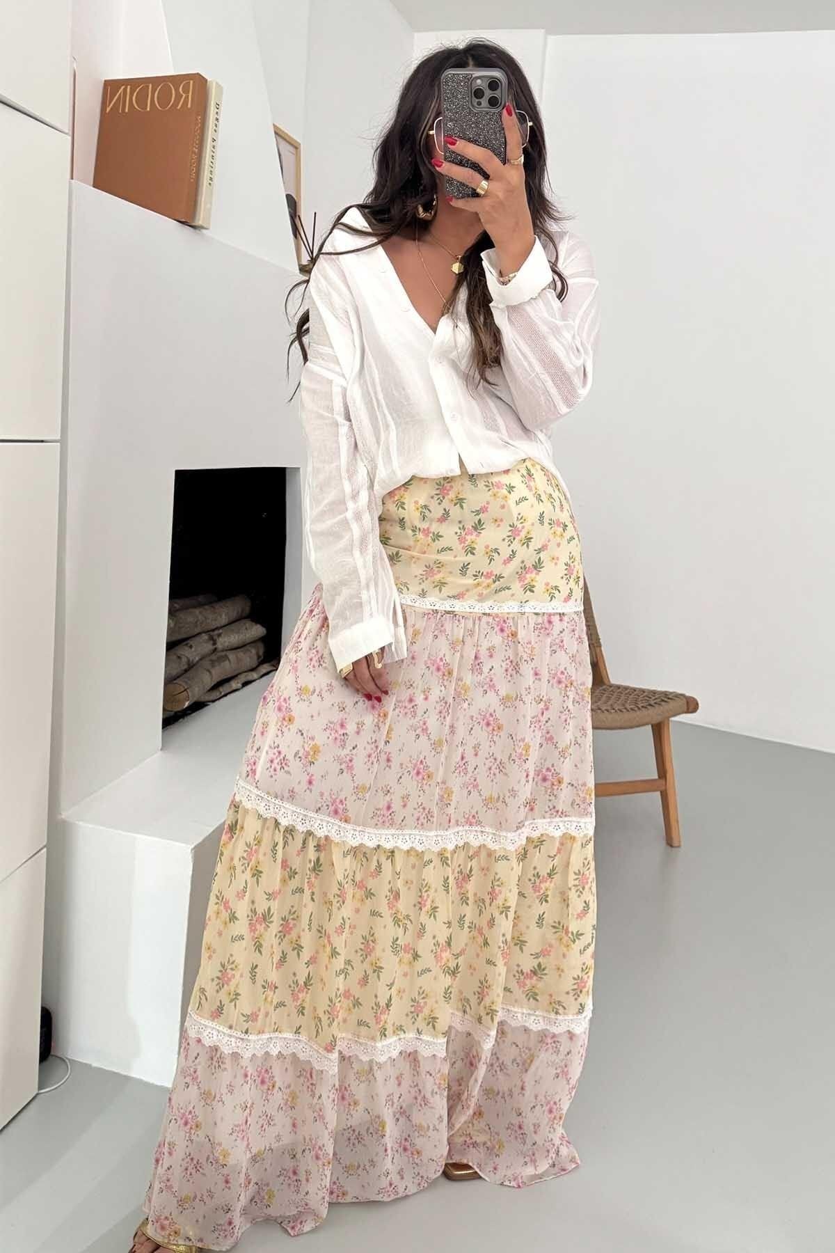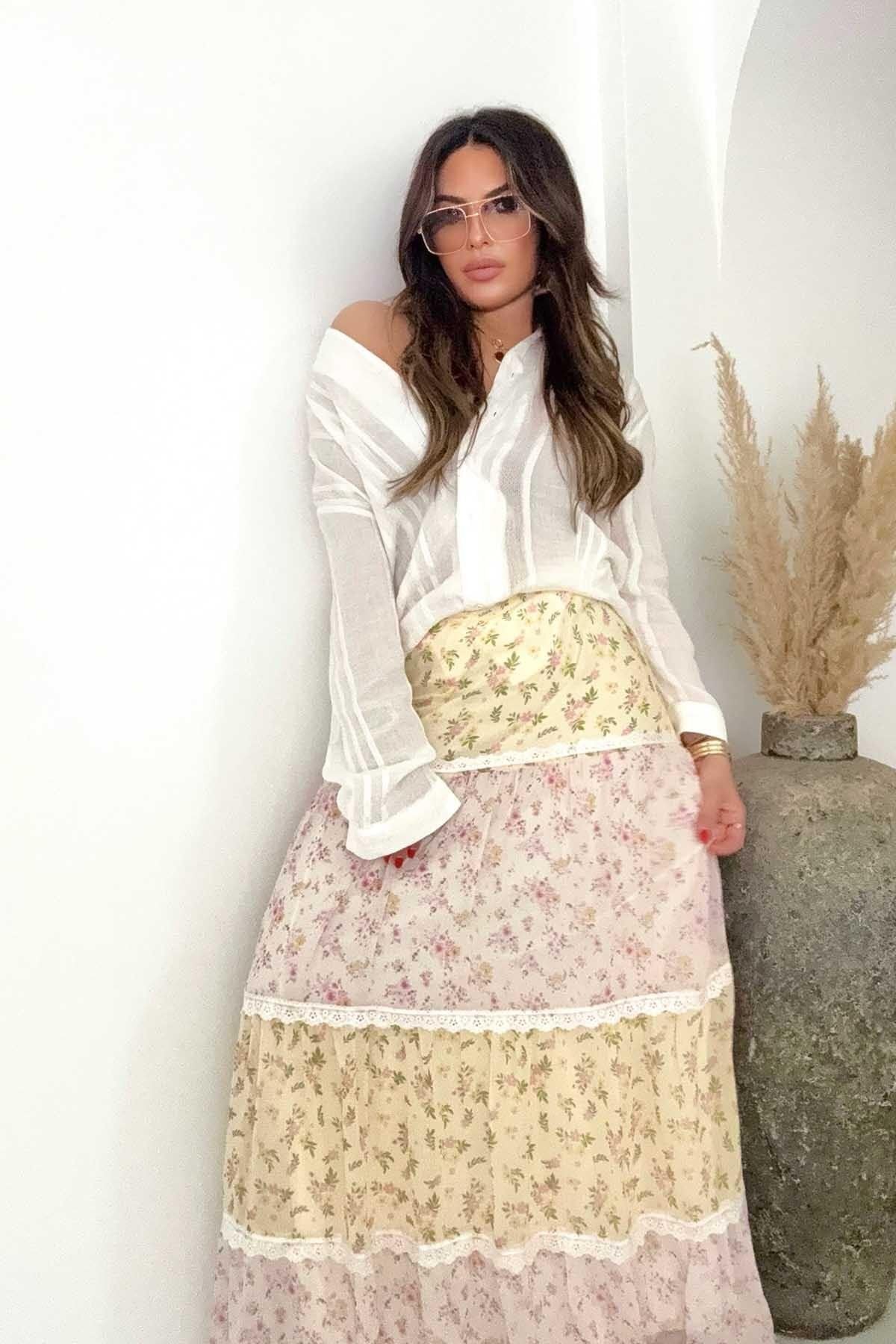 Long Colorful Floral Lace Embroidered Skirt