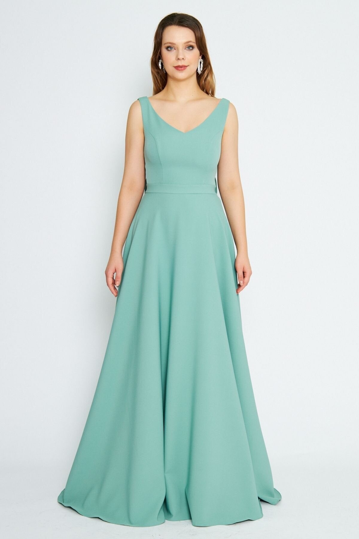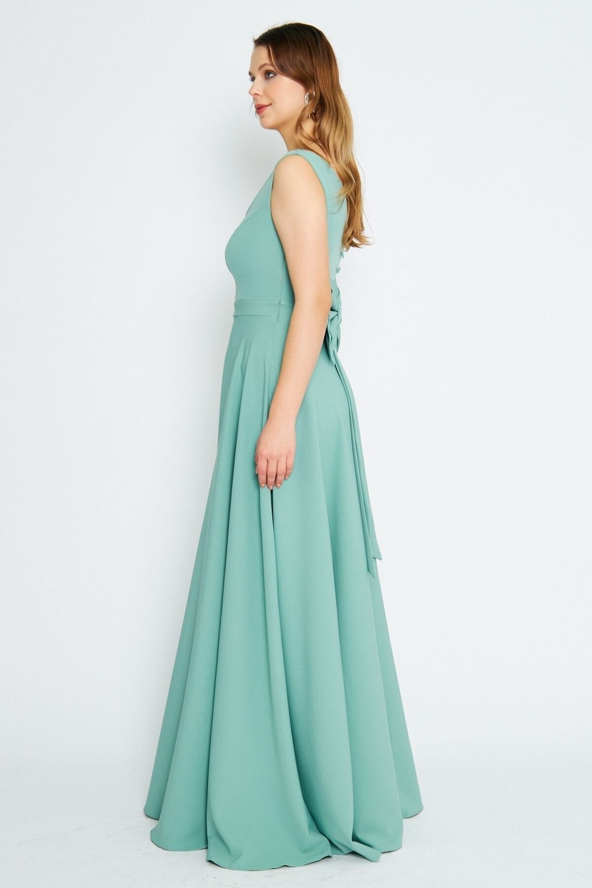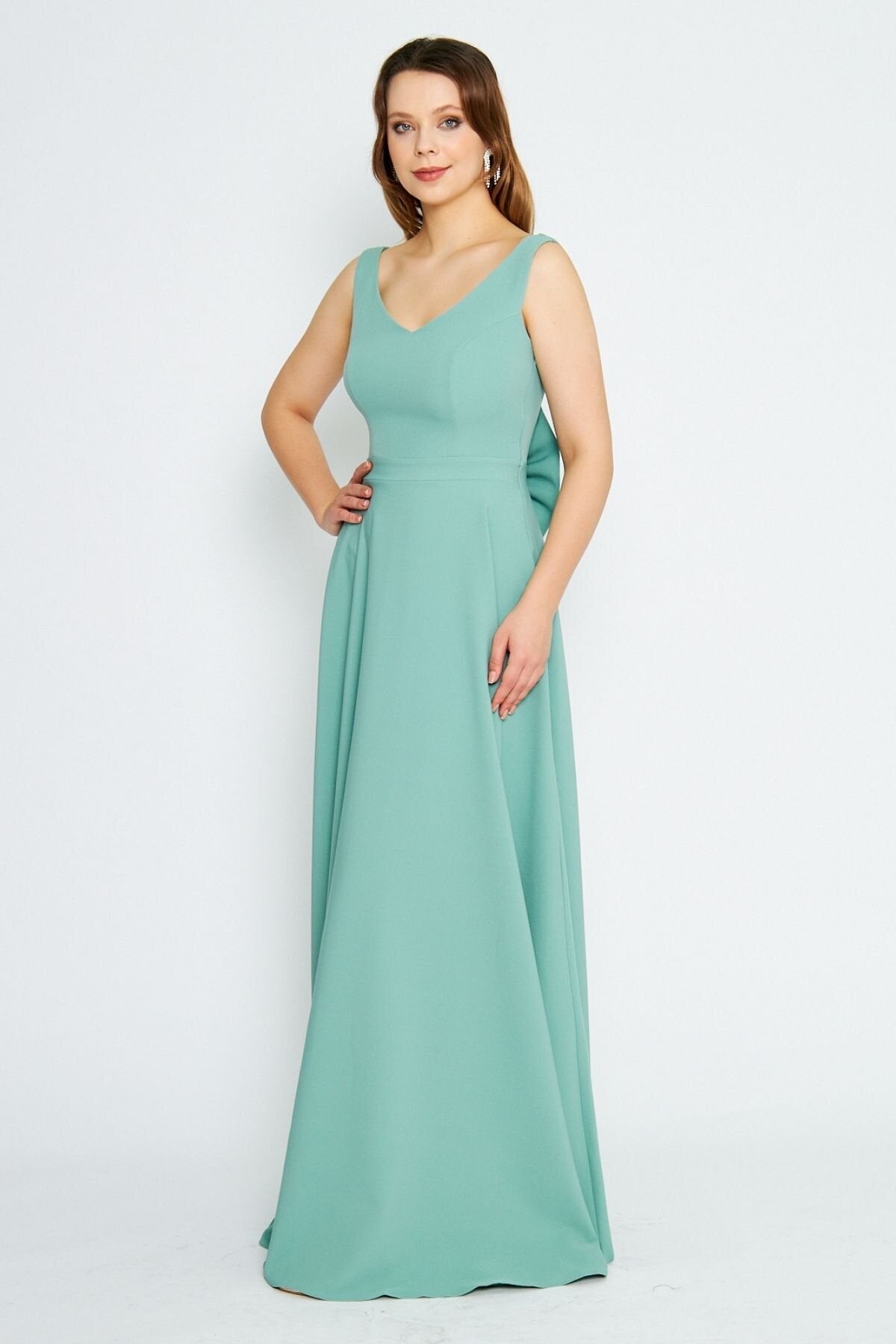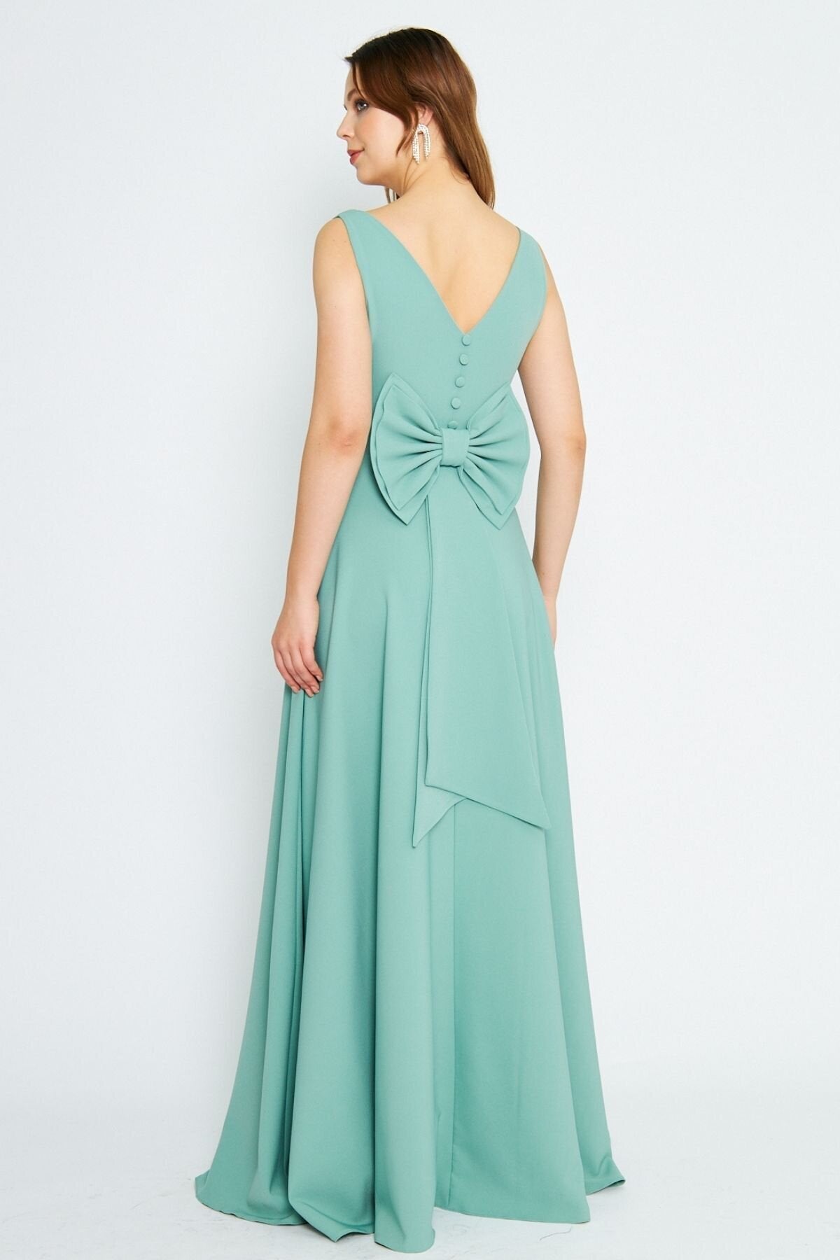 Long Flared Back Bow Evening Dress - Mint Green