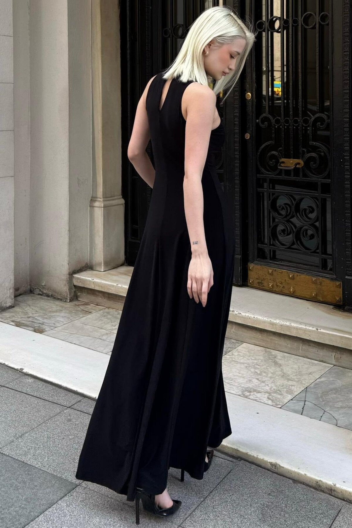 Long Flowy High Neck Dress - Black