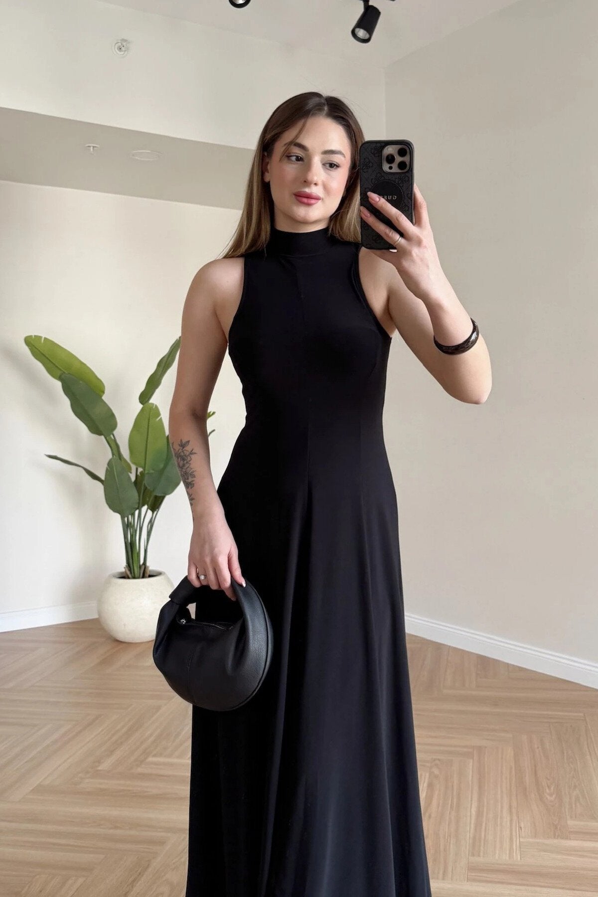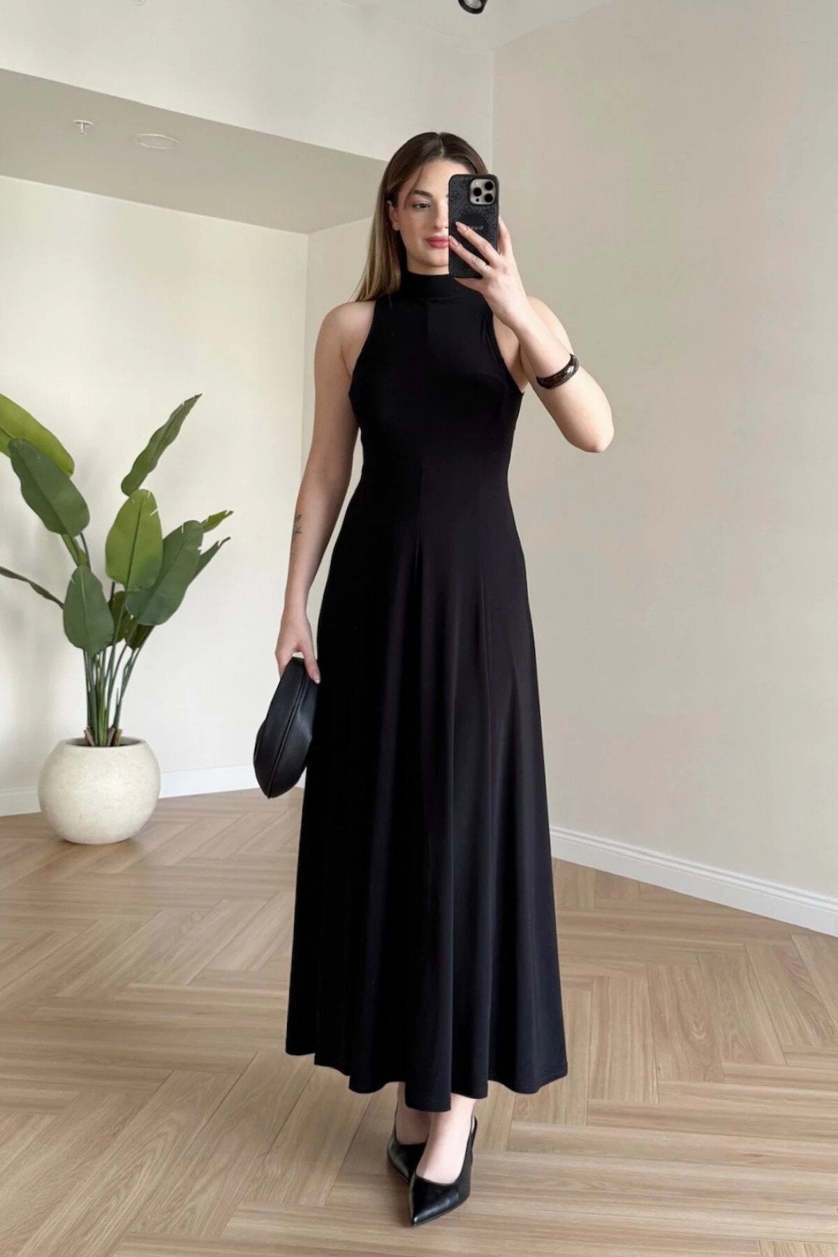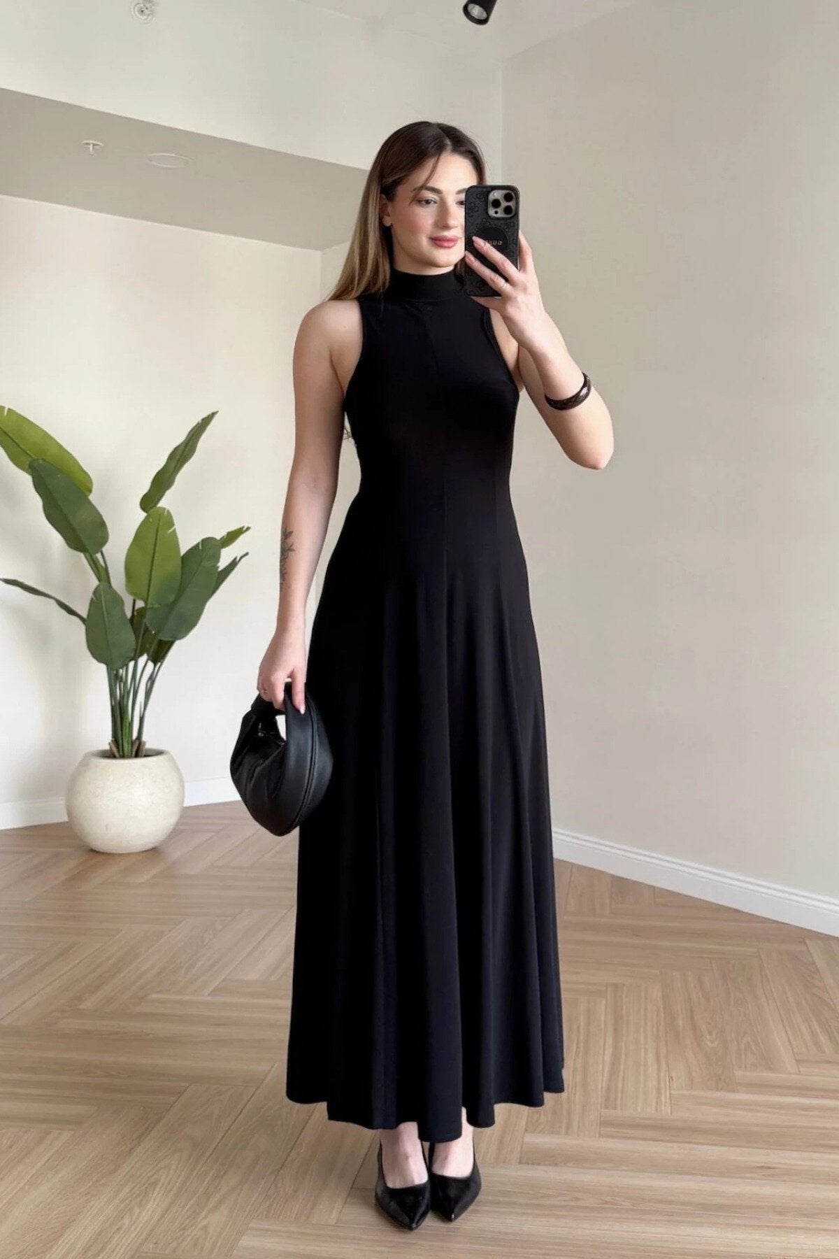 - Evening Cocktails & Formal Events: Pair this high-neck sleeveless dress with pointed-toe heels and a sleek clutch for a high-fashion, sophisticated vibe that stands out in any crowd.
