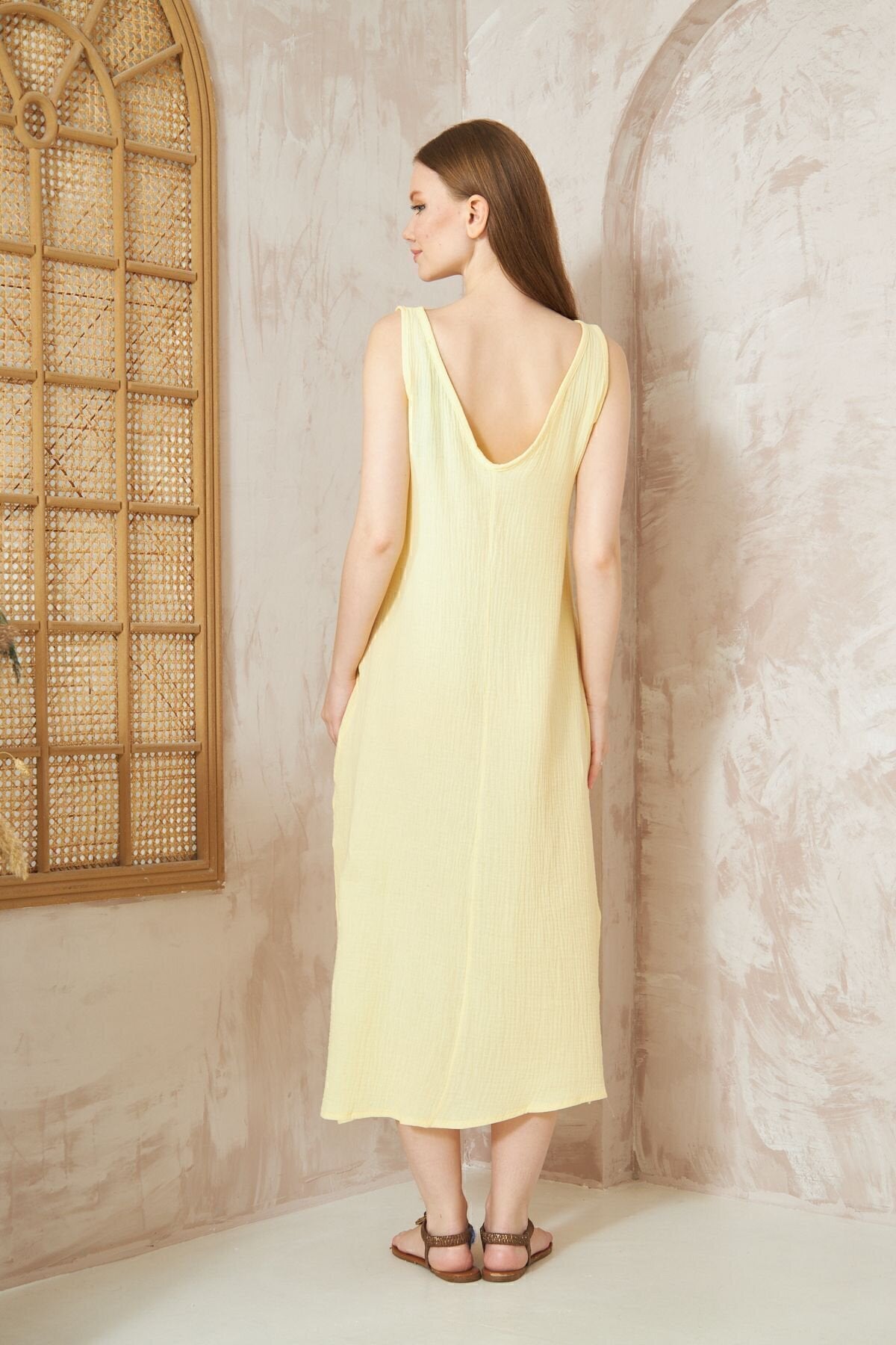 Long Oversize Muslin Strappy Slit Dress - Yellow