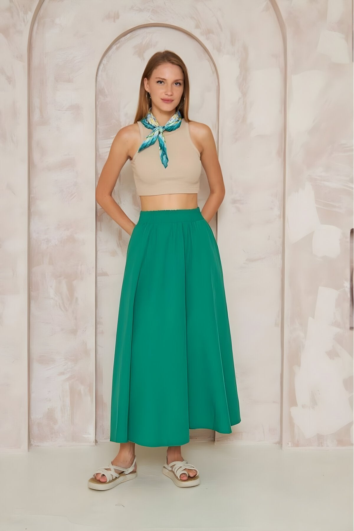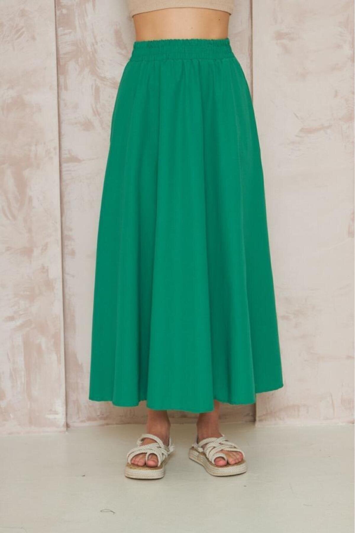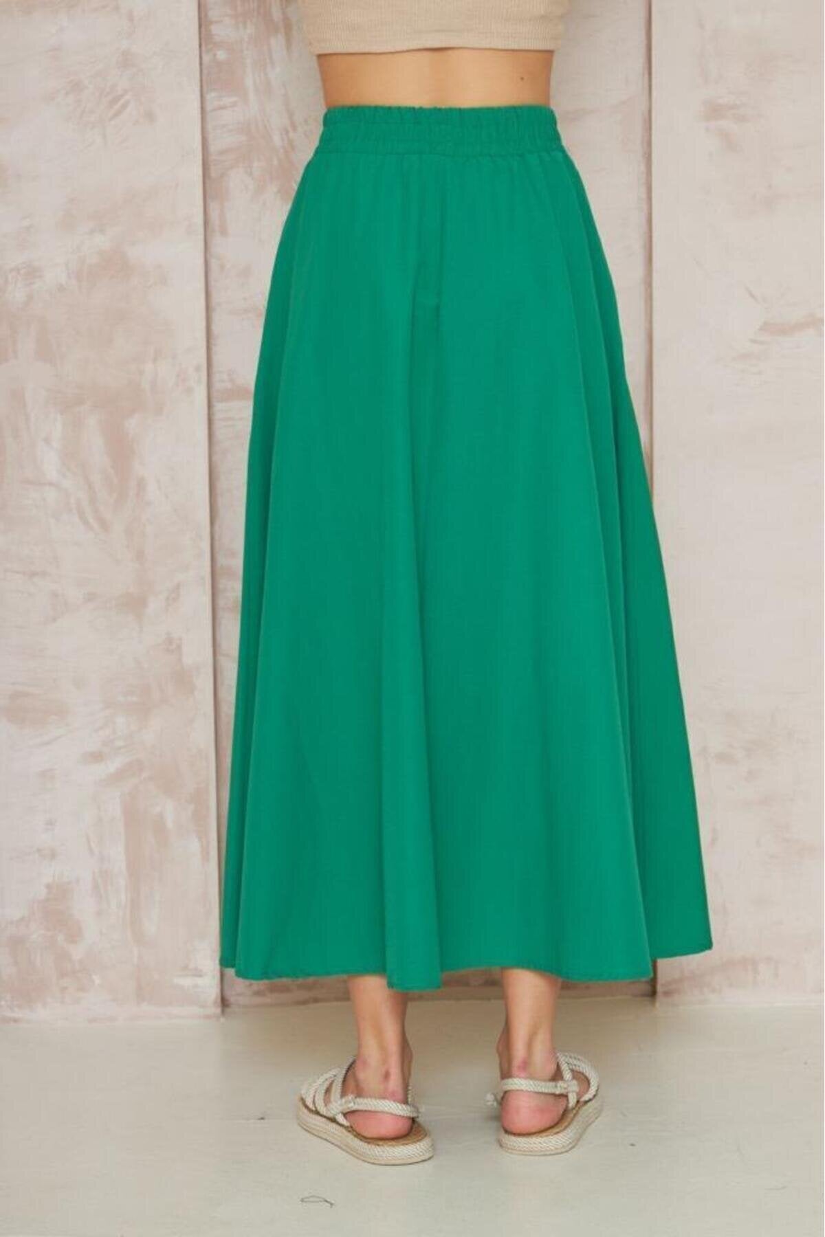 Long Relaxed Flowy Poplin Flared Bohemian Skirt - Green