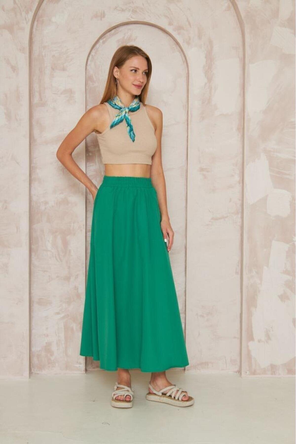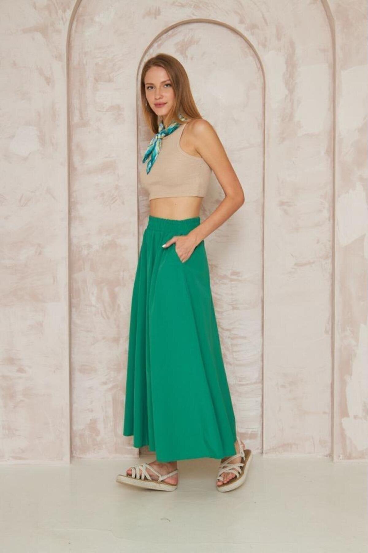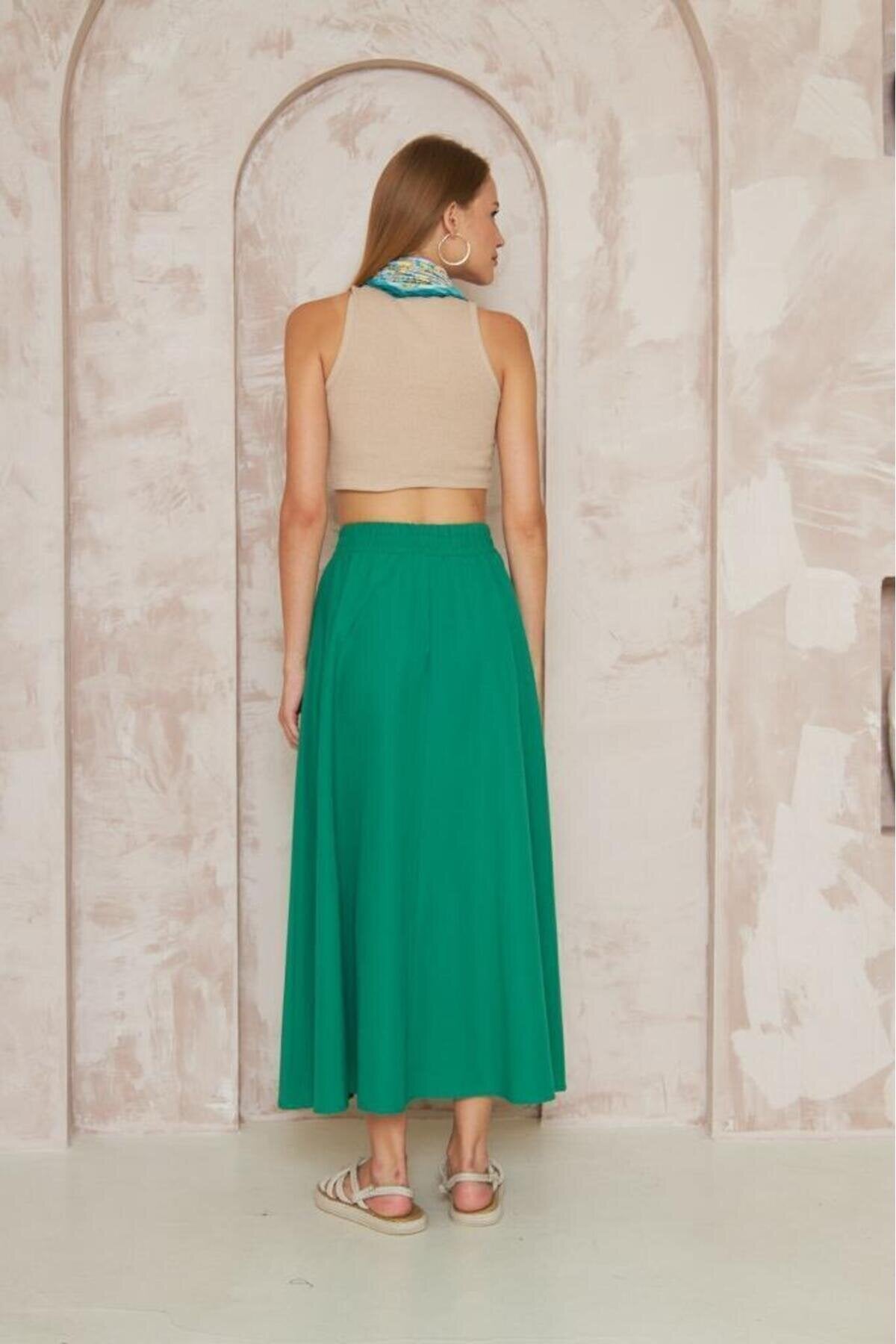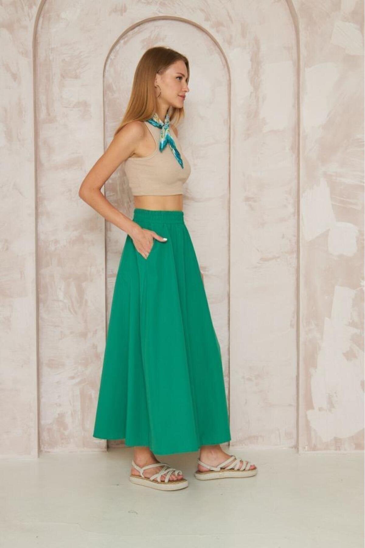 Long Relaxed Flowy Poplin Flared Bohemian Skirt - Green