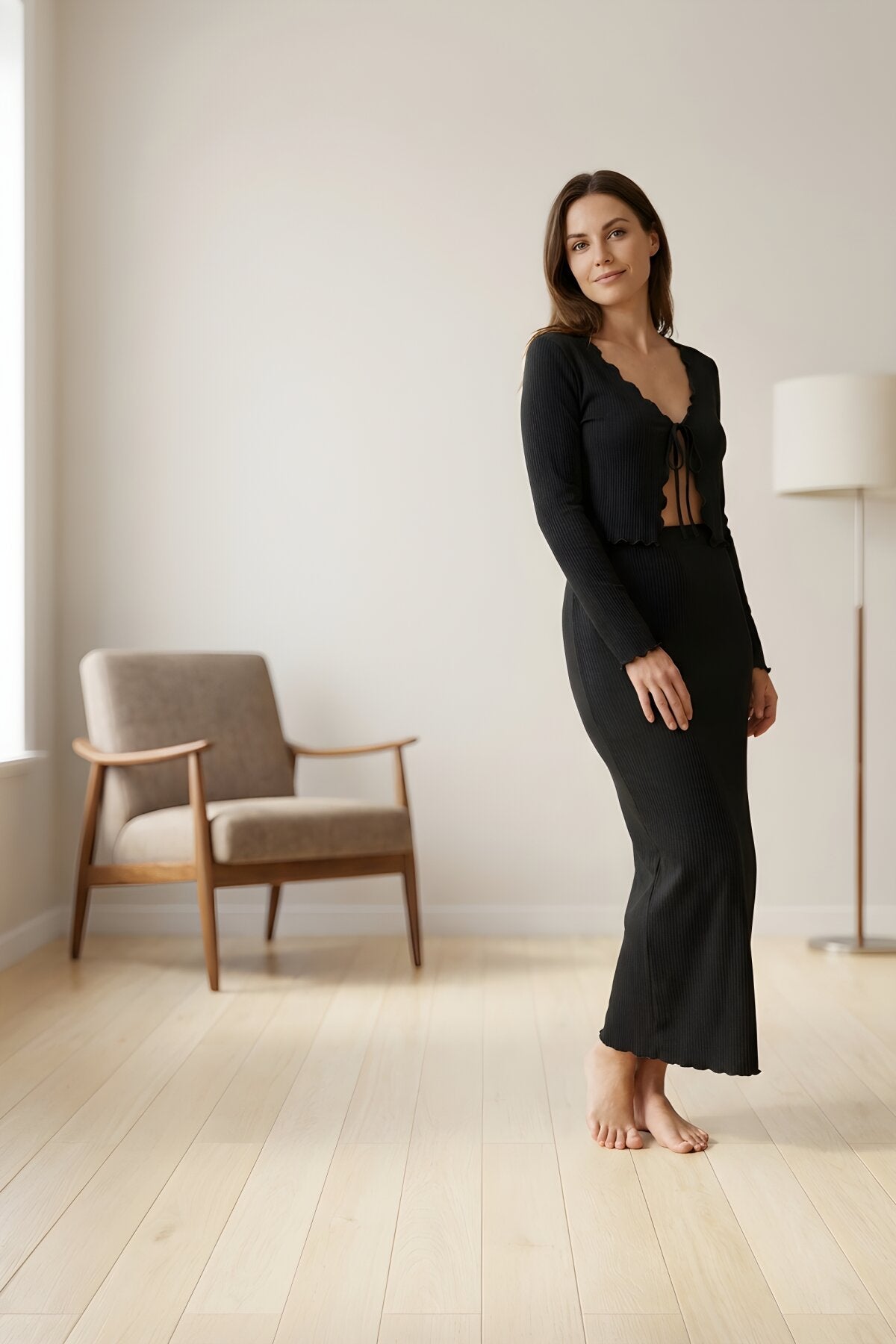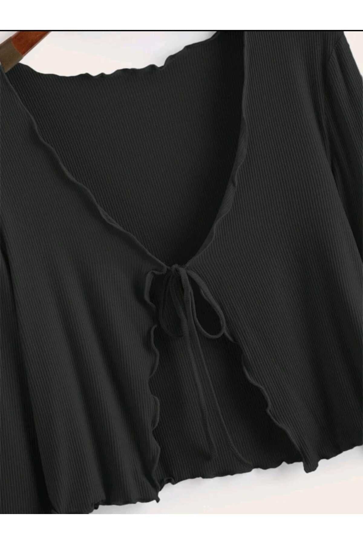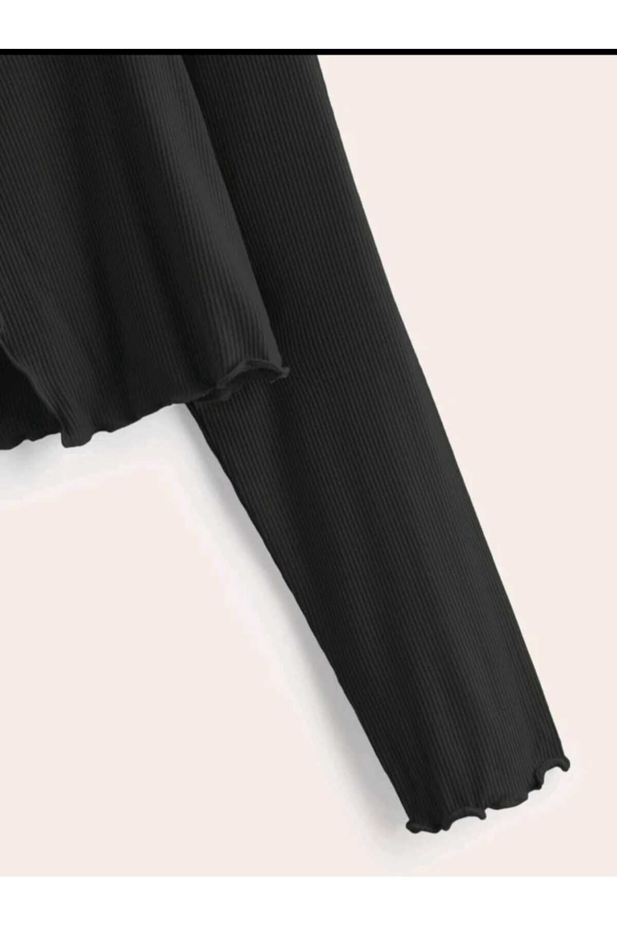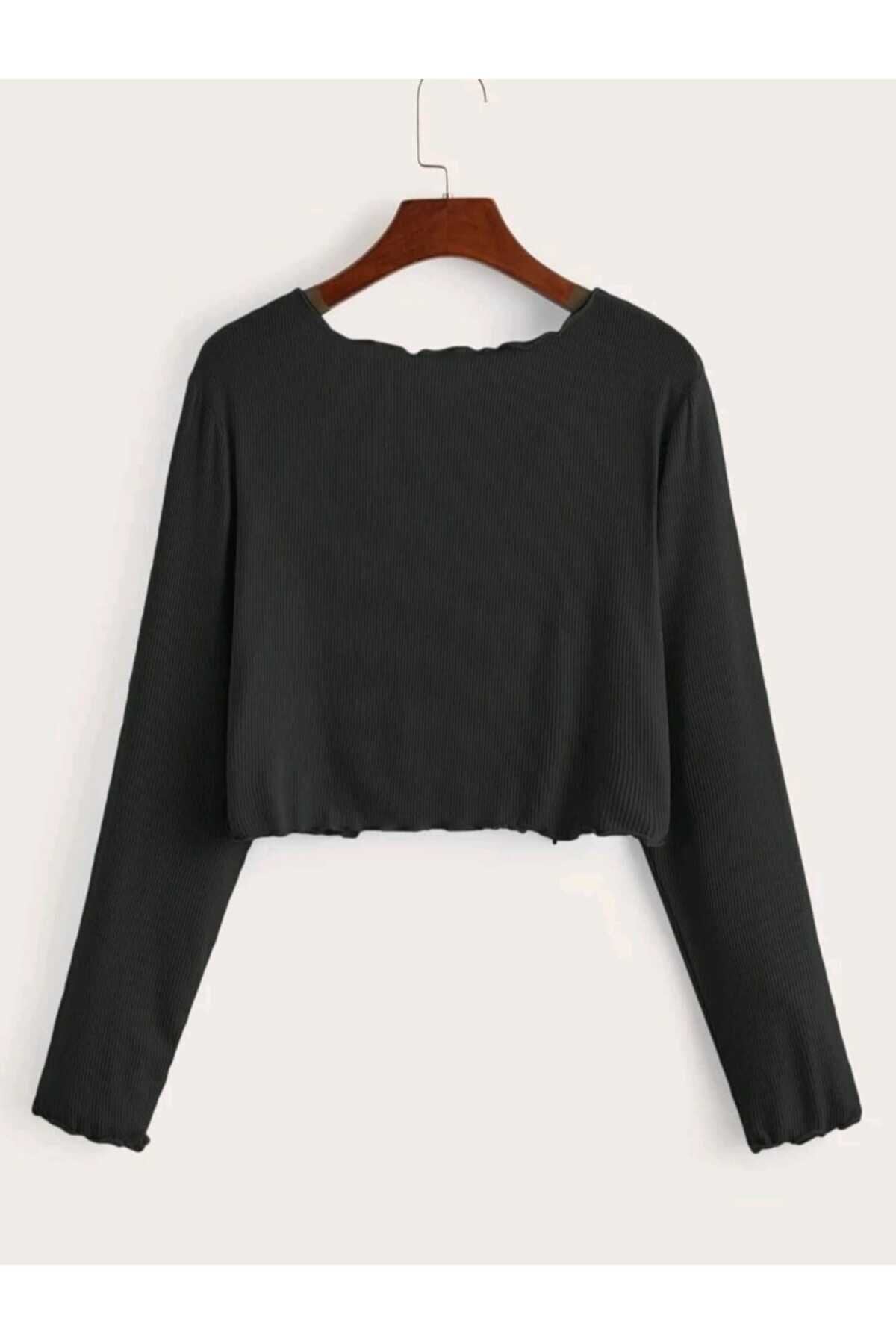 Long Sleeve Ribbed Pintuck Stitched Blouse - Black