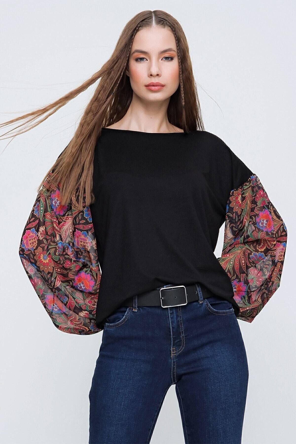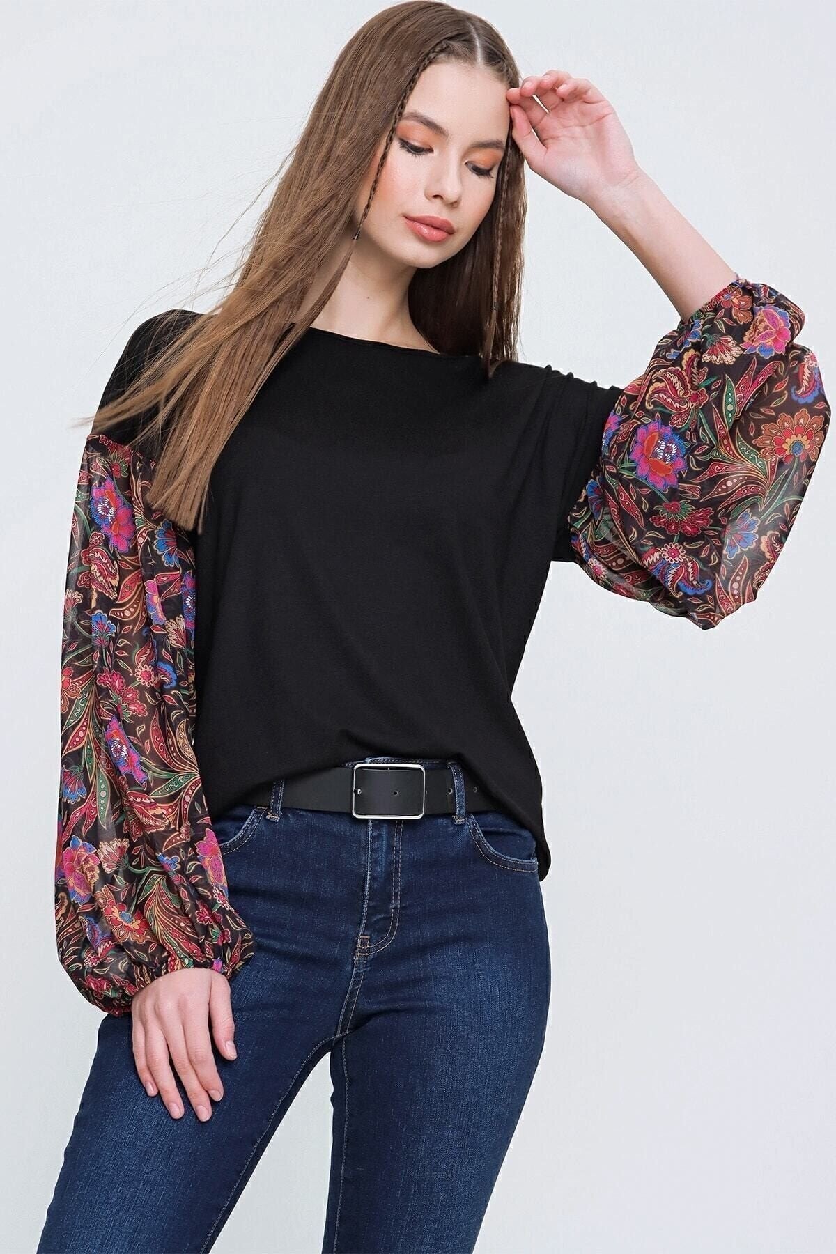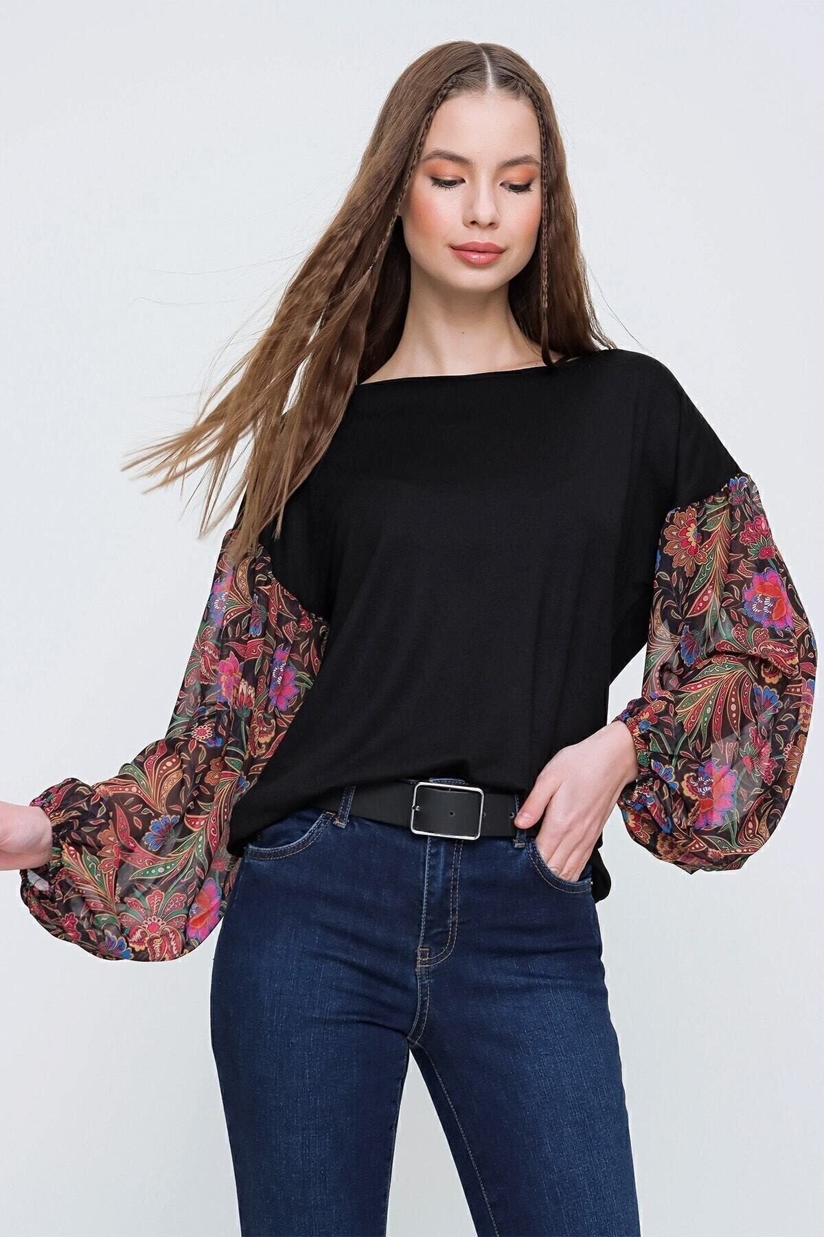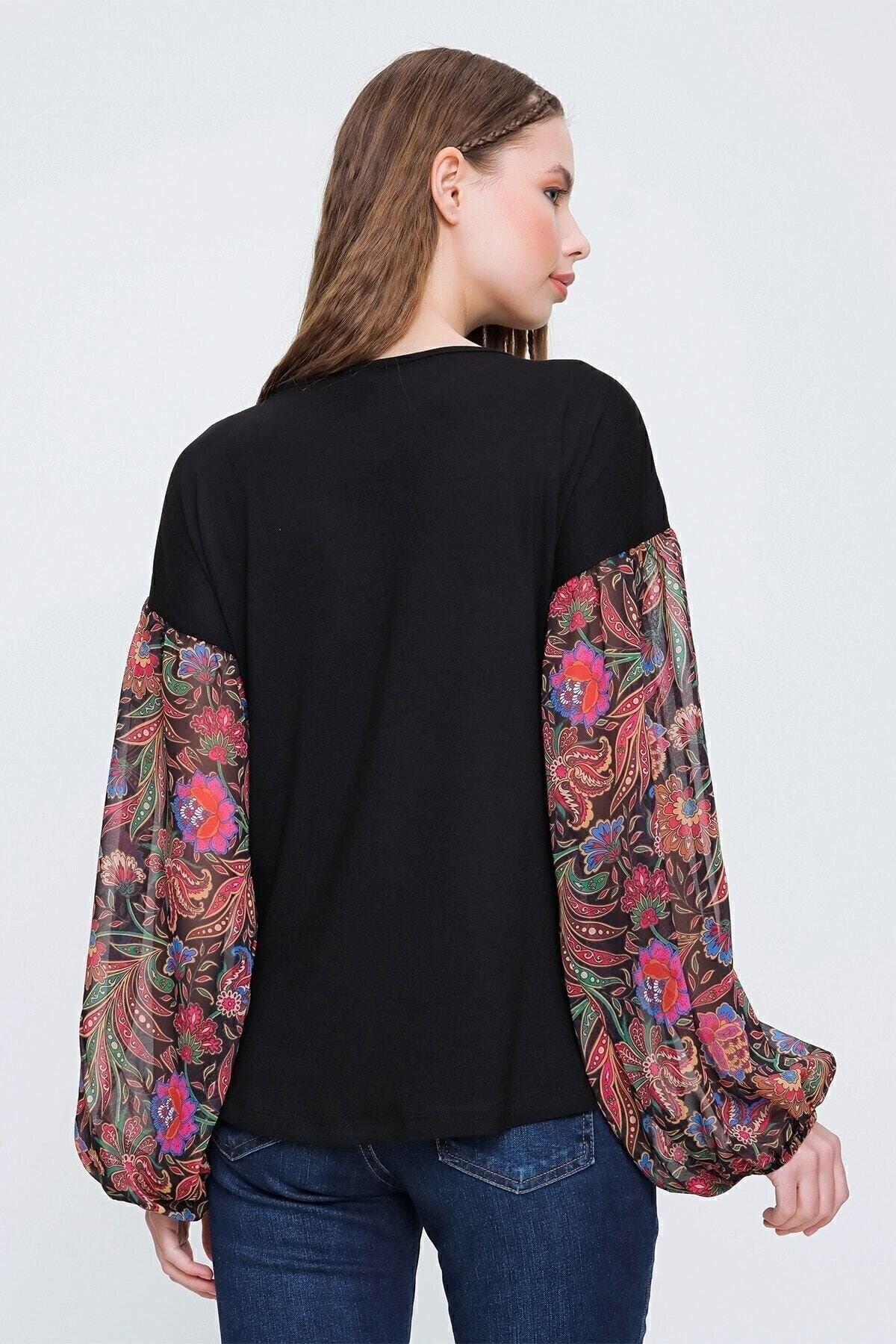 Long Sleeve Sheer Chiffon Blouse - Black