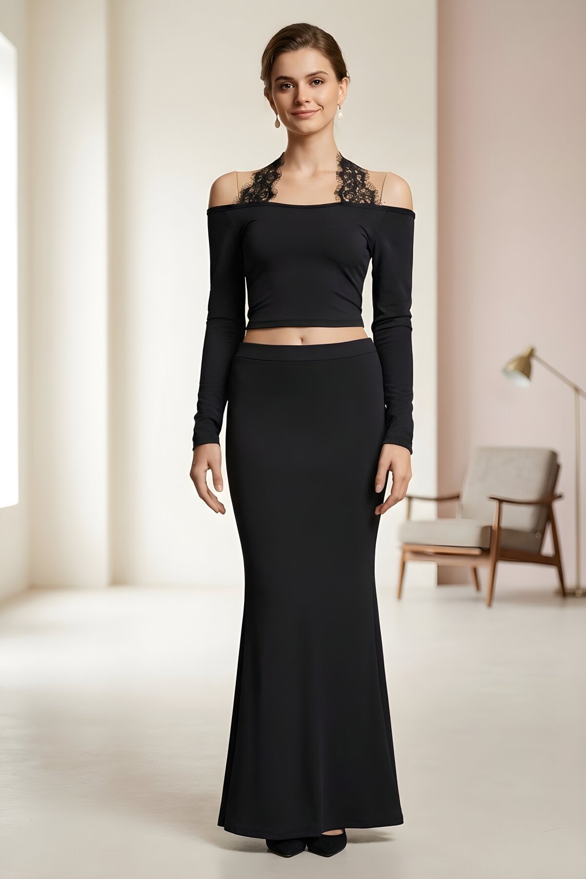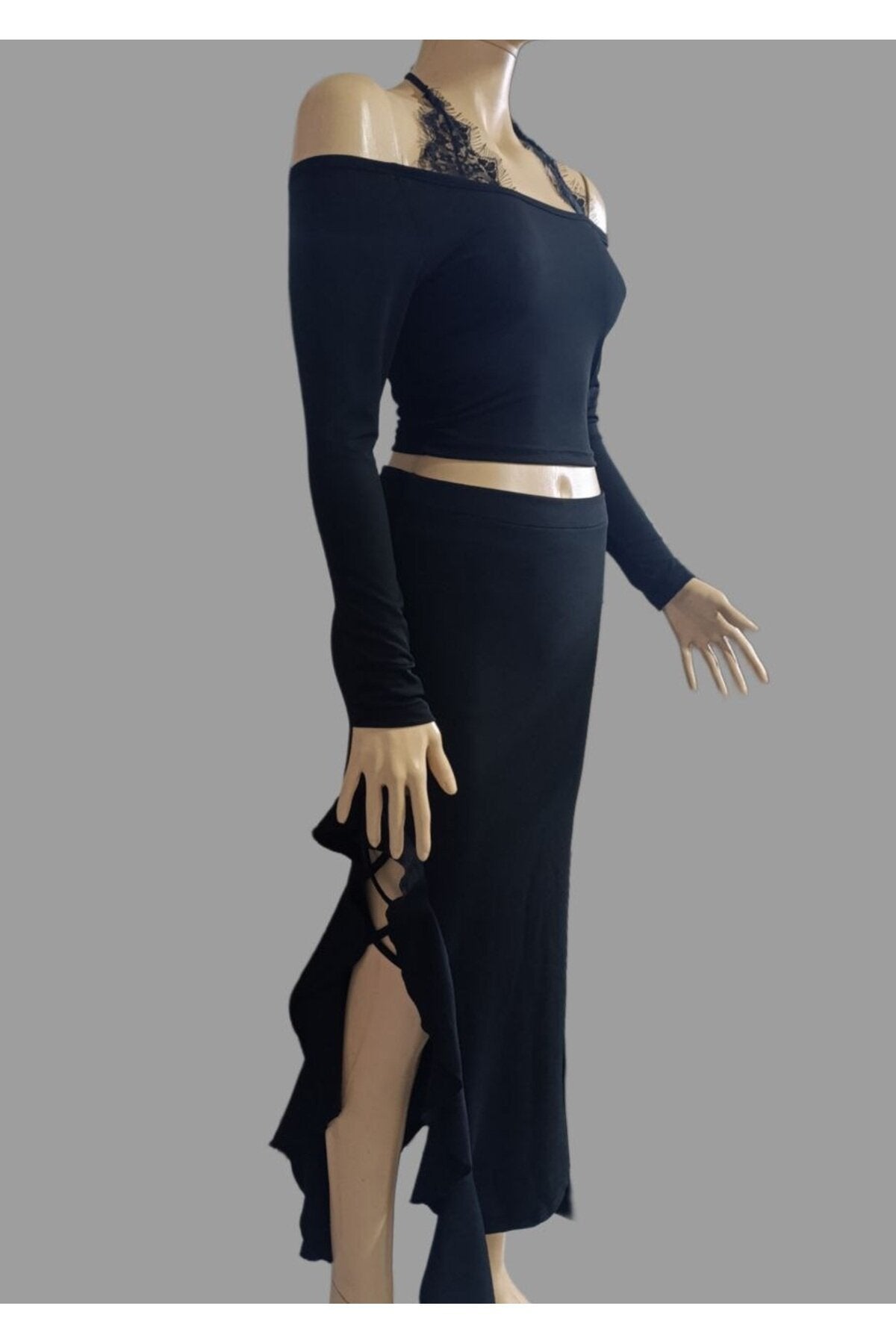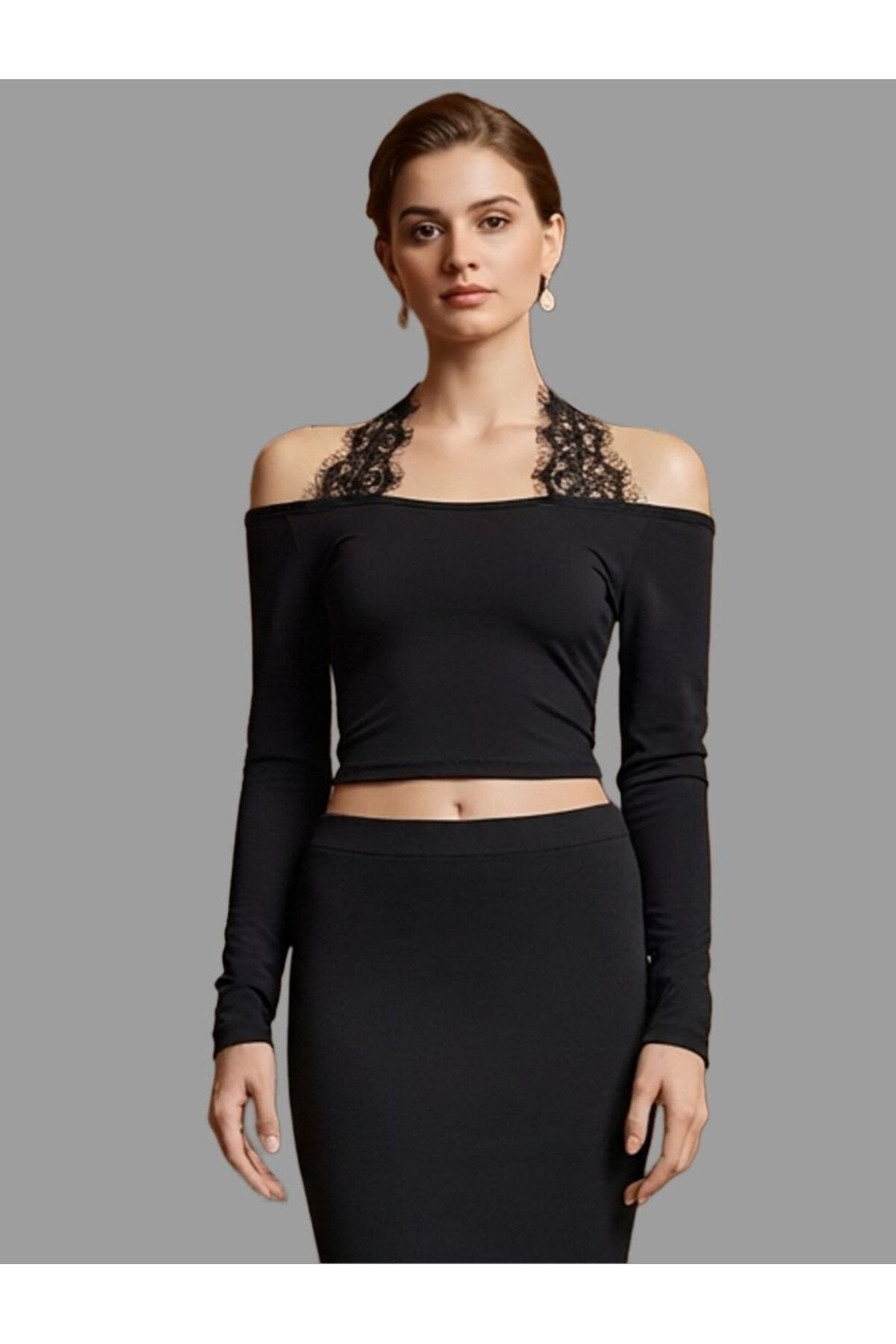 Long-Sleeved Gothic Lace Tie-Detail Blouse - Black