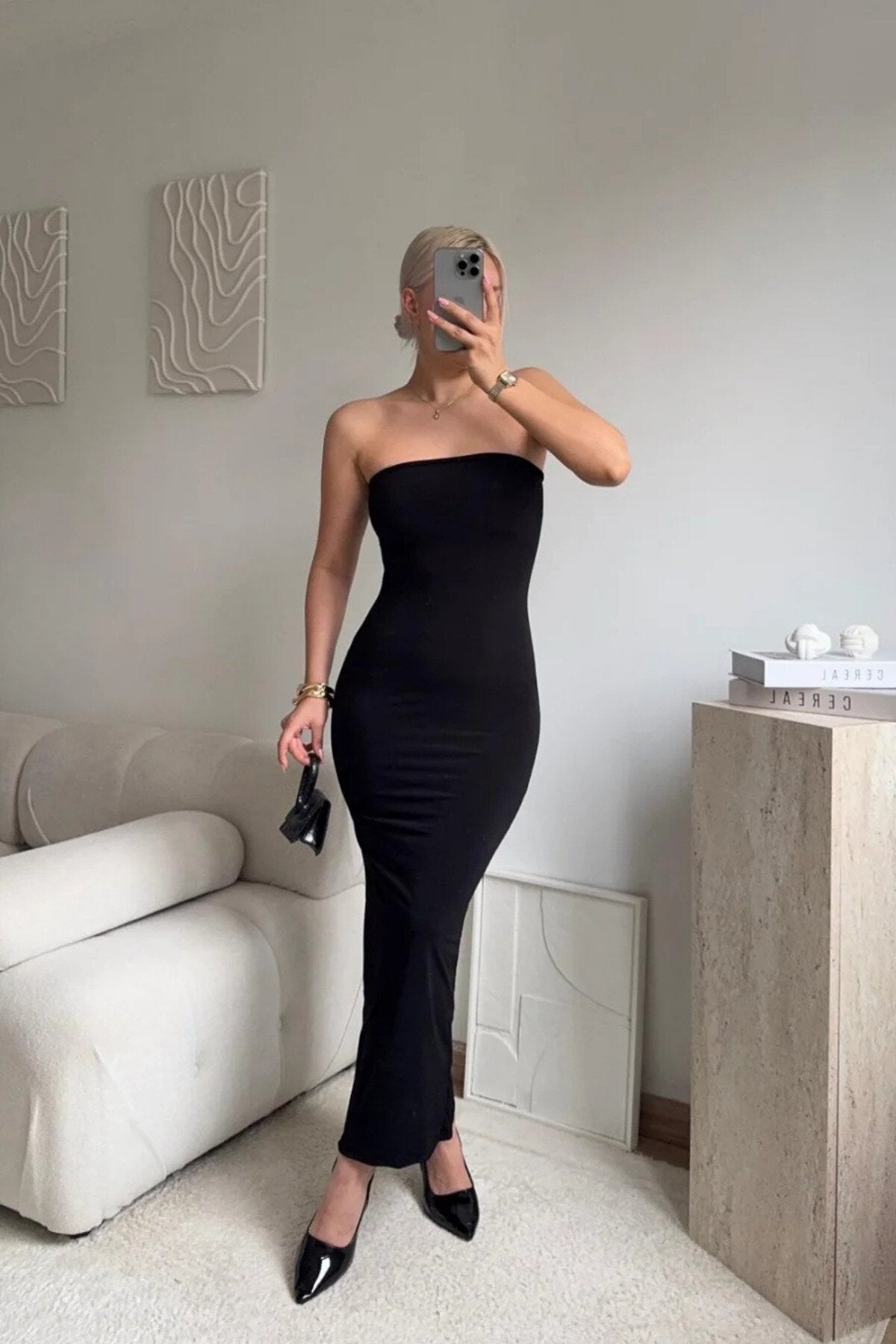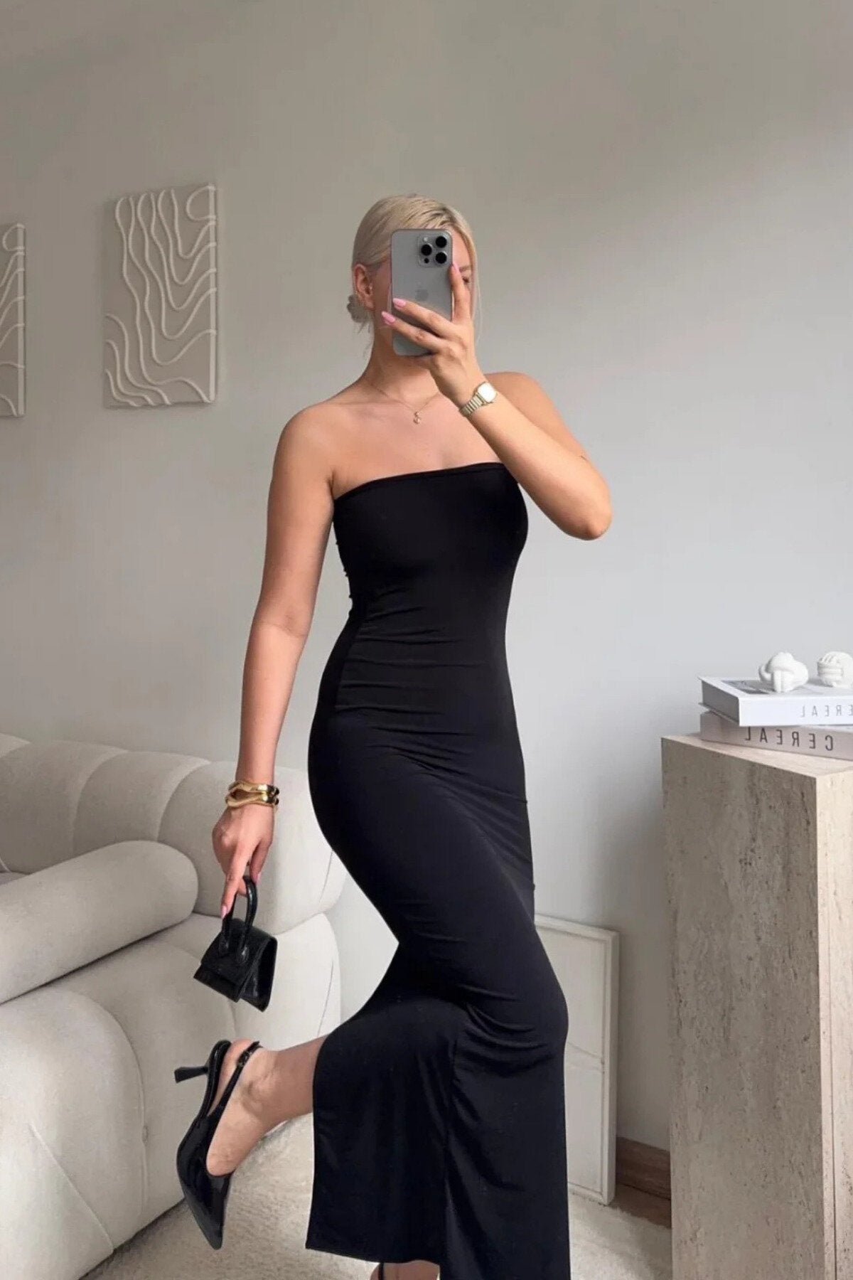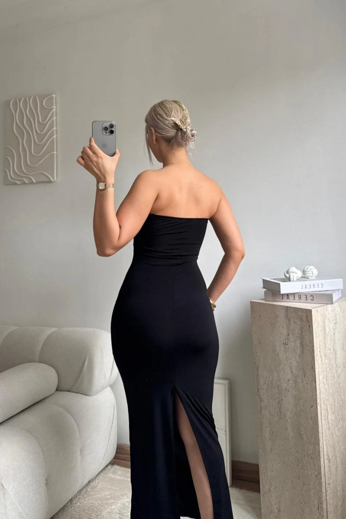 Embrace a look of effortless allure with this Long Strapless Back-Slit Dress. Designed with a minimalist aesthetic, this piece features a streamlined, body-con silhouette that beautifully highlights your natural curves while offering a clean, polished finish that radiates sophistication.