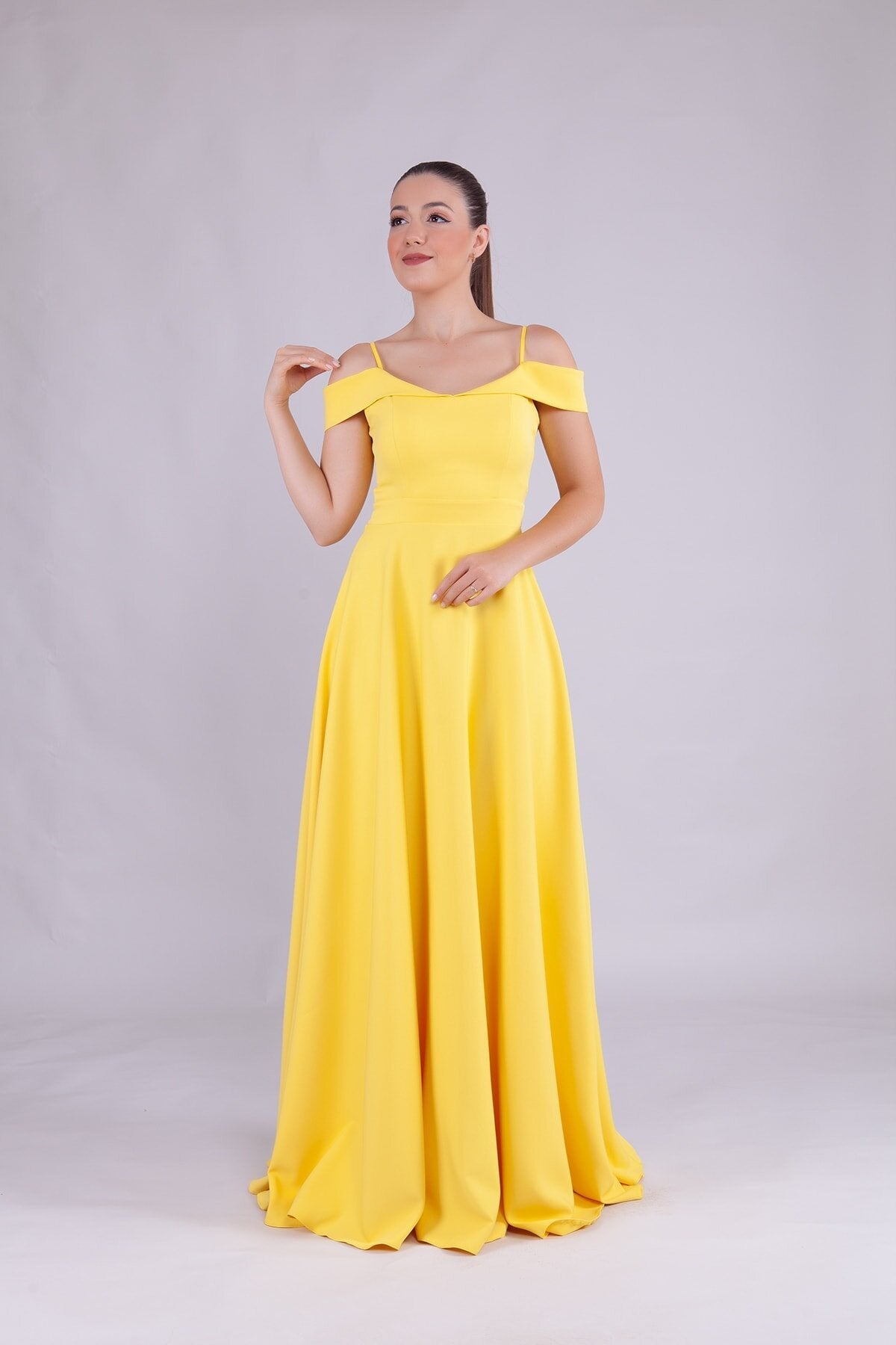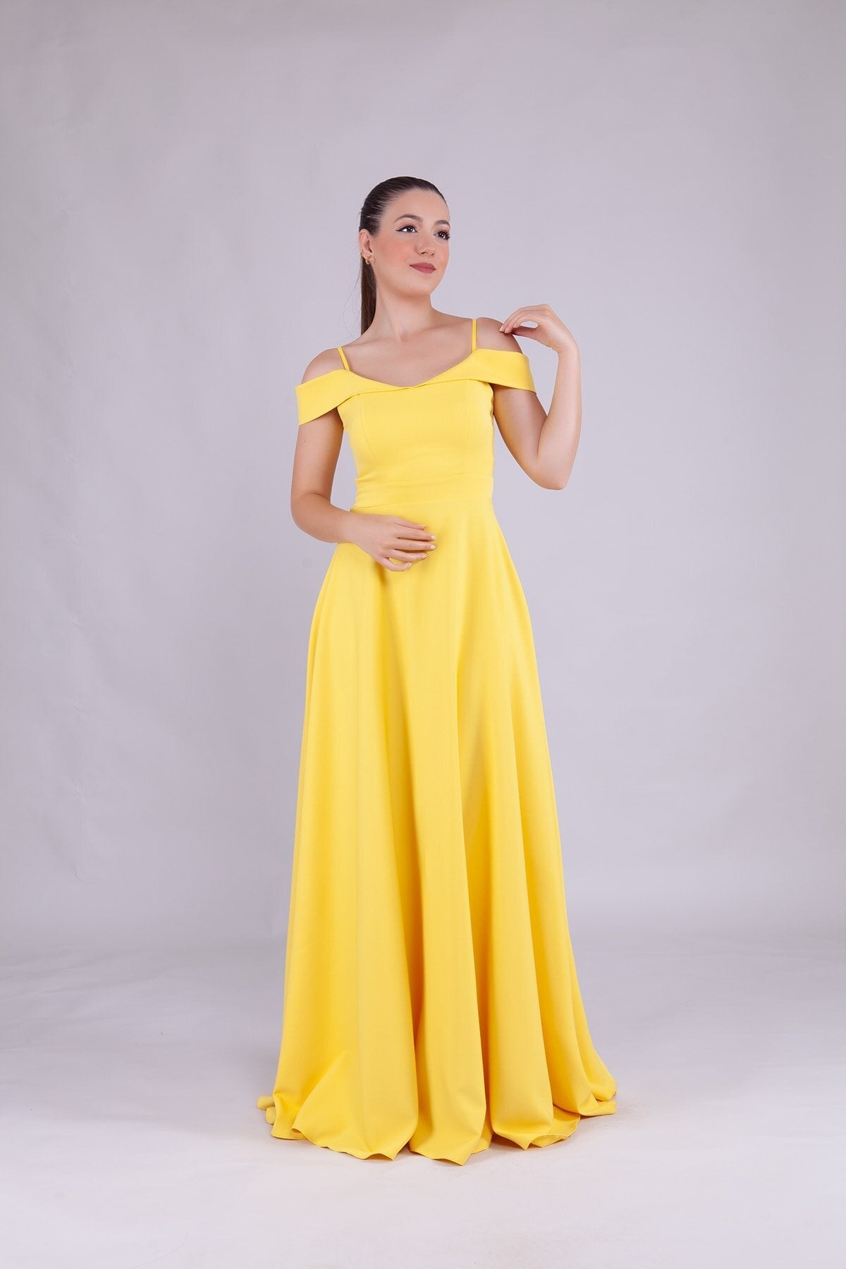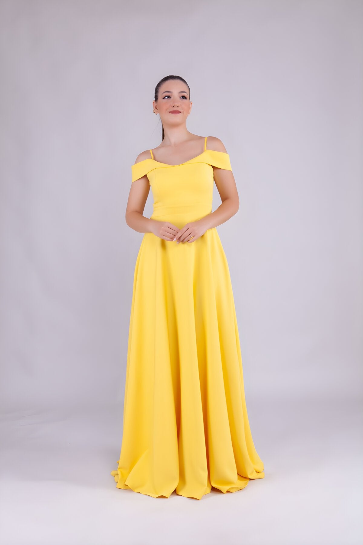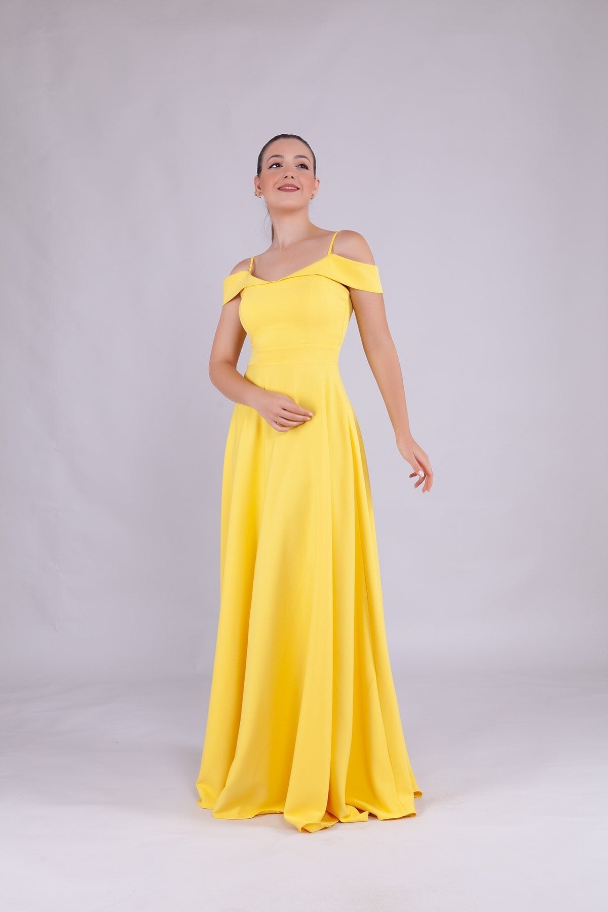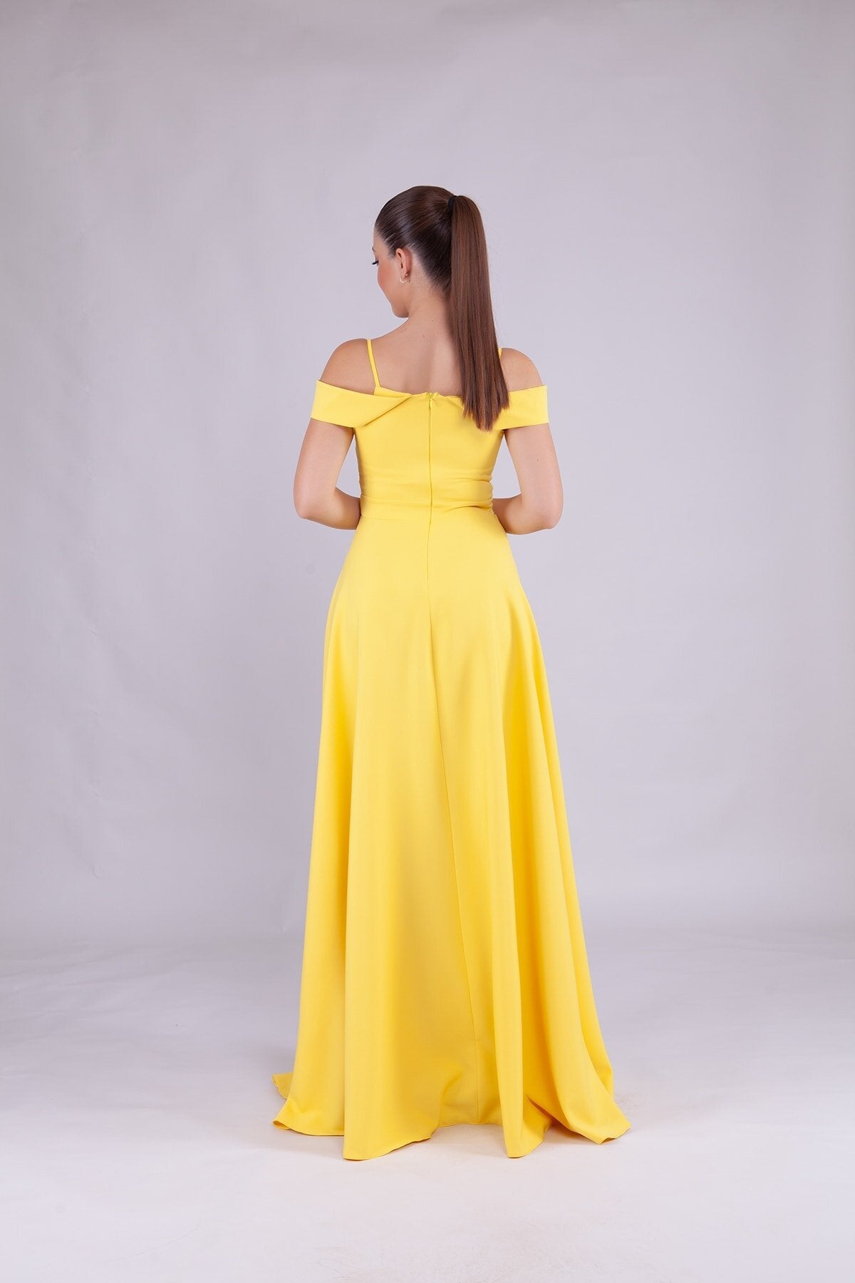 Long Strappy Shoulder Detail Evening Dress - Yellow
