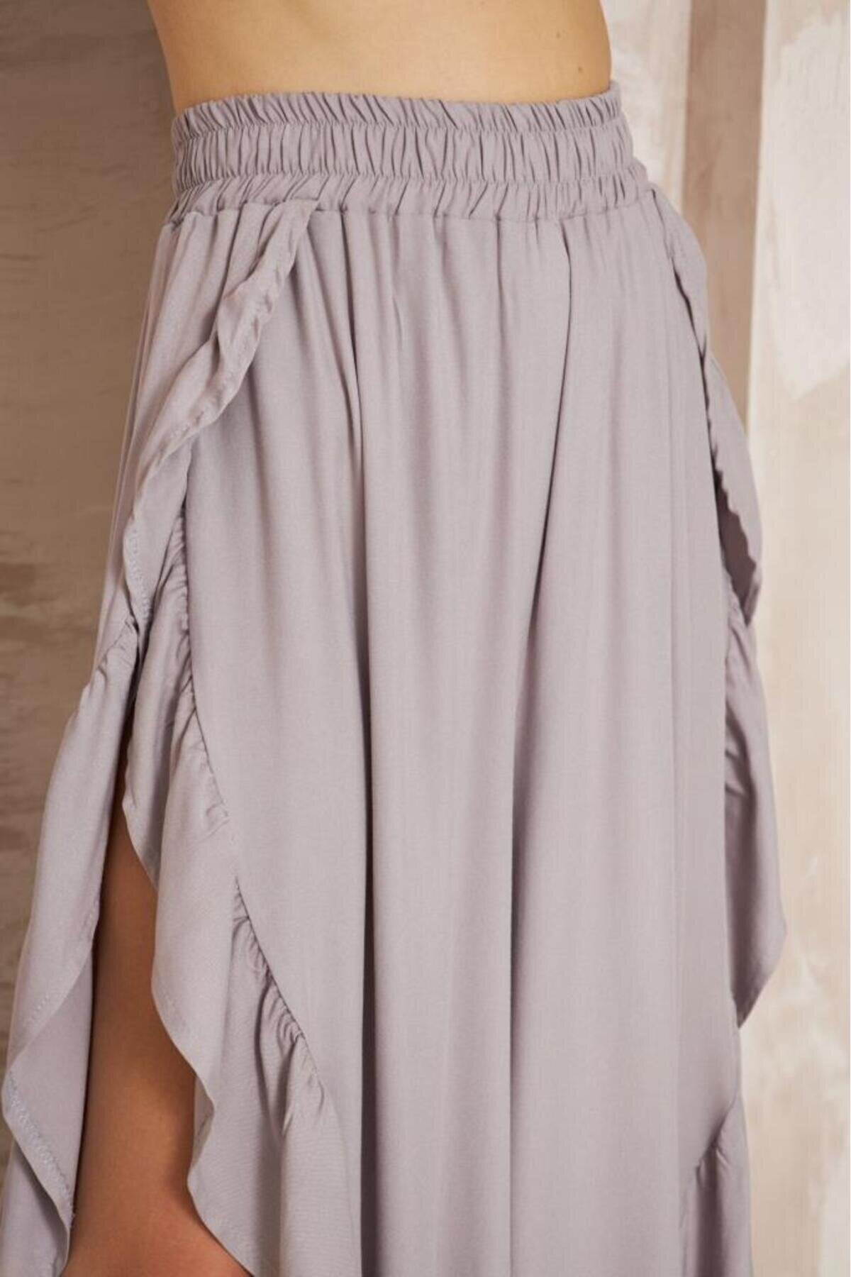 Loose Authentic Bohemian Harem Pants Slitted Elastic Waist - Gray