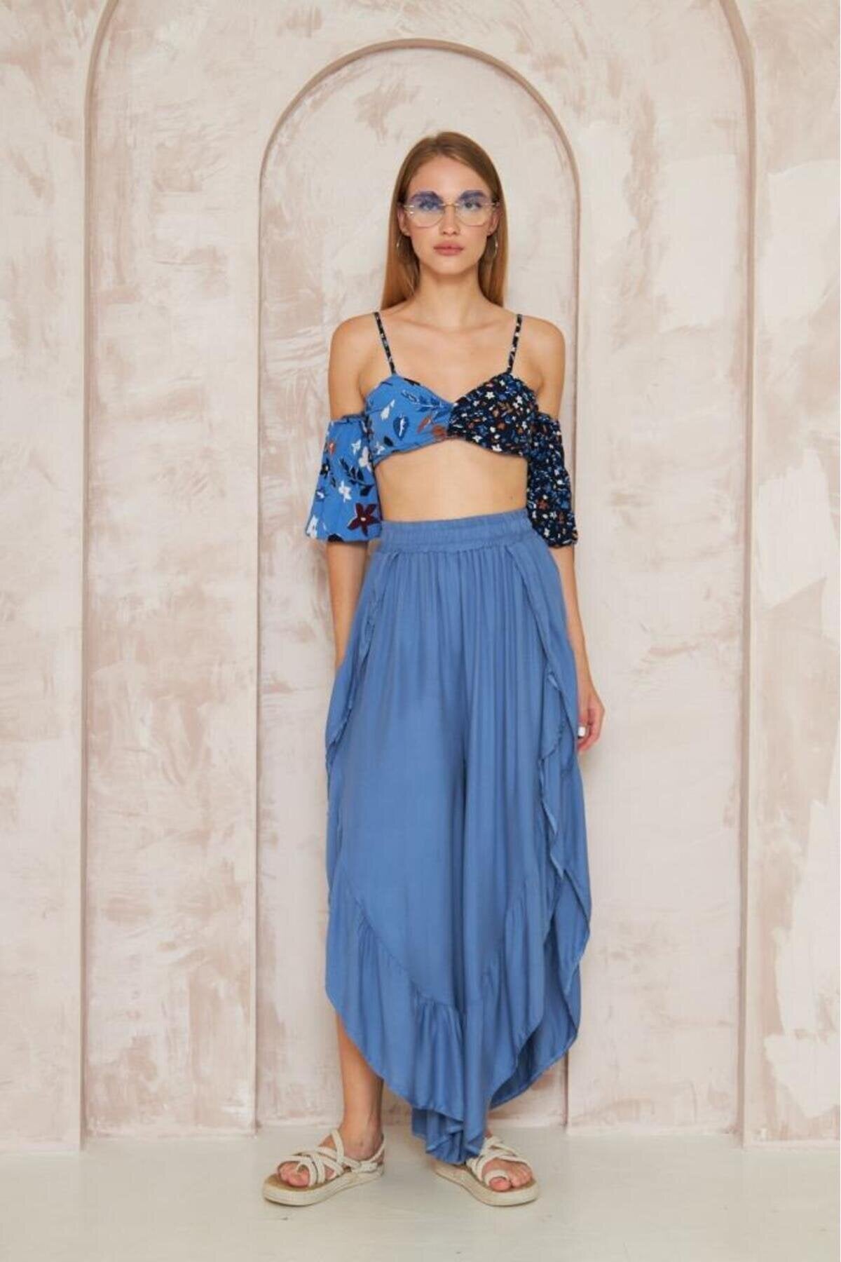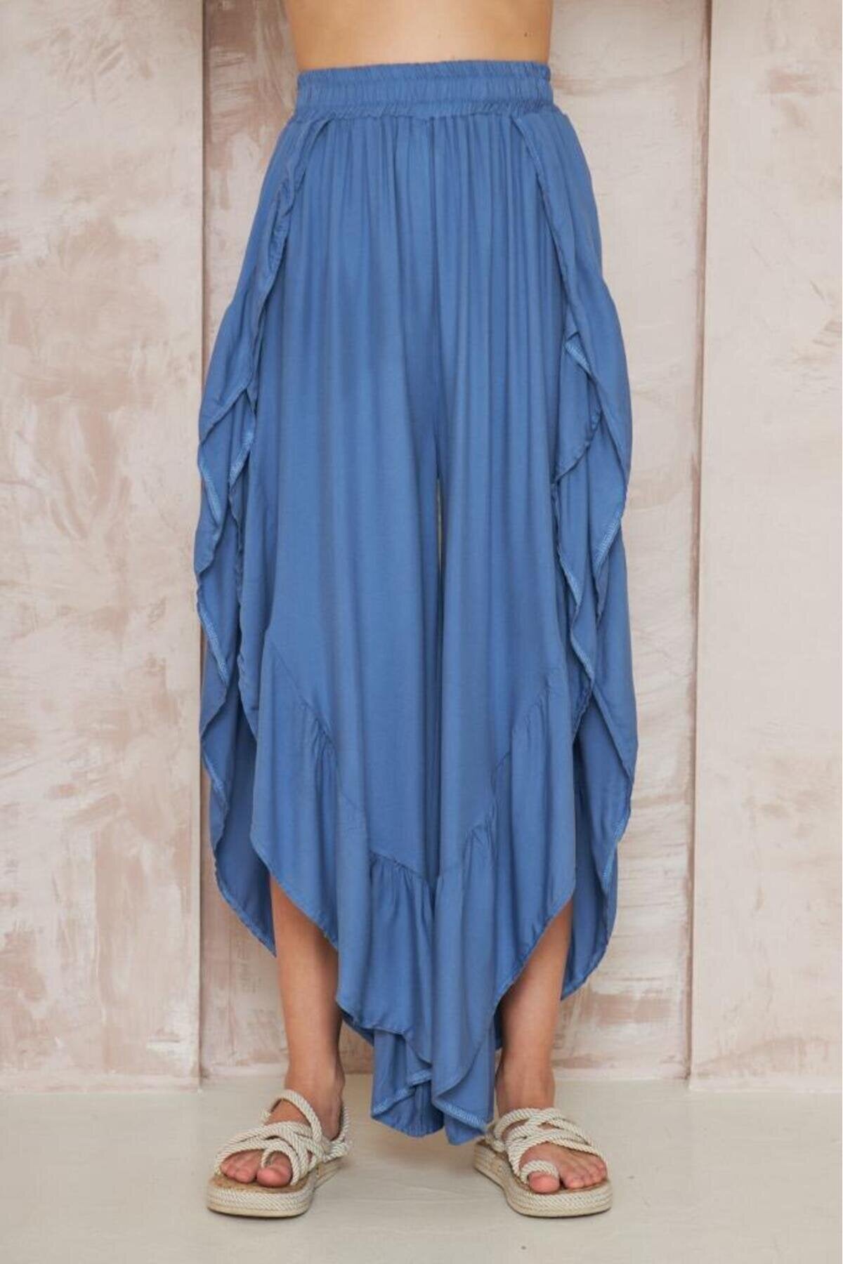 Loose Bohemian Harem Slit Skirt Pants - Indigo