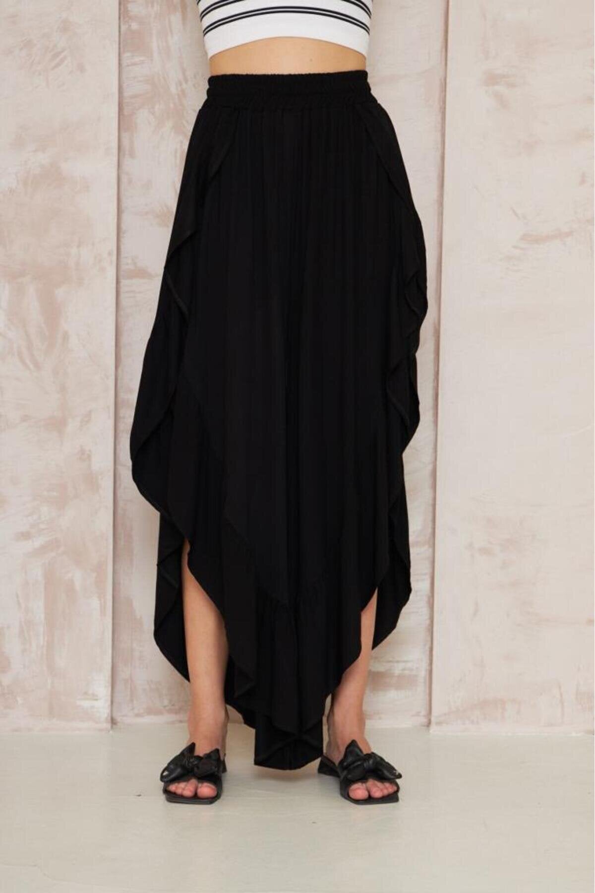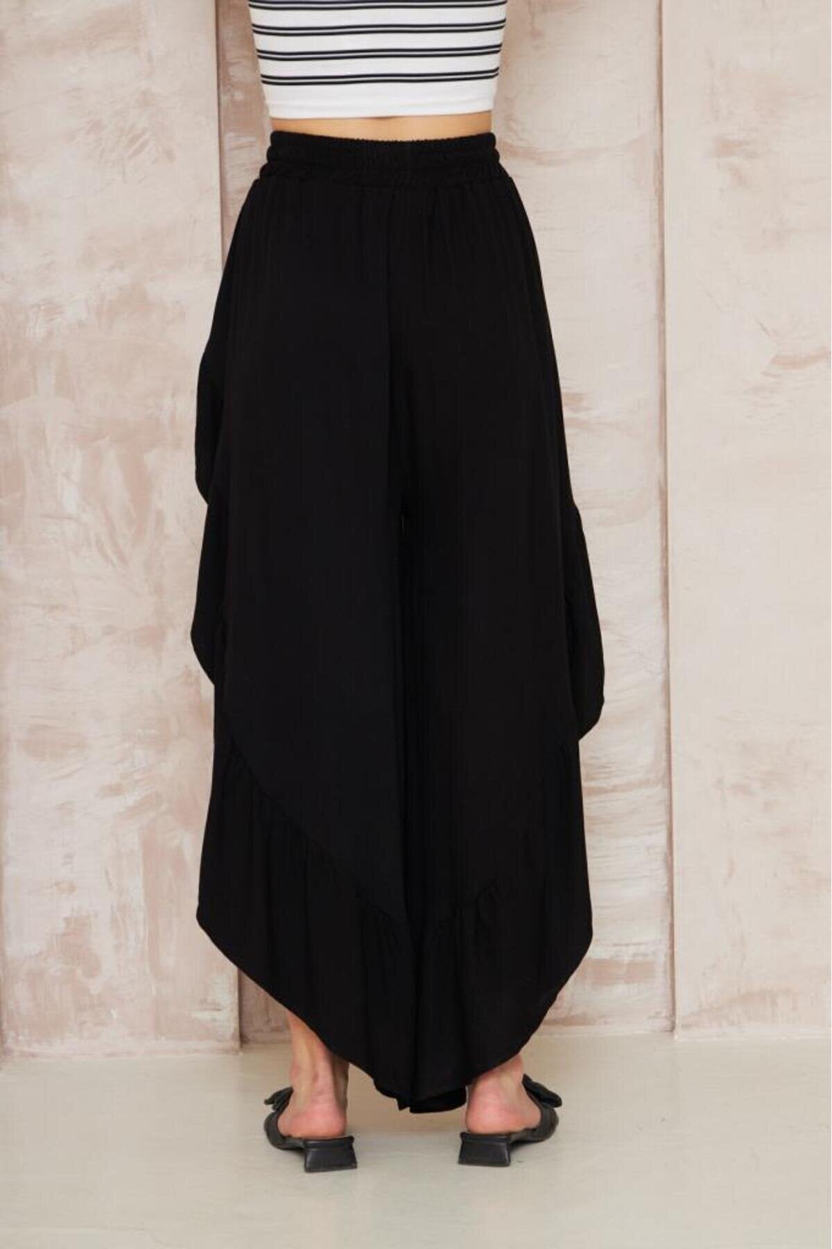 Embrace a unique blend of comfort and avant-garde style with these black harem skirt pants. The clever design captures the voluminous elegance of a maxi skirt while providing the unrestricted movement of trousers, creating a silhouette that is as intriguing as it is comfortable.