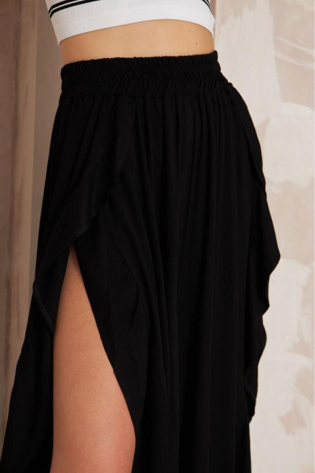 Loose Bohemian Slitted Elastic-Waist Harem Skirt Pants - Black