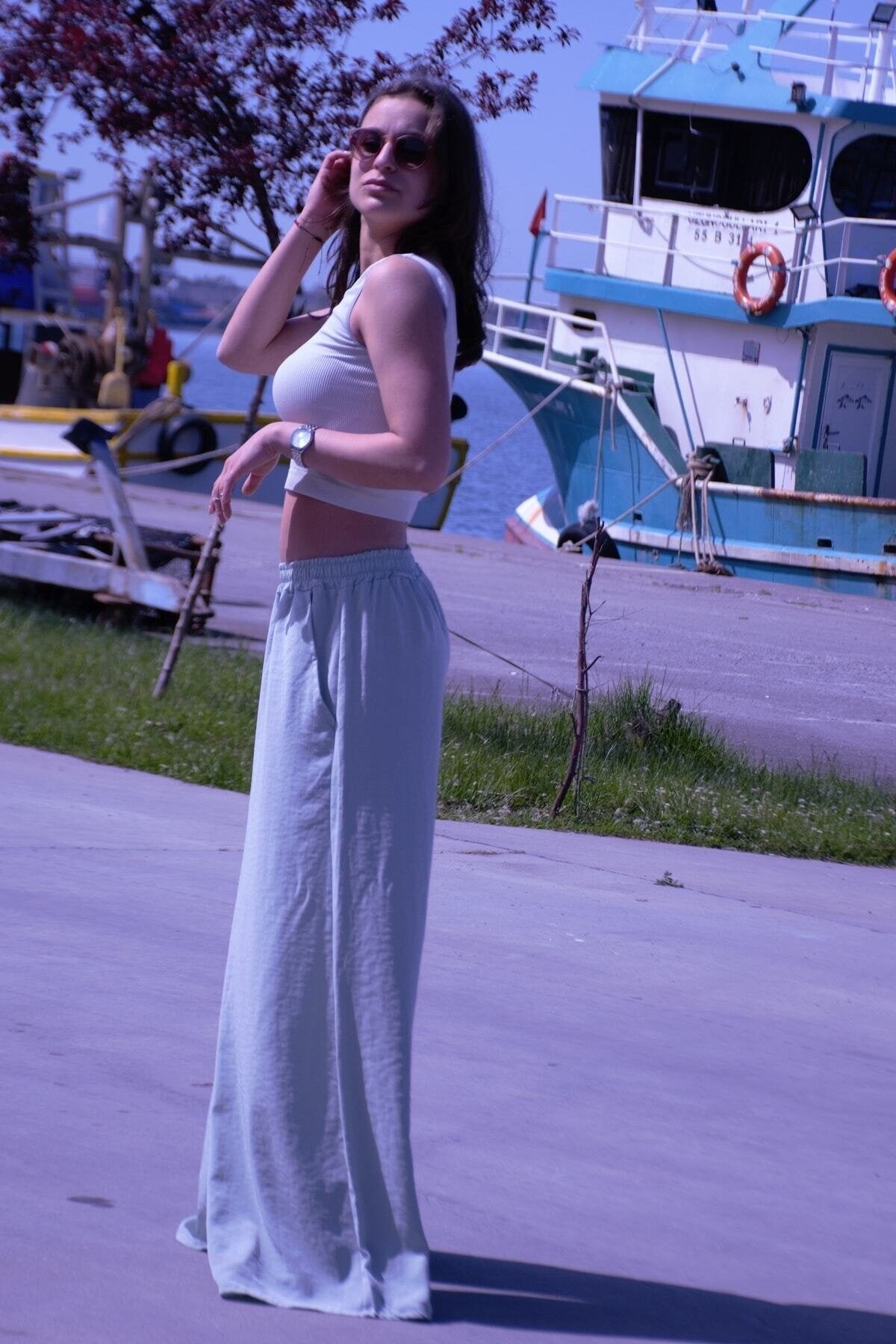 Loose Oversize Wide Leg Summer Pants - Mint Green