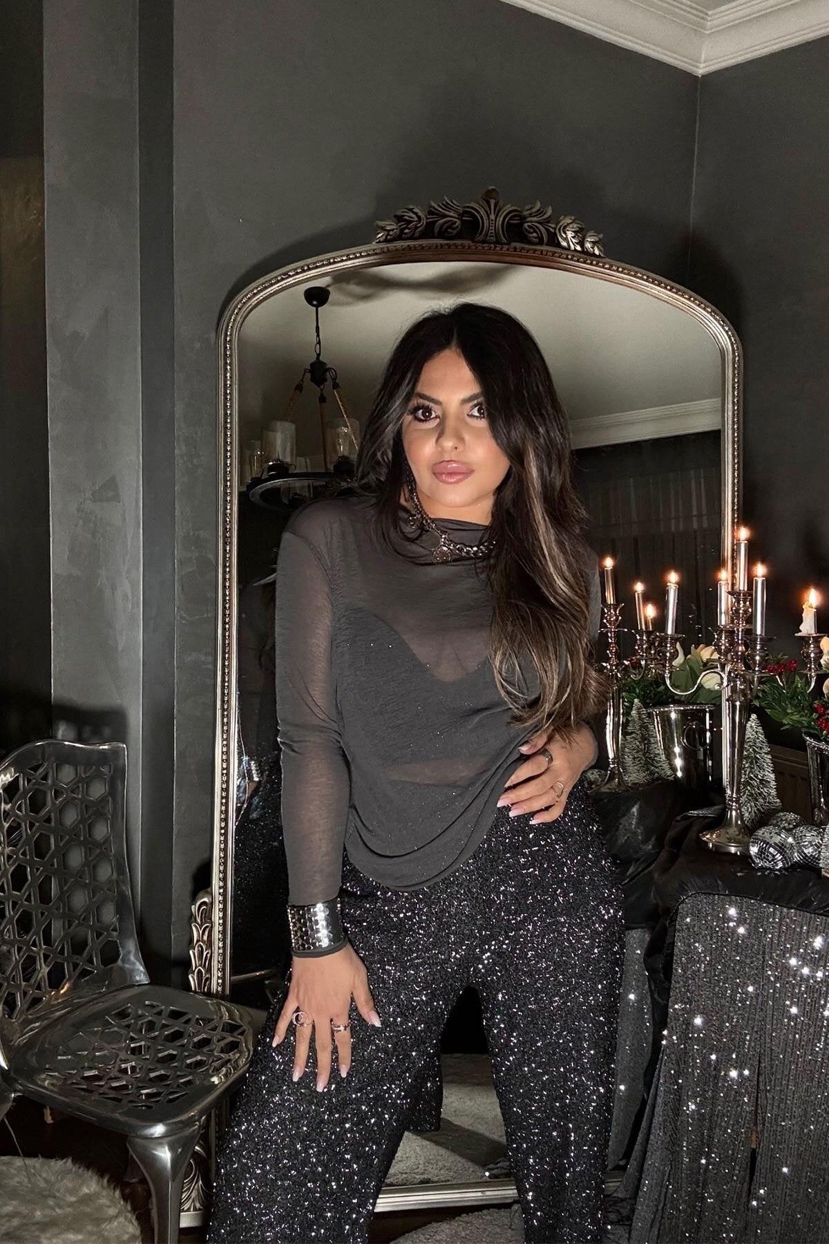 Micro Sequin Beaded Pants - Anthracite