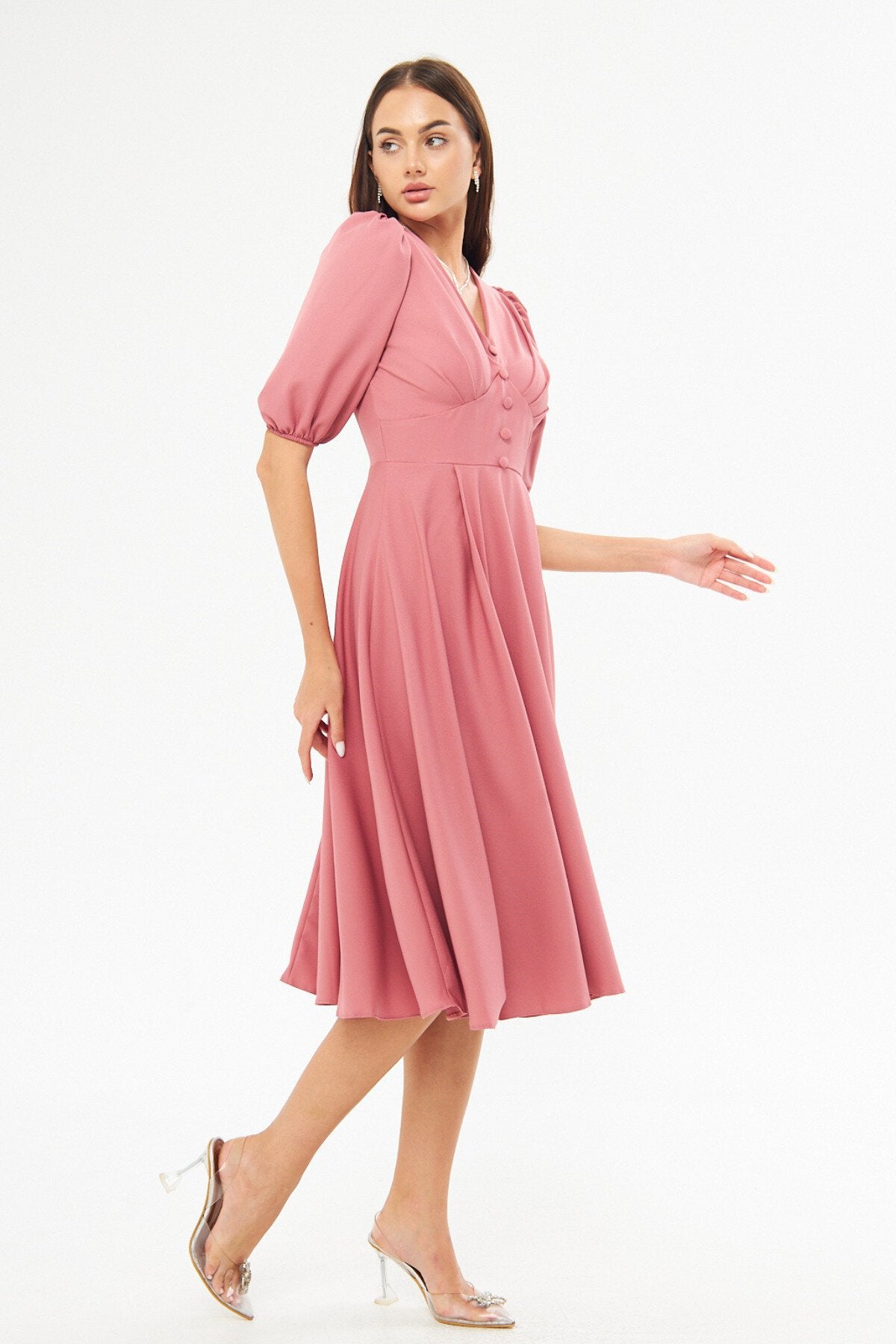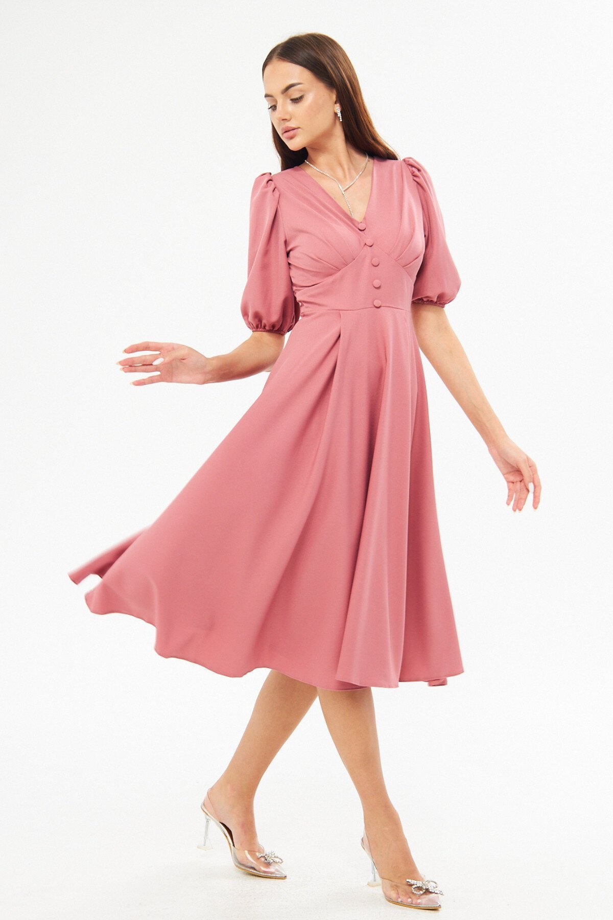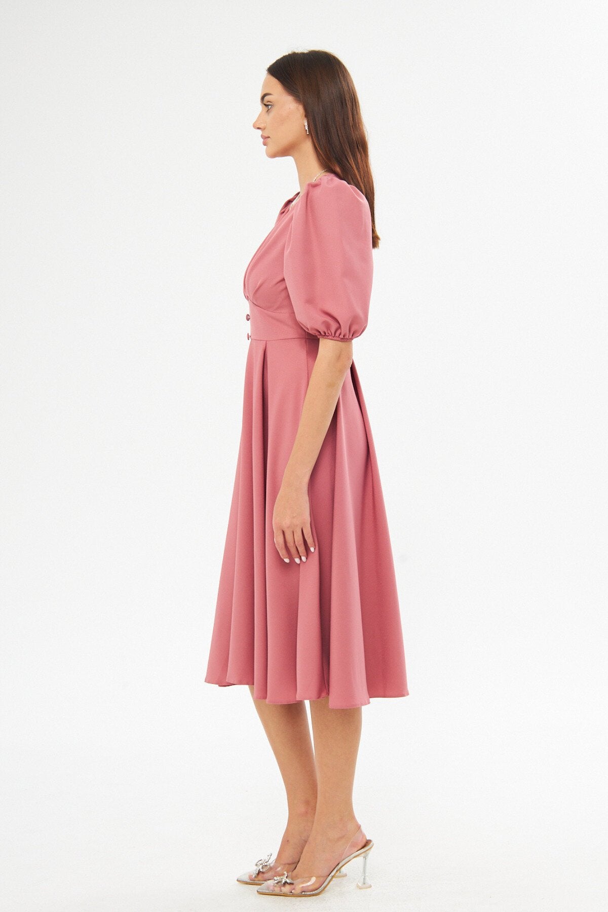 Midi Corset-style Belted Evening Dress - Dried Rose