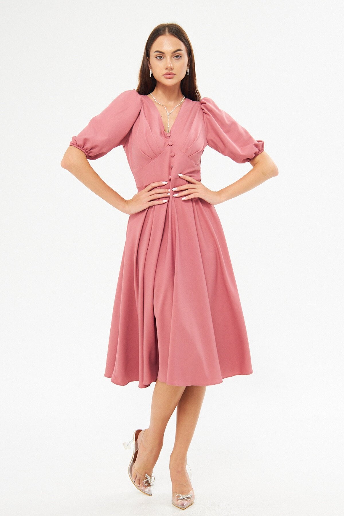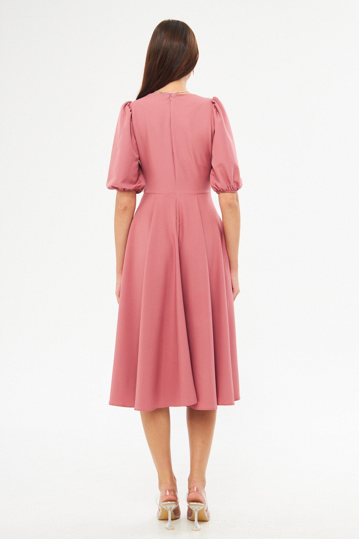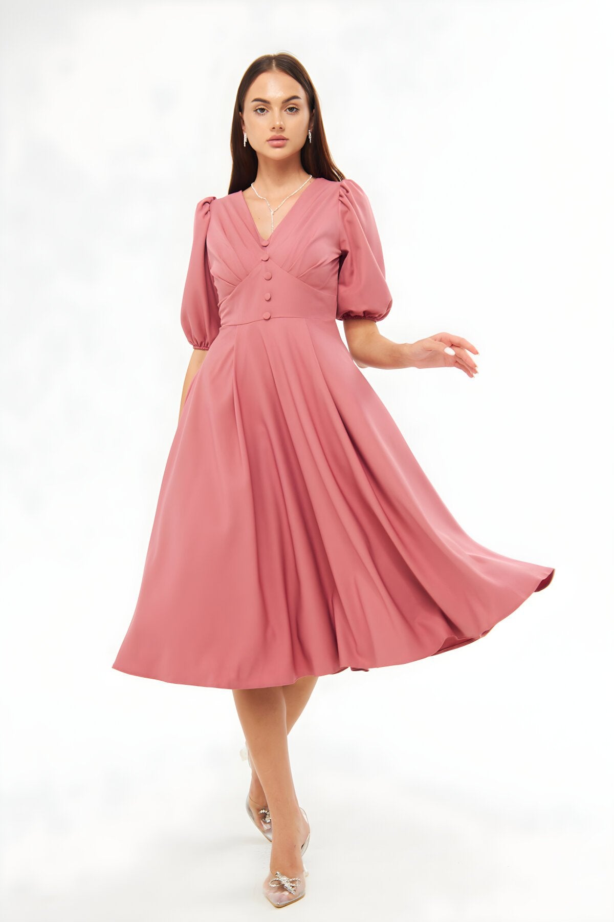 Midi Corset-style Belted Evening Dress - Dried Rose