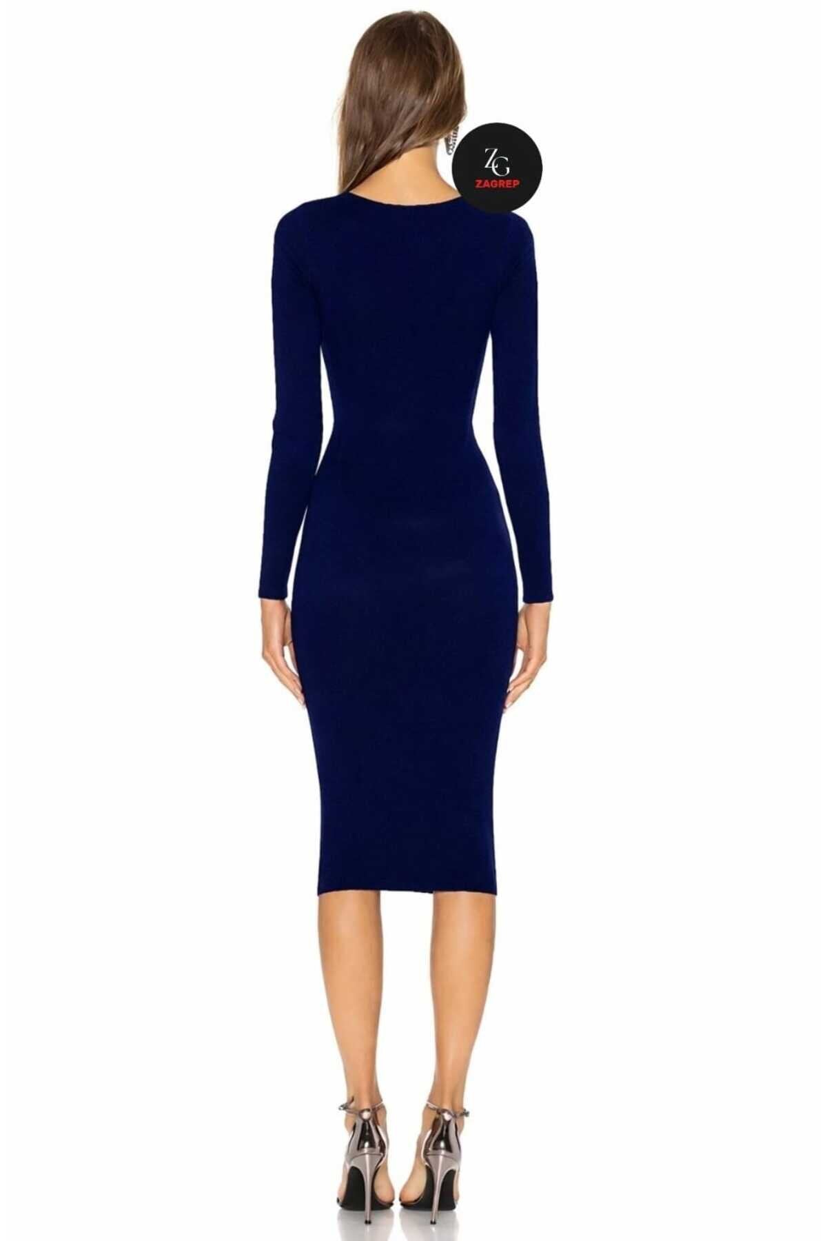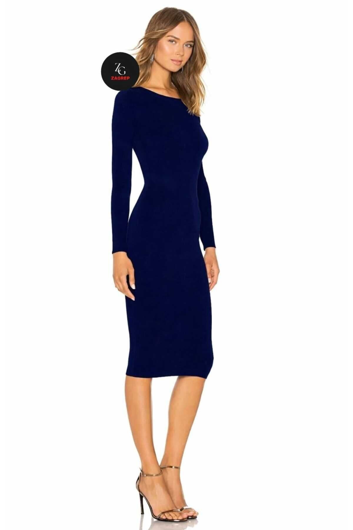 This navy blue midi dress is a masterclass in understated elegance, combining a body-contouring pencil silhouette with full-length sleeves for a look that is both modest and undeniably chic. The deep, rich hue provides a versatile base that exudes confidence and poise, making it a quintessential staple piece for any curated wardrobe.