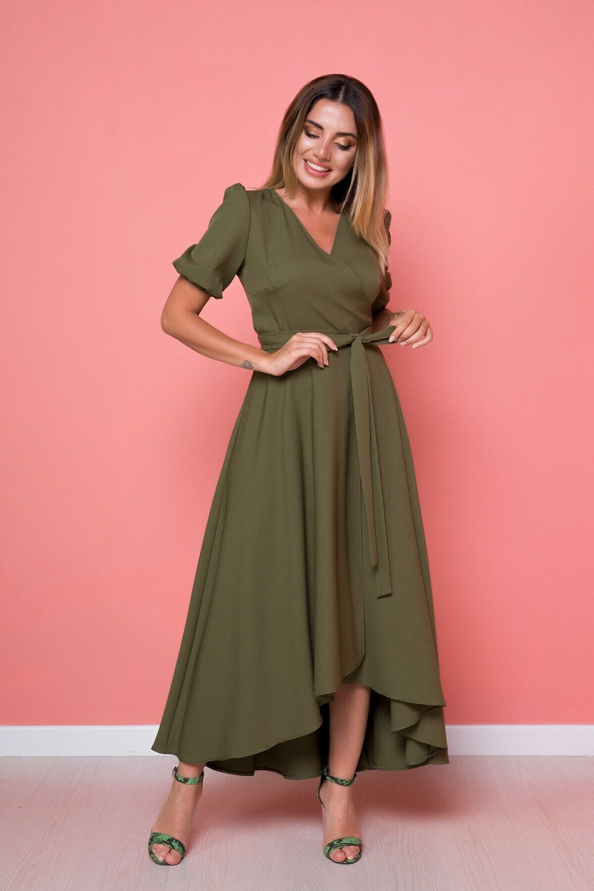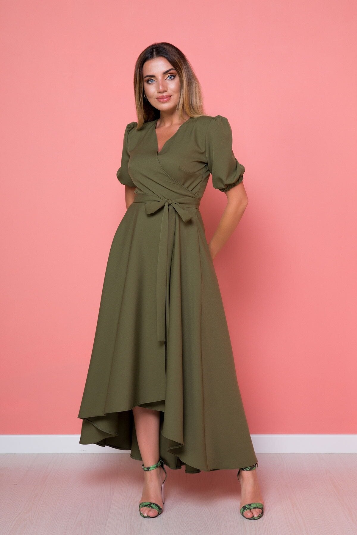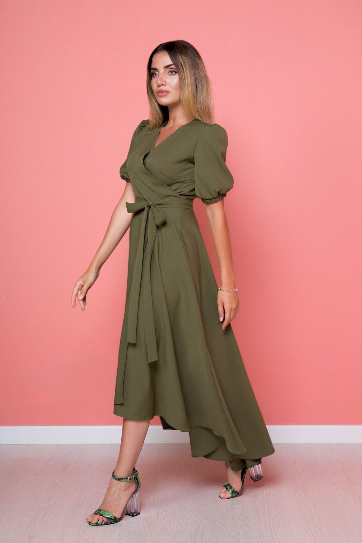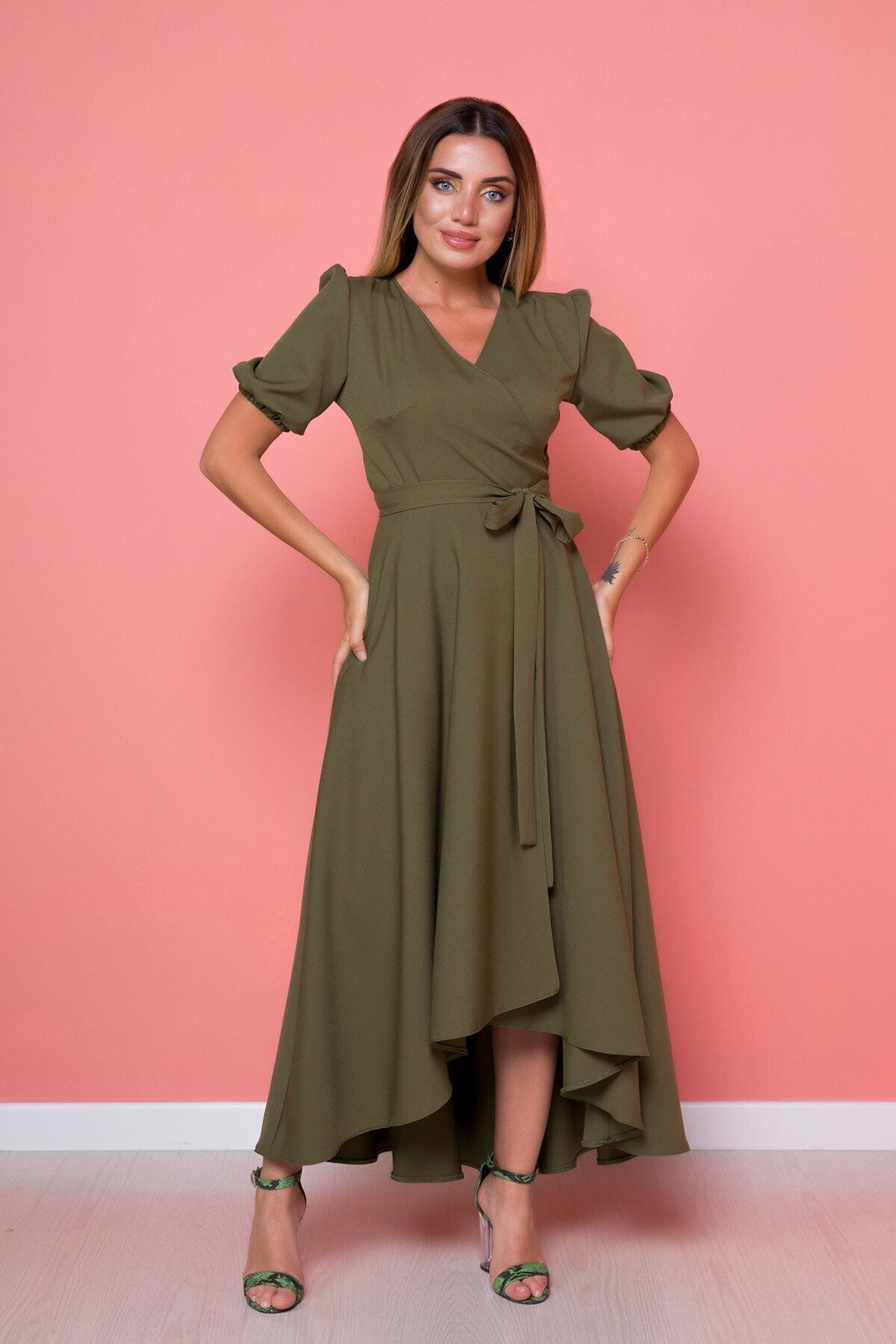 Midi Plus Size Asymmetric Cut Dress - Khaki