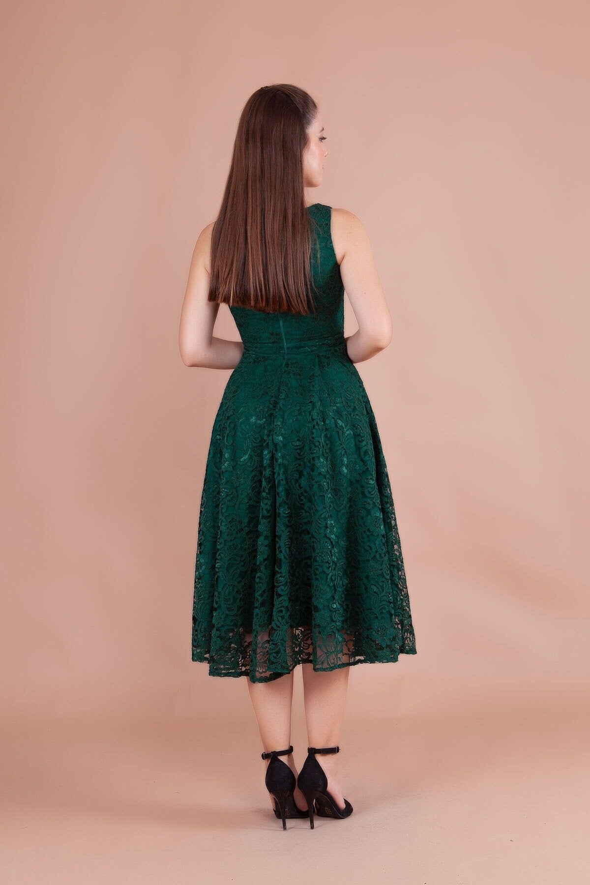 Whether you are attending a high-profile gala or an intimate celebration, this emerald lace dress is designed to make a memorable impression. Its rich jewel tone and premium lace construction provide a versatile foundation for a variety of upscale events and special occasions.
