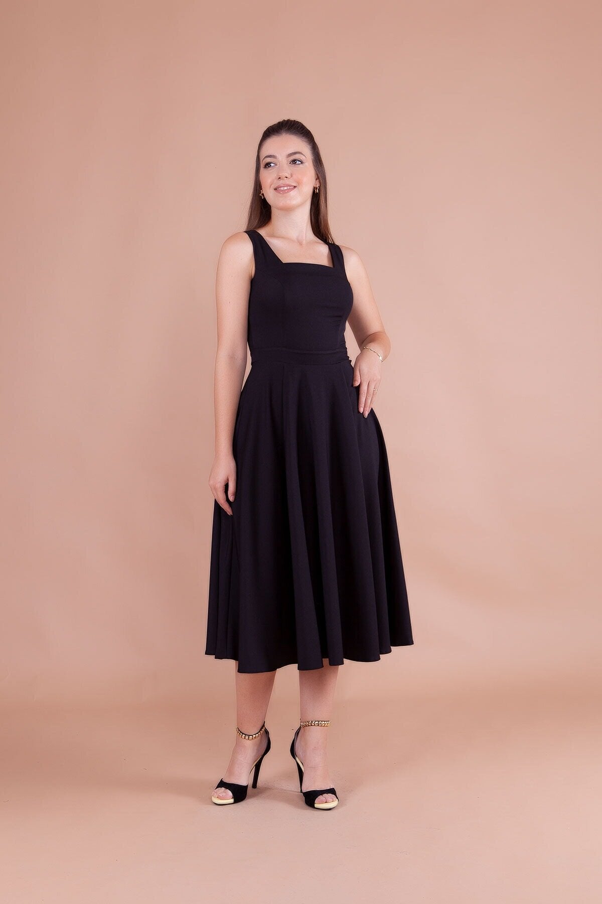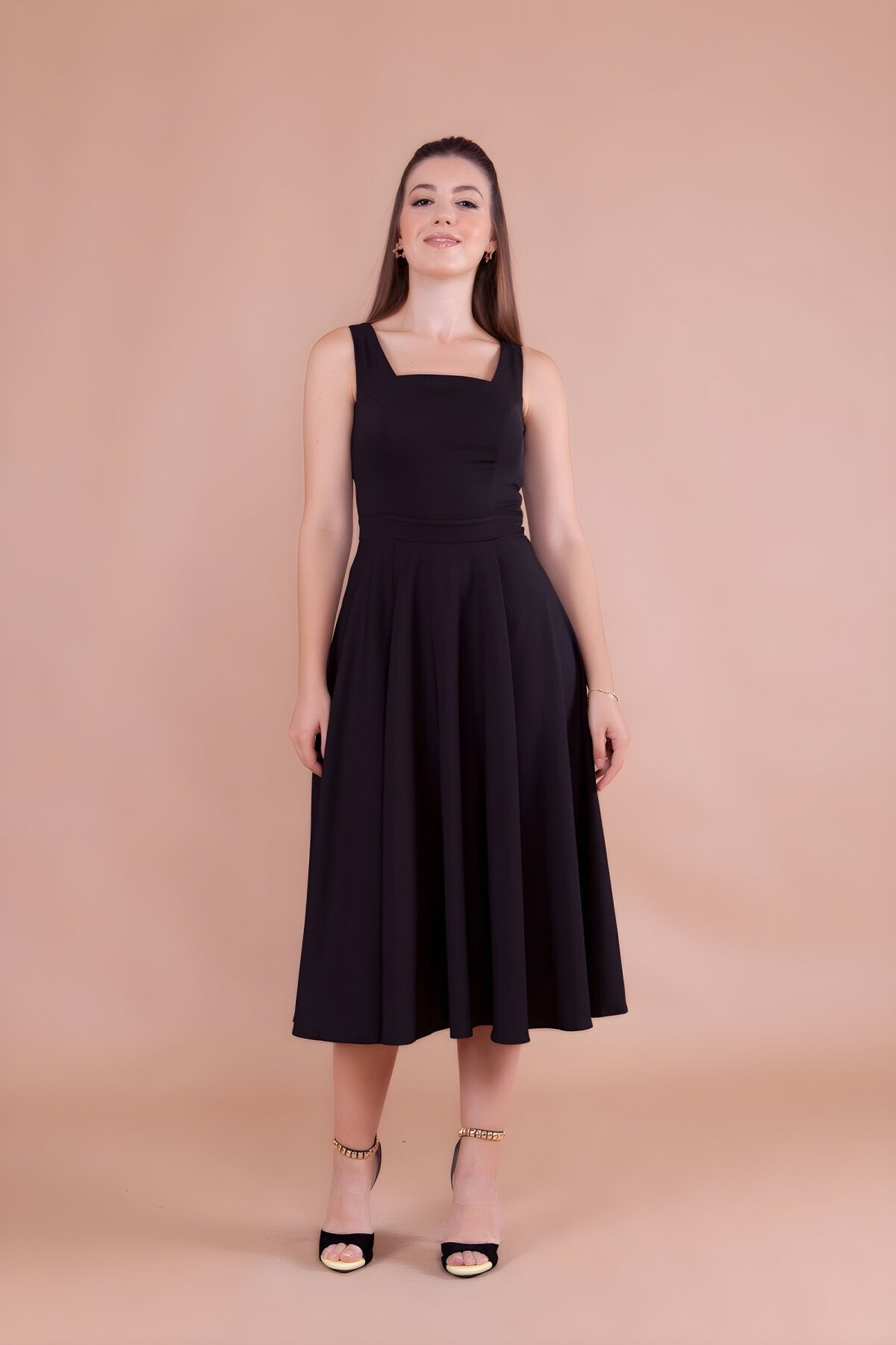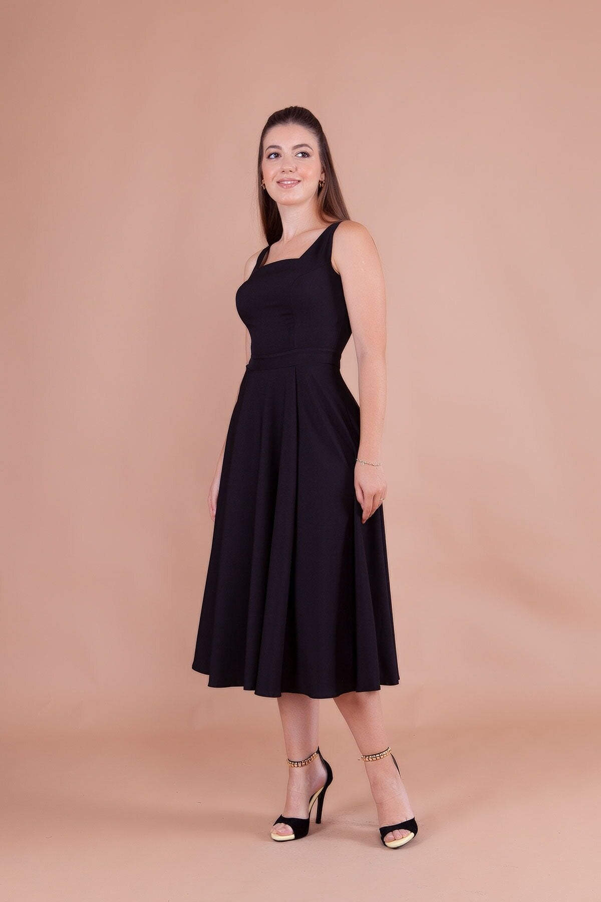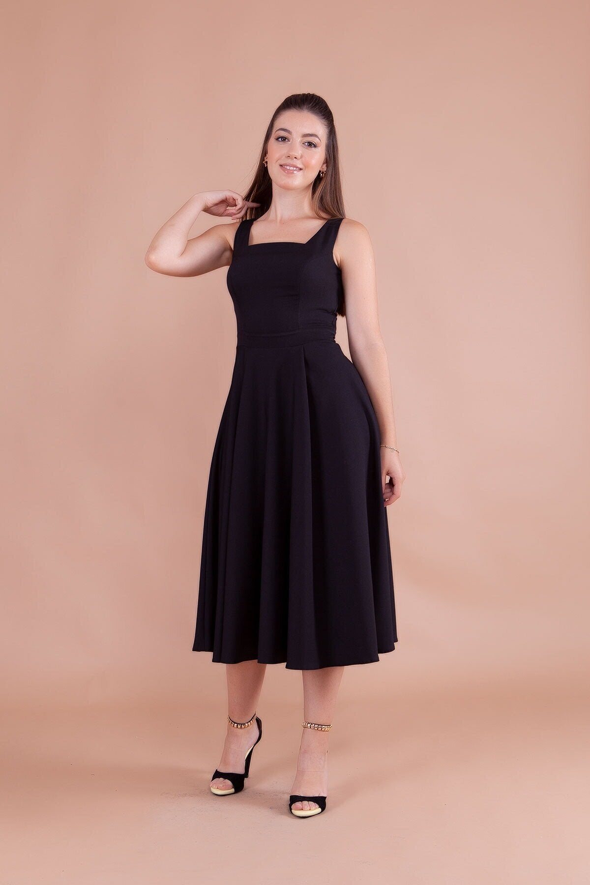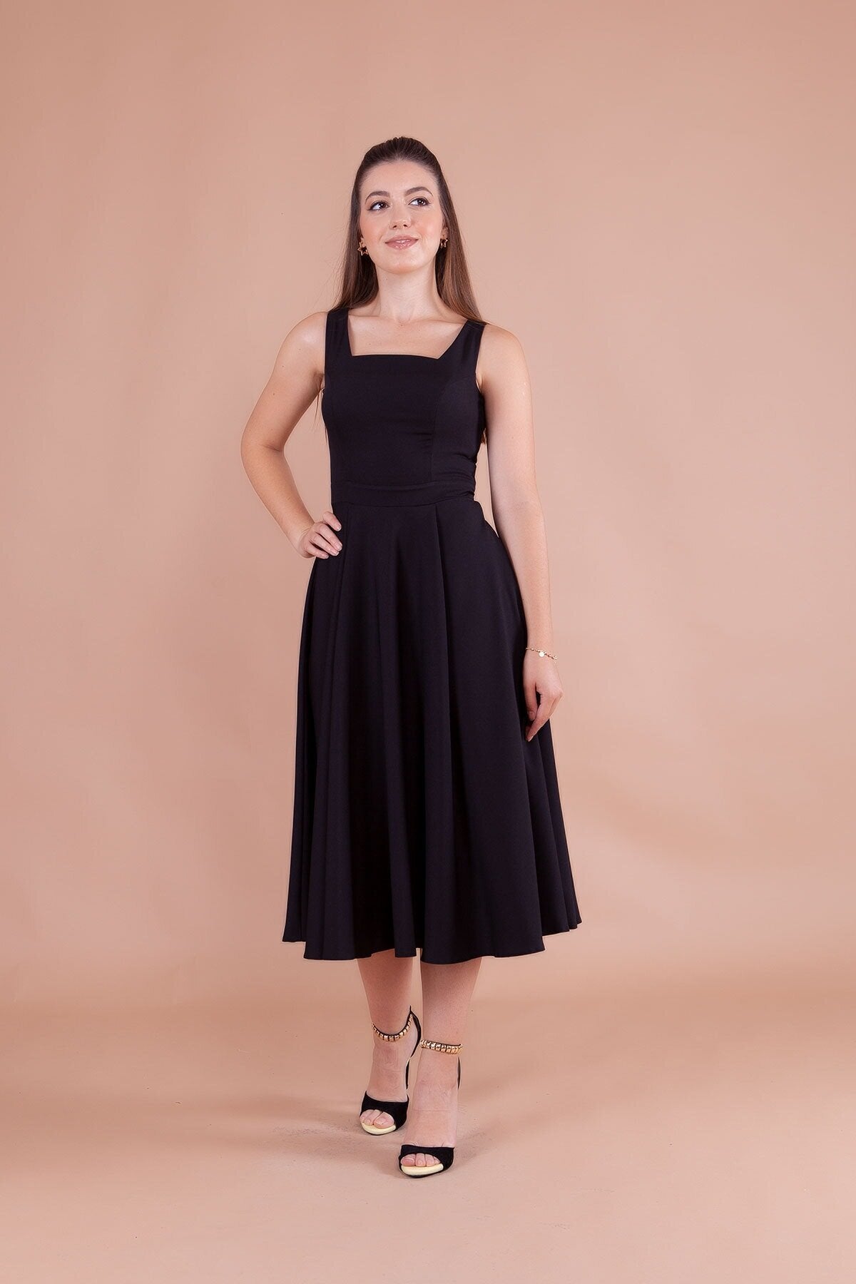 Midi Strappy Square Neck Dress - Black