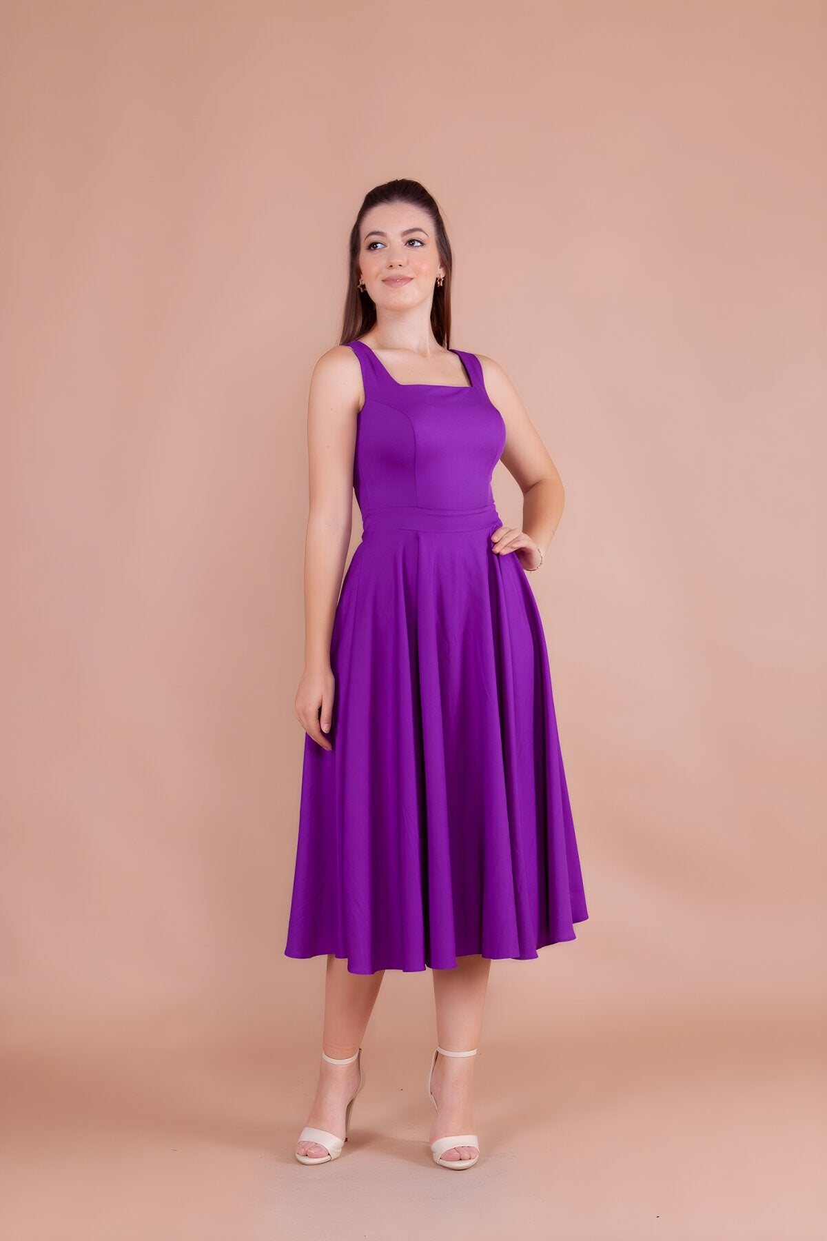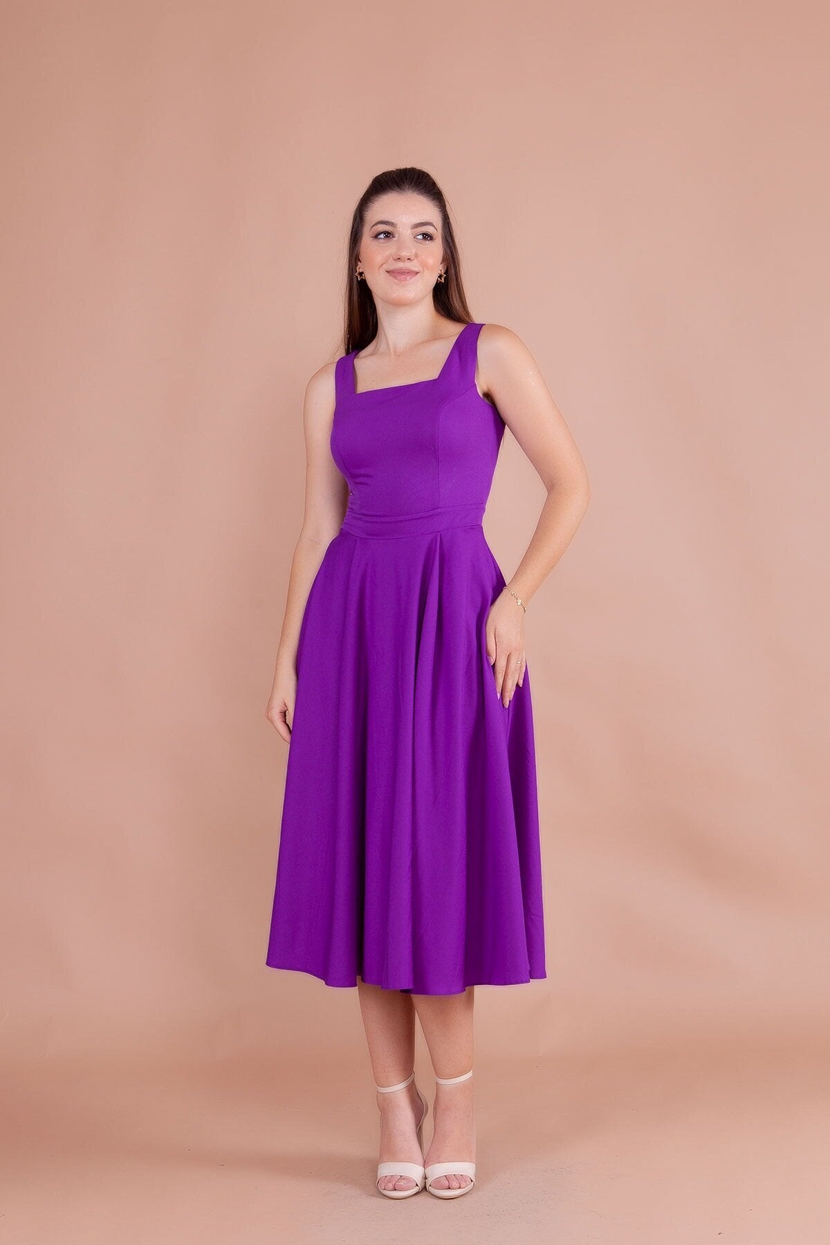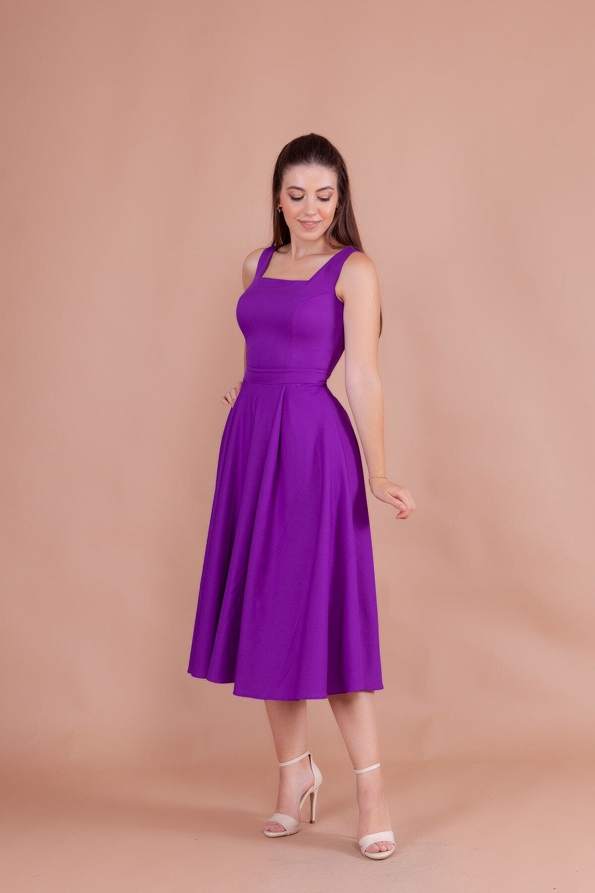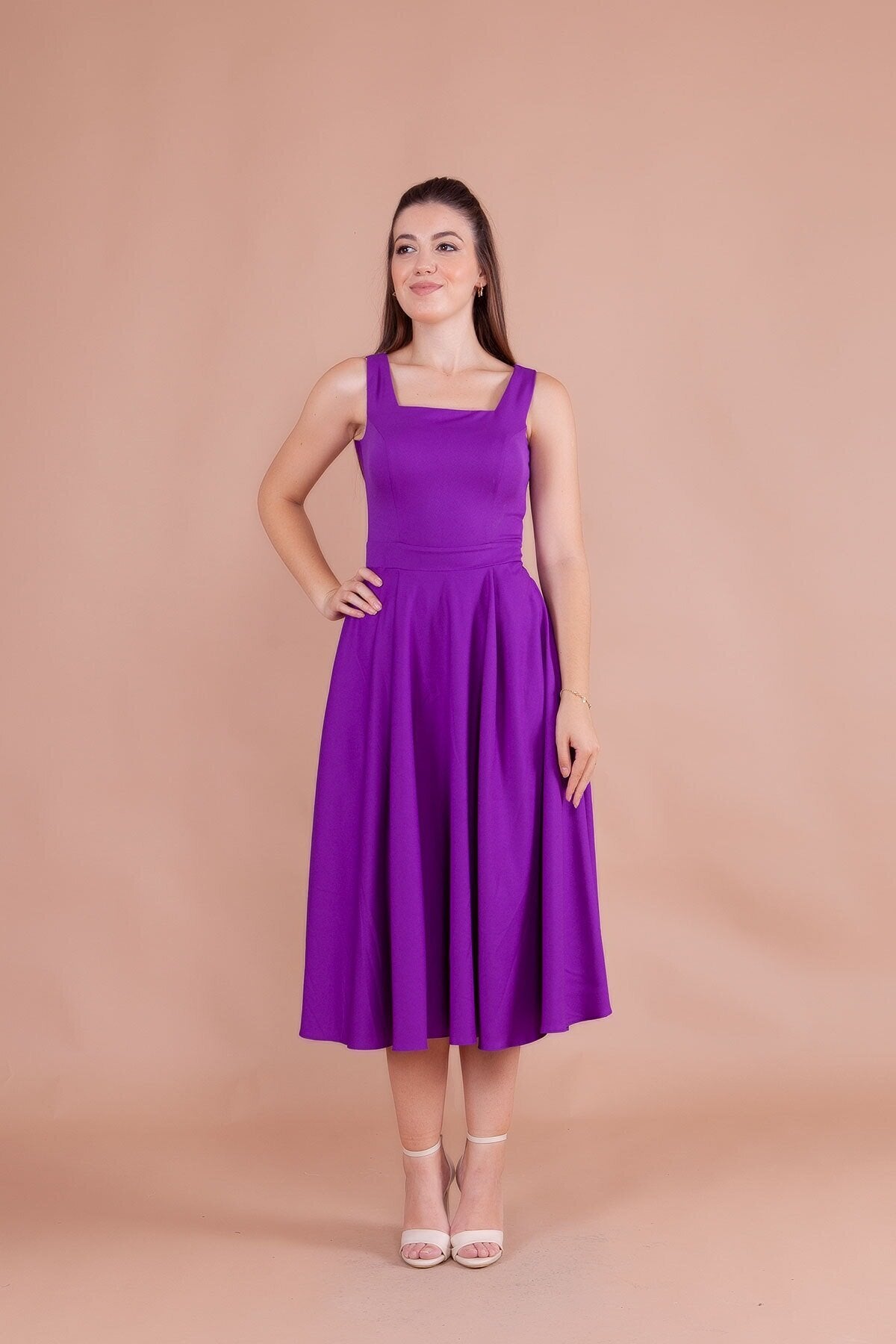Midi Strappy Square Neck Dress - Purple